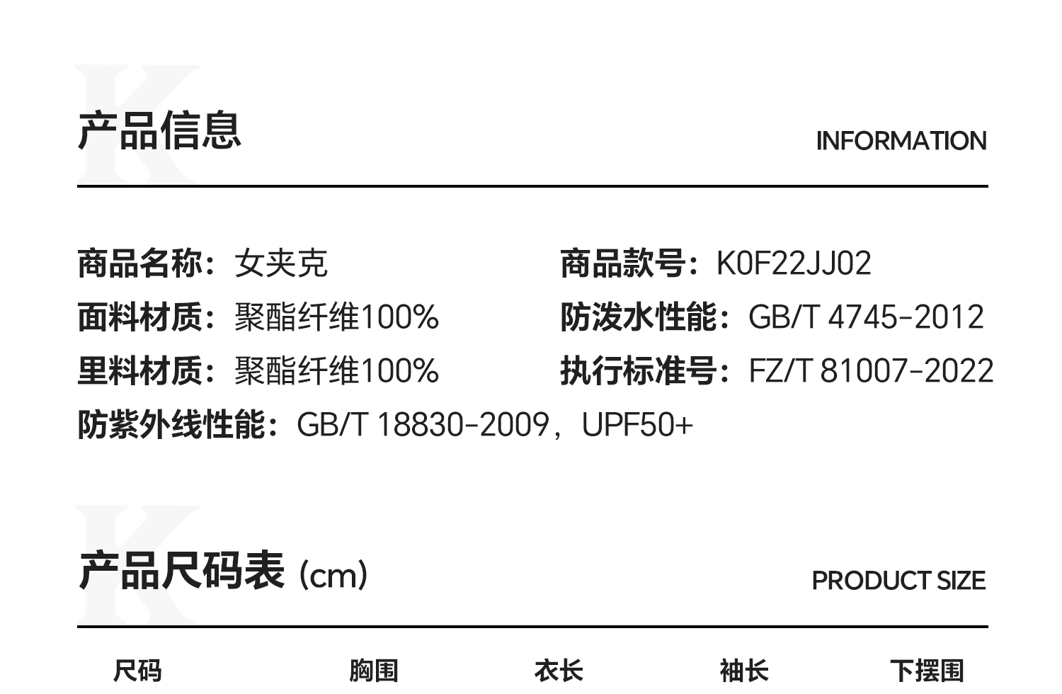 Kappa卡帕背靠背2025新款户外运动防晒衣女款防泼水外套夹克上衣K0F22JJ02