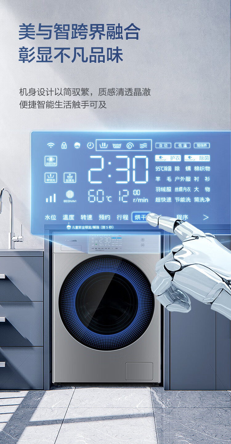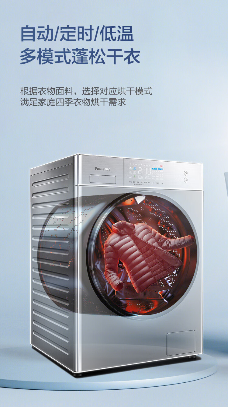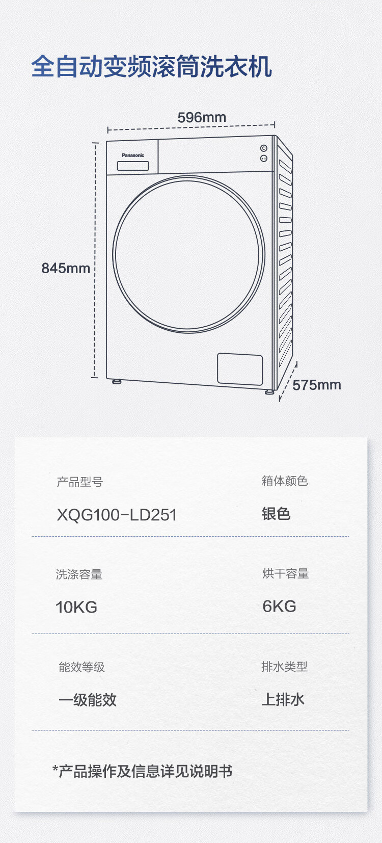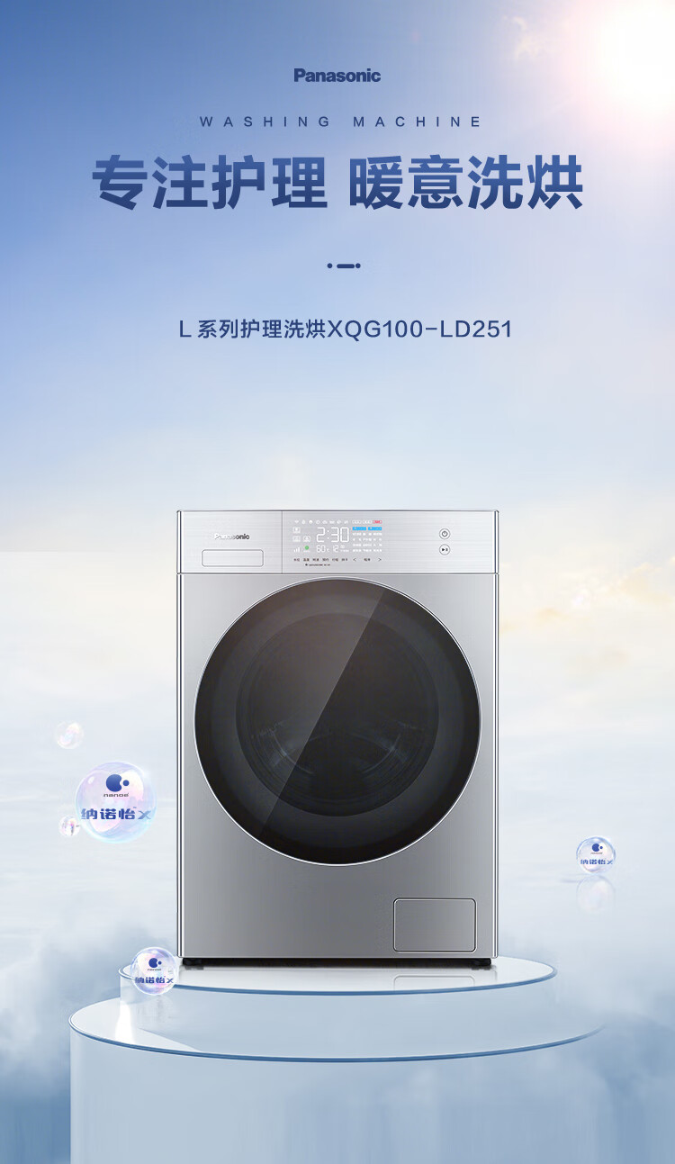 松下(Panasonic)洗烘一体机全自动10公斤 纳诺怡™X护衣 稀土永磁BLDC变频电机 银色 XQG100-LD251
