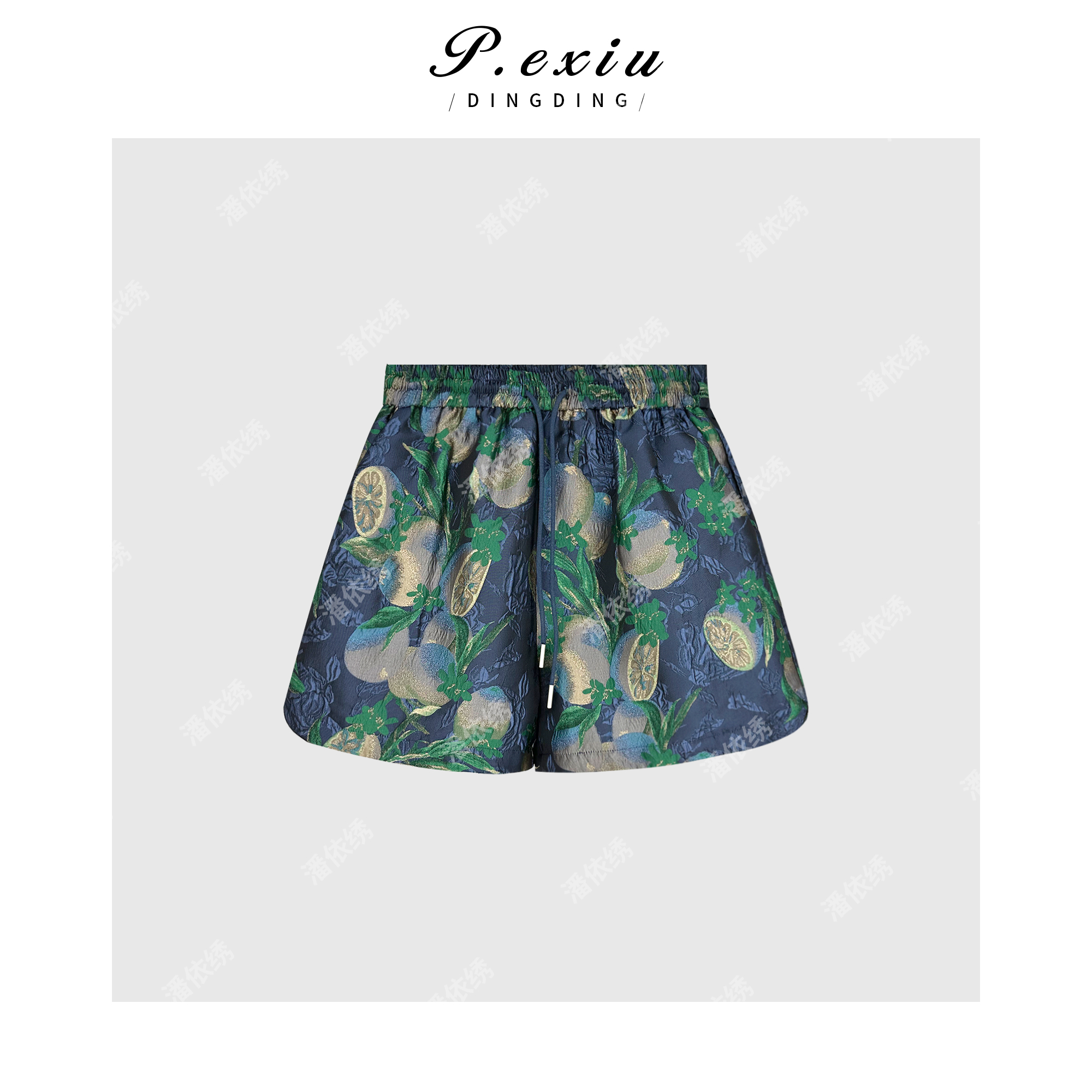 03-5潘依绣丁丁宠粉PanYiXiu/潘依绣【夏日缤纷】花朵满印高级感松紧腰短裤 W-62046