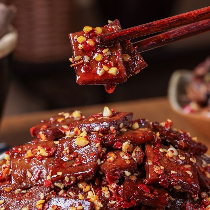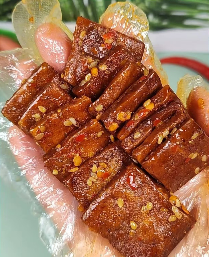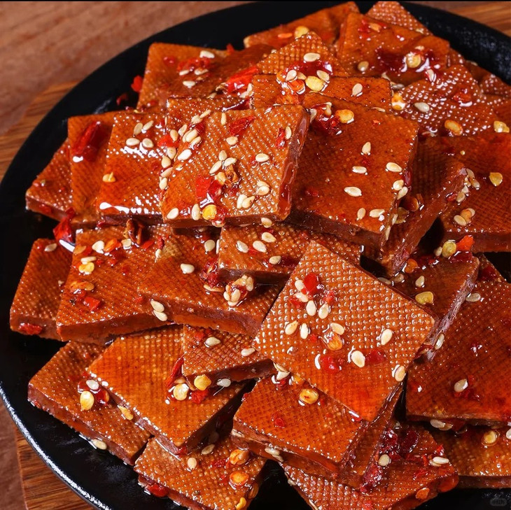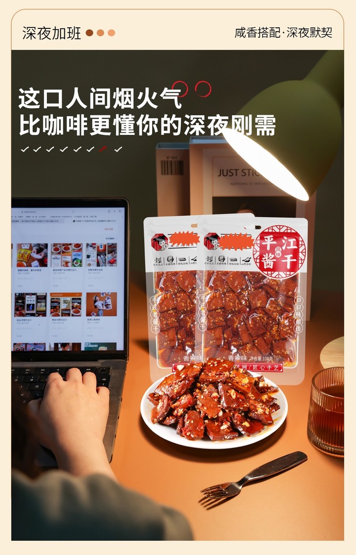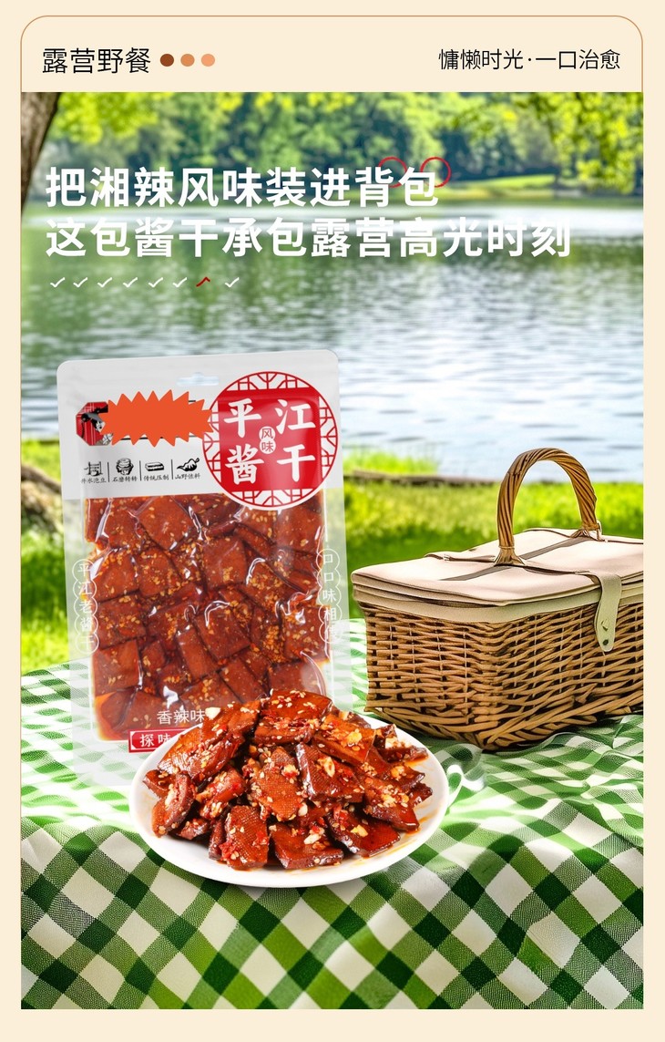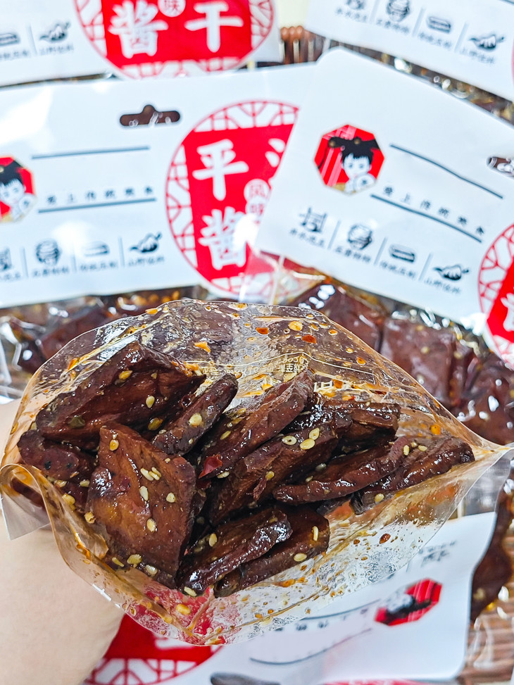 🔥🔥平江风味酱干推荐理由🔥🔥 ✅ 香辣风味辣而不燥,薄切酱干浸润浓郁卤汁,入口鲜香,过瘾得很 ✅ 植物蛋白低碳饮食先锋,100g豆干蛋白质高达43%,胜过牛奶鸡蛋! ✅独立包装,随身好携带,随时随地高效补充蛋白质! 回味悠长,入口一瞬也不怠慢! 刚入舌尖,不是佐料的猛麻 而是瞬间就能透过浅浅佐料 探究到其背后的豆腐滋味.... 可以尝到忙碌人们磨豆腐的样子 这是食物的美,更是豆干的匠心 一口就能吃到酱干滋味... 甚是满足!!🥰