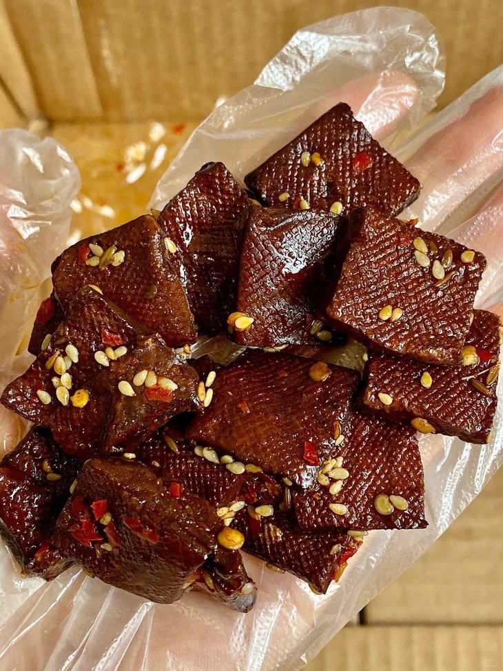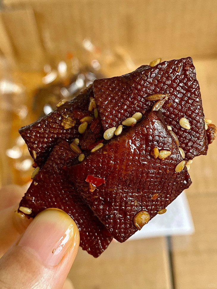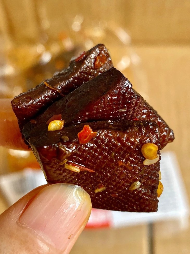 口感劲道不柴也不软绵! 不是鱼豆腐,也不是柴豆腐 而是真真切切的好豆腐做的酱干 所以不会嫩滑到像鱼肉 也不是干硬柴口,满是豆渣 嚼着嚼着劲道带不费劲 带着弹性但不会软绵无力 配点小酒,消磨时光,解个嘴馋相当惬意!