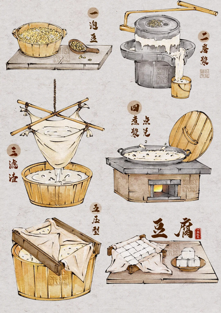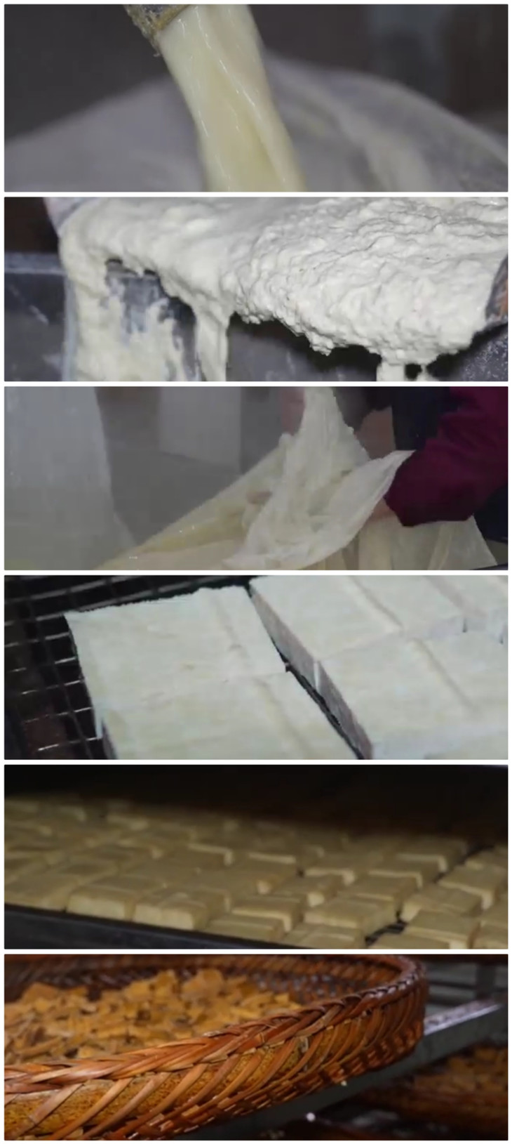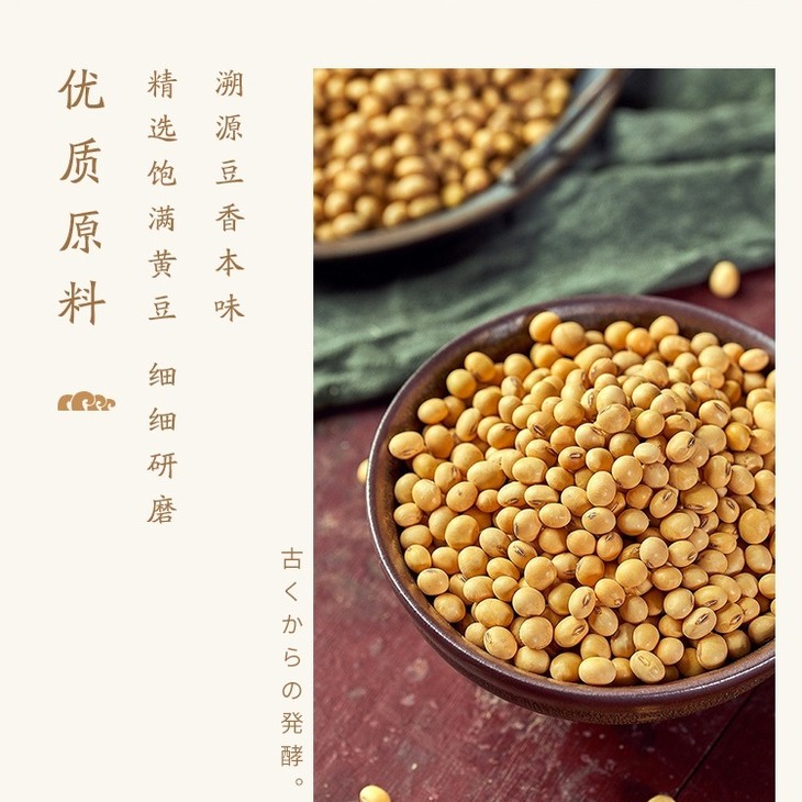 ✅传统工艺手工制作 在制作豆腐干的所有工序之前 首先要挑选出上好的原料——黄豆 精选优质黄豆 成色度好、蛋白质含量高 黄豆需要经过井水的浸泡 冬季要浸泡10小时以上、夏季浸泡4~5小时 被井水唤醒的黄豆,体积膨胀,变得柔软饱满