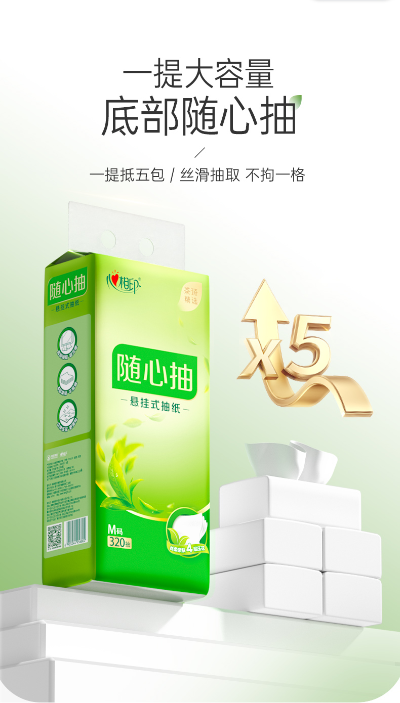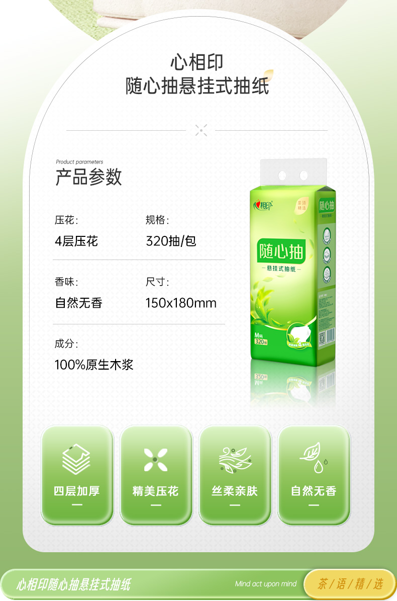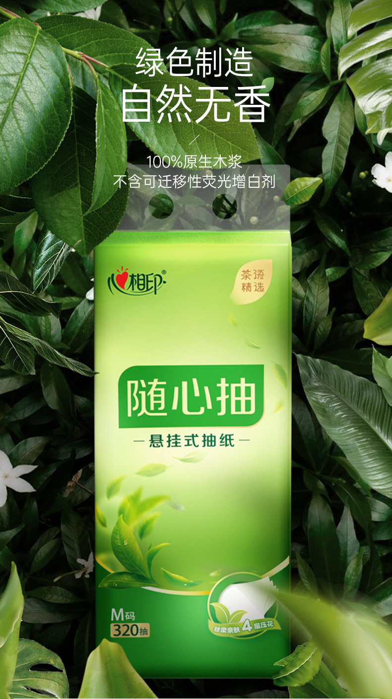 心相印 纸巾 DT10320(箱装)茶语精选320抽4提四层悬挂式提装面巾纸(赠一个挂钩)
