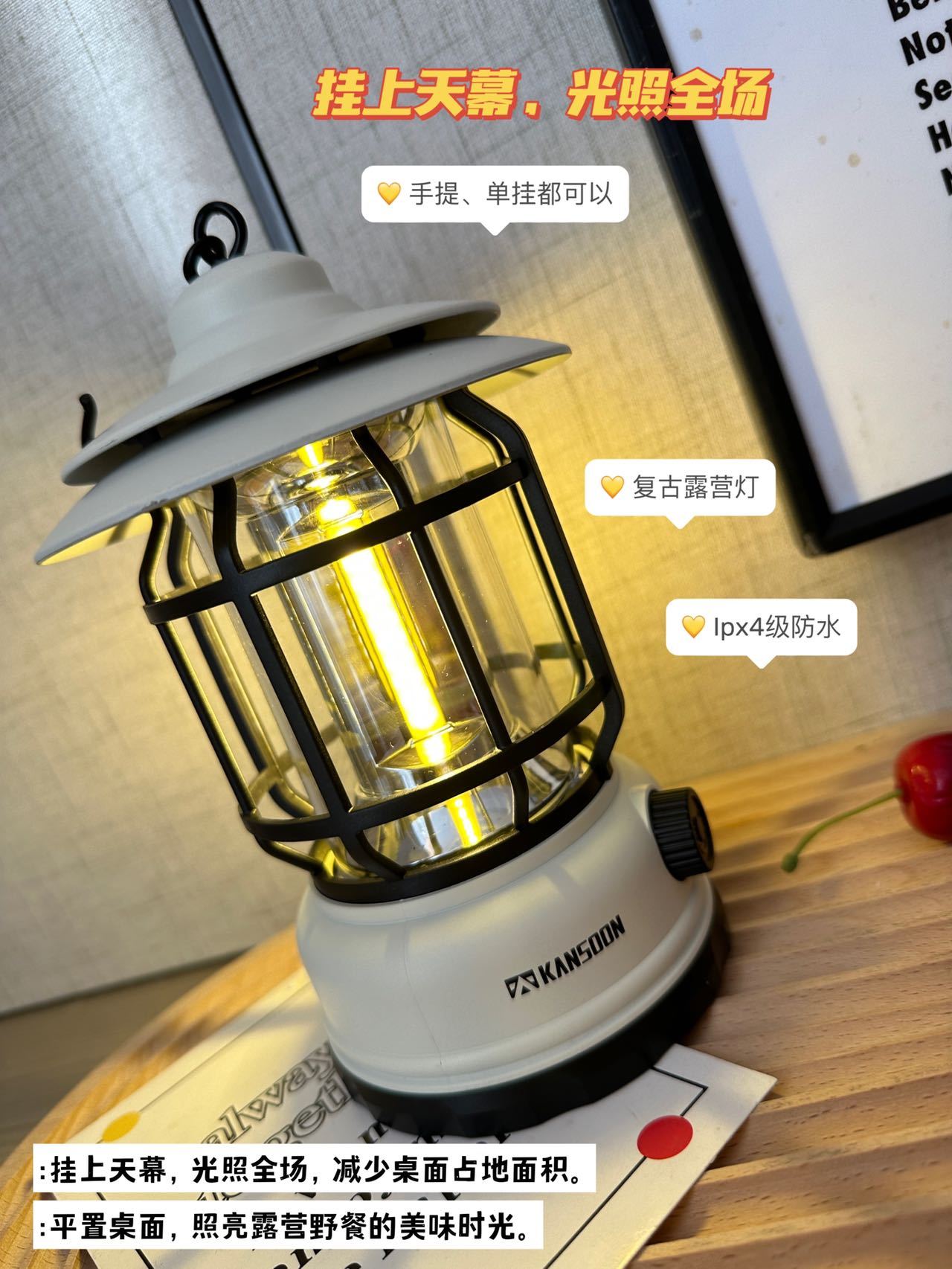 【凯速复古露营灯充电款】💥刘甜推荐❗露营好物👉✅可手提✅可悬挂适配户外复杂的环境 🔺无极调光 渐进调节 🔺户外防水 抗压防摔 🔺明暗随心切换 持久照明 🔺