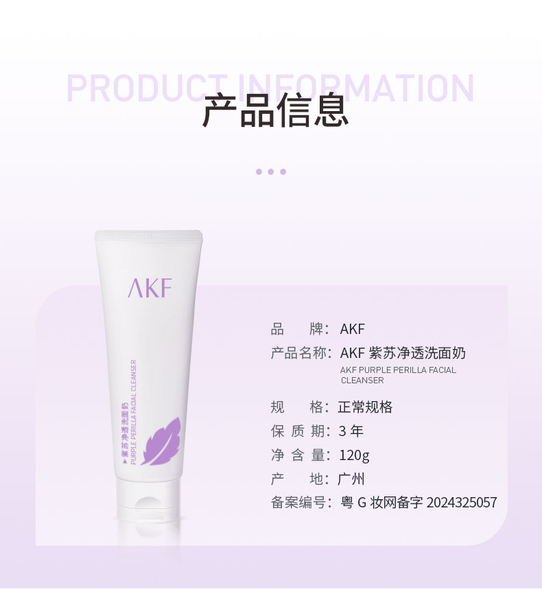 【AKF】紫苏洗面奶氨基酸女深层清洁收缩毛孔学生温和男士洁面乳