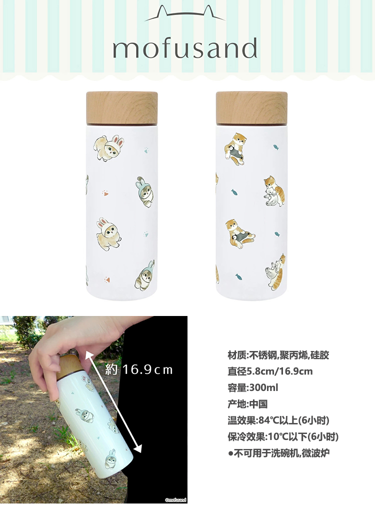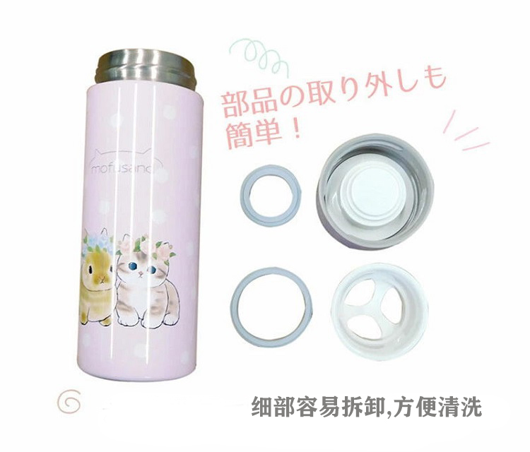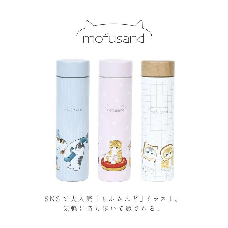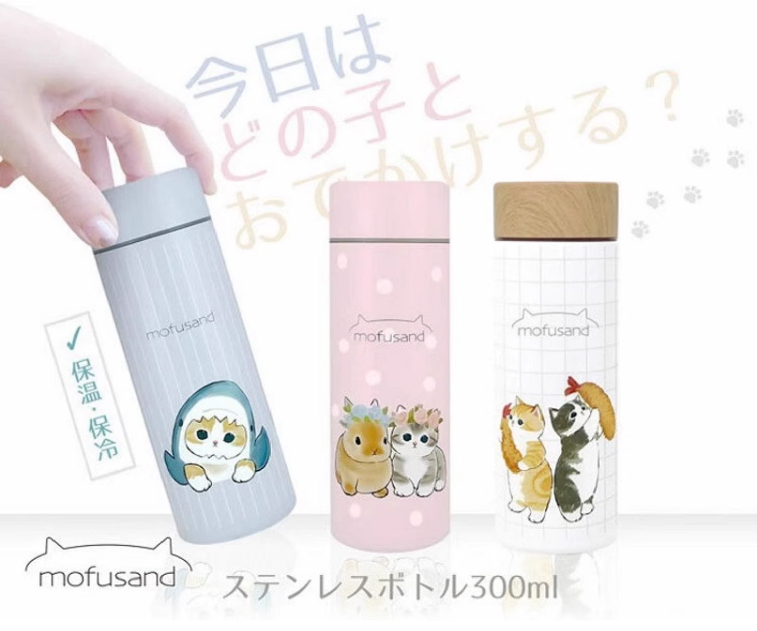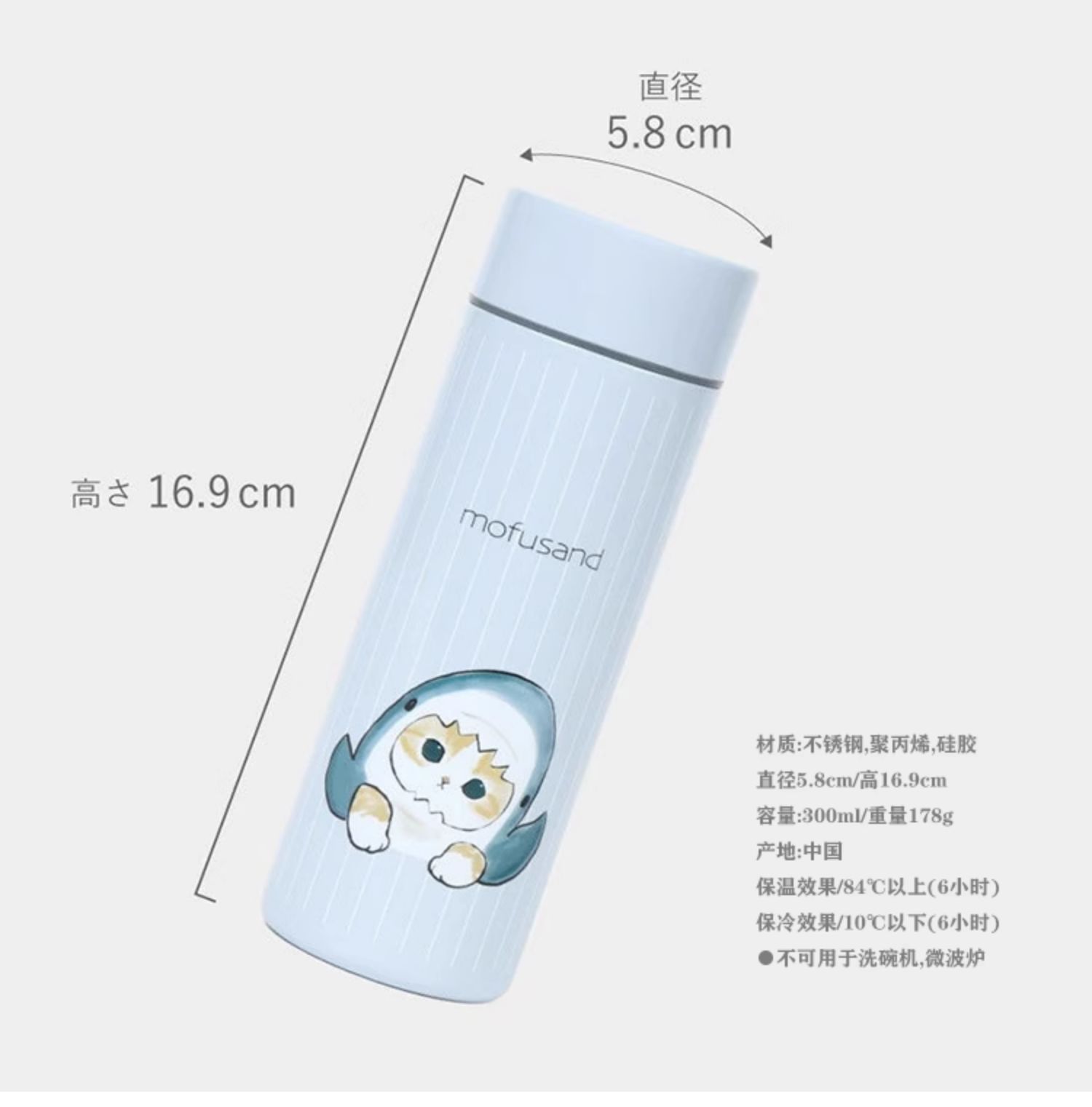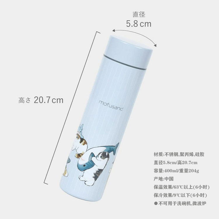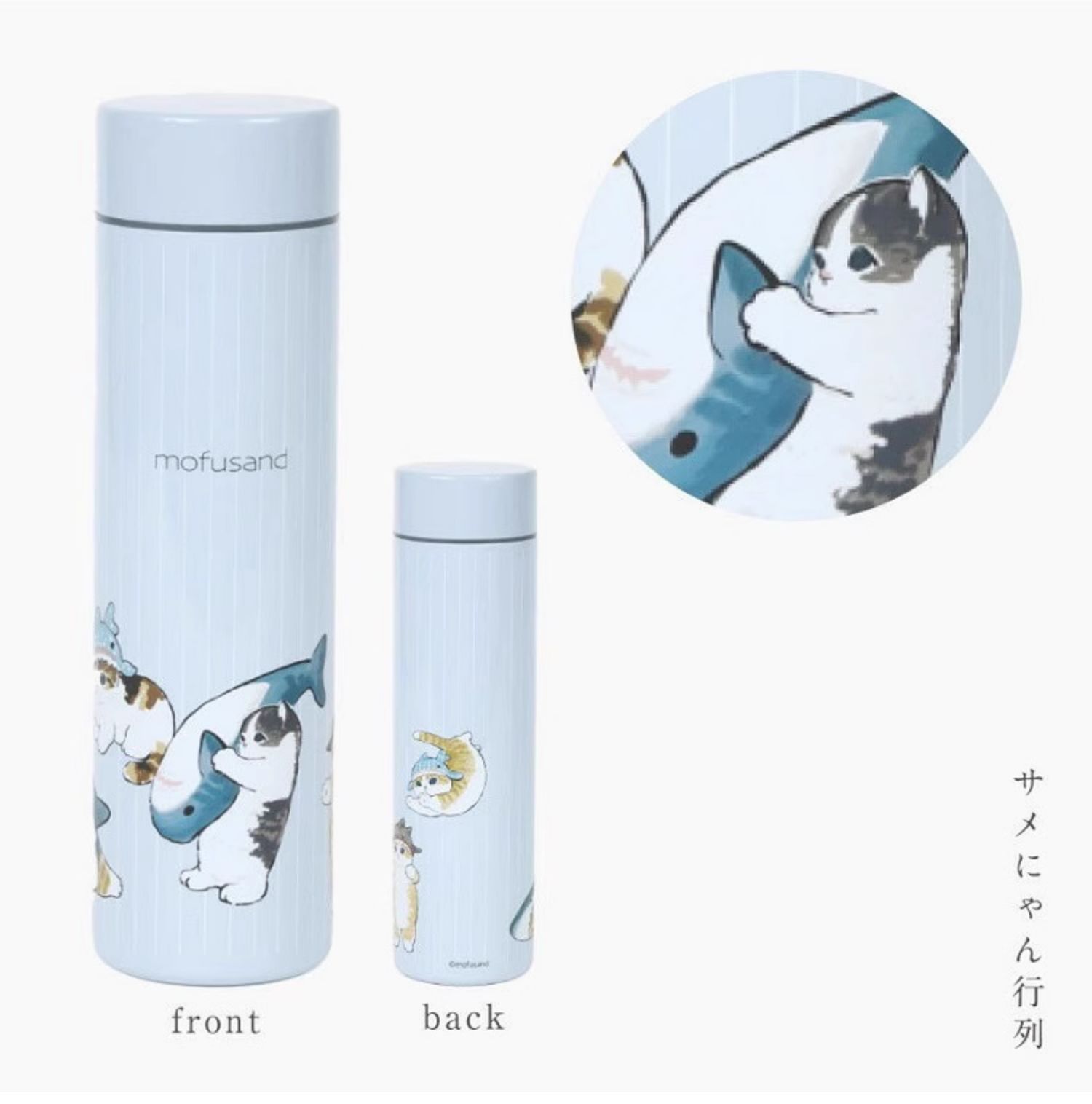 日本进口东亚金属mofusand 不锈钢水瓶400ml(鲨鱼猫队列)