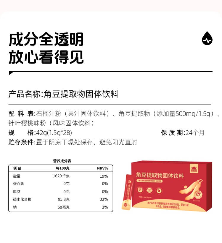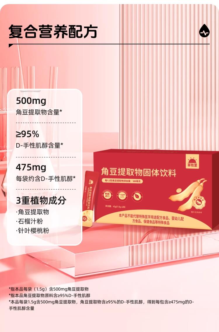 【科学配方】草牧里 角豆提取物固体饮料 42g(1.5gx28)/盒 3重植物提取成分