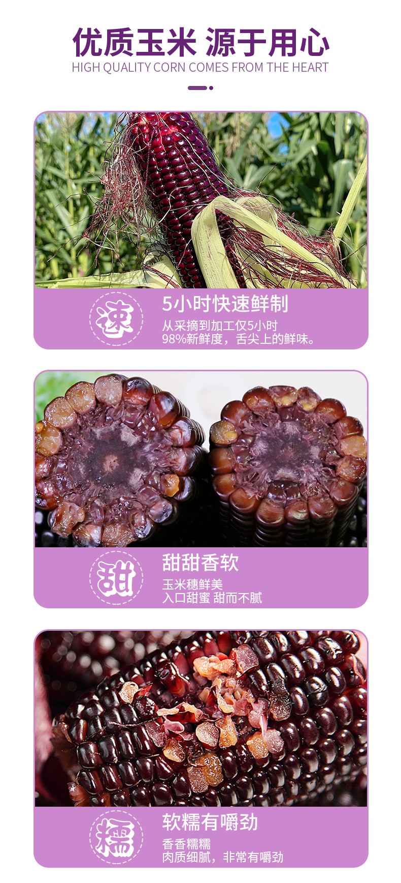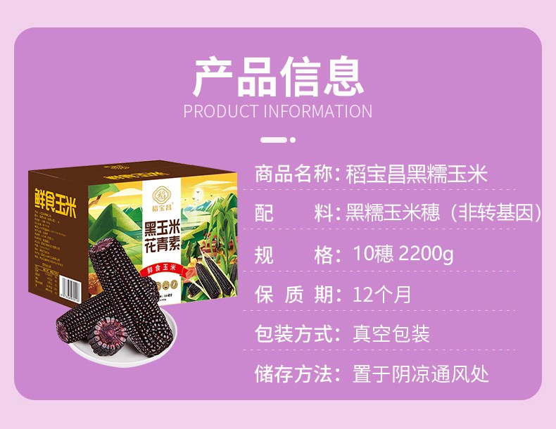 稻宝昌 东北鲜制黑糯玉米棒非转基因真空包邮 10穗2200g