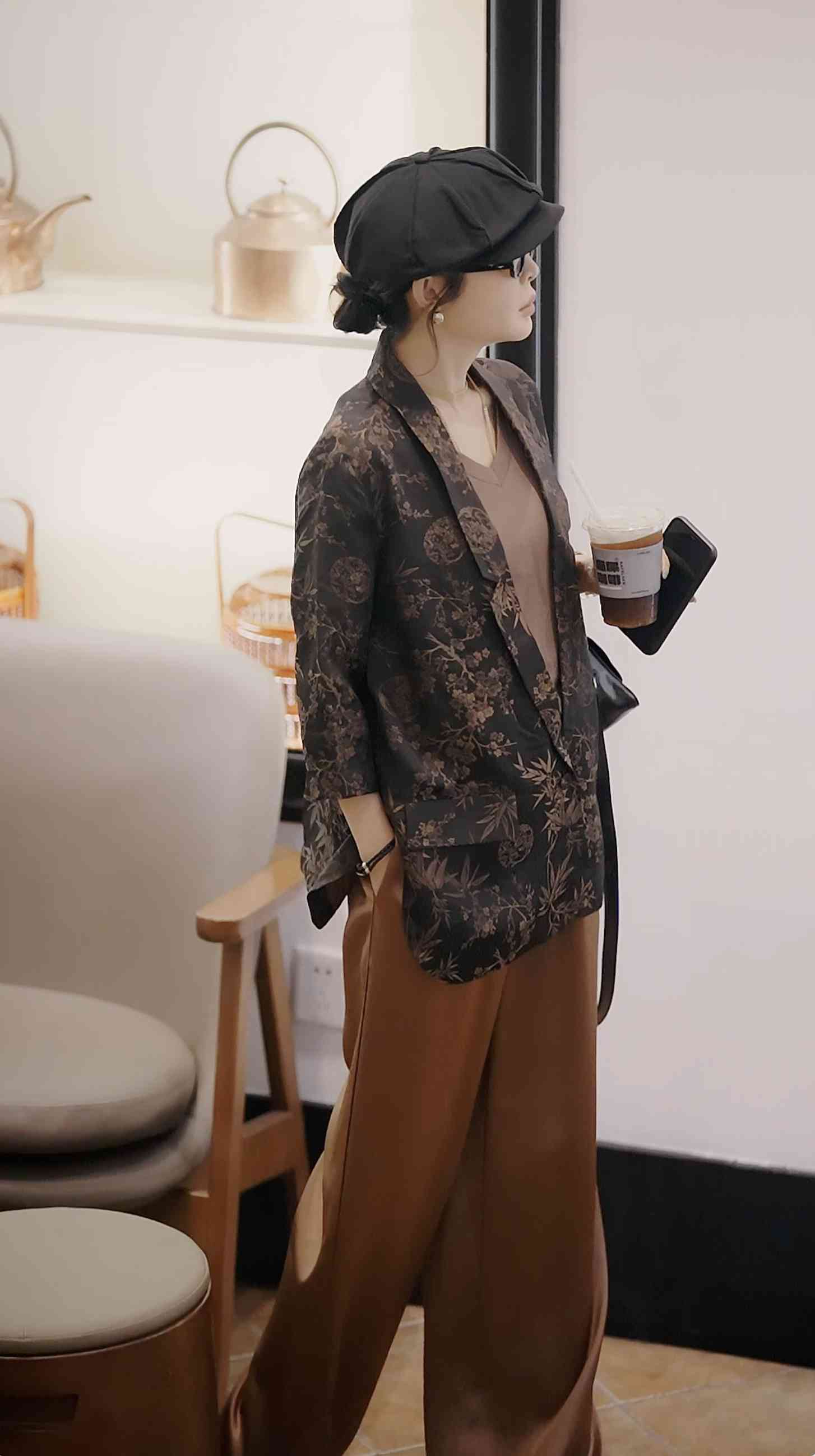 04-3潘依绣丁丁宠粉【香-云-纱】真-丝中式时尚花纹中袖西装 W-61348