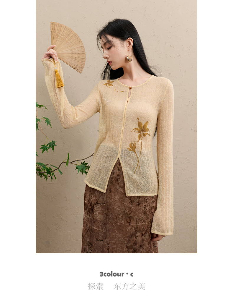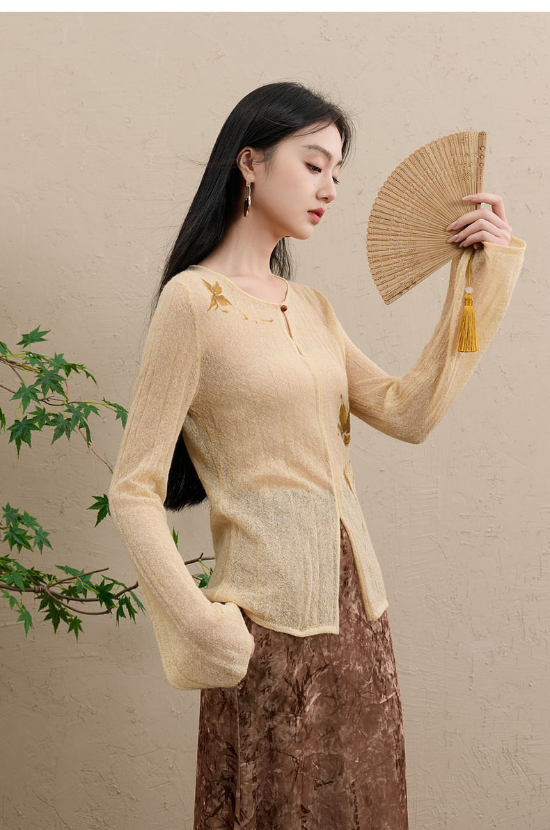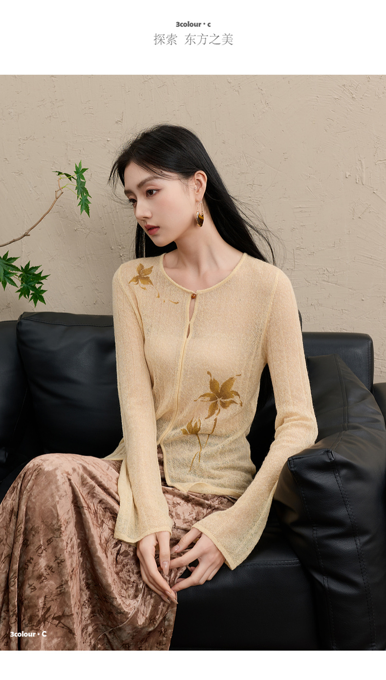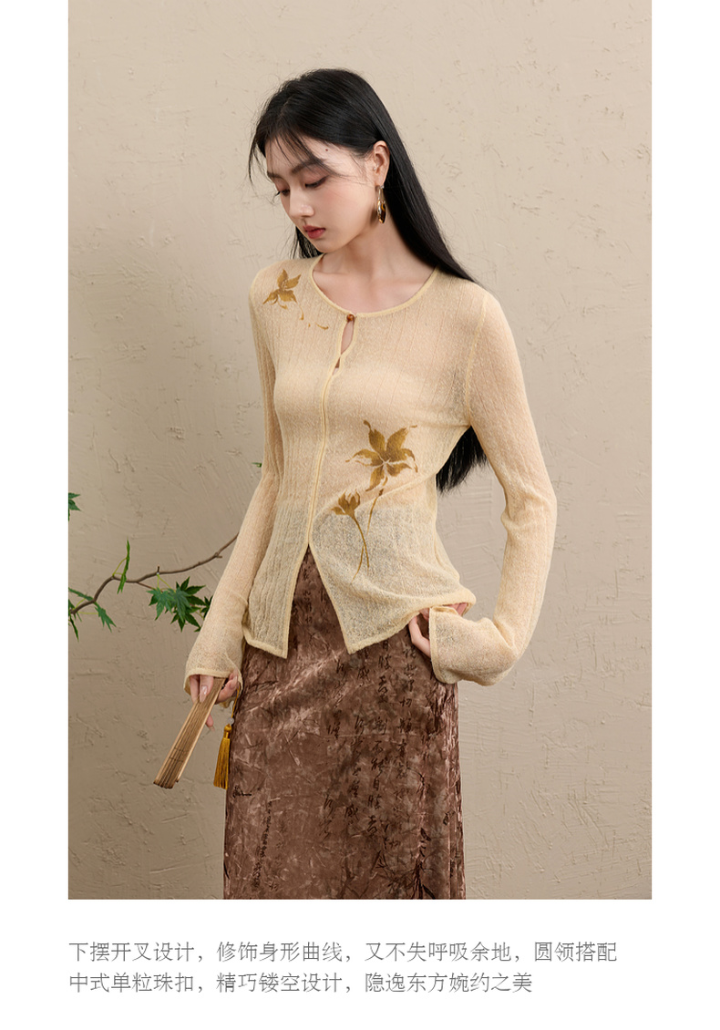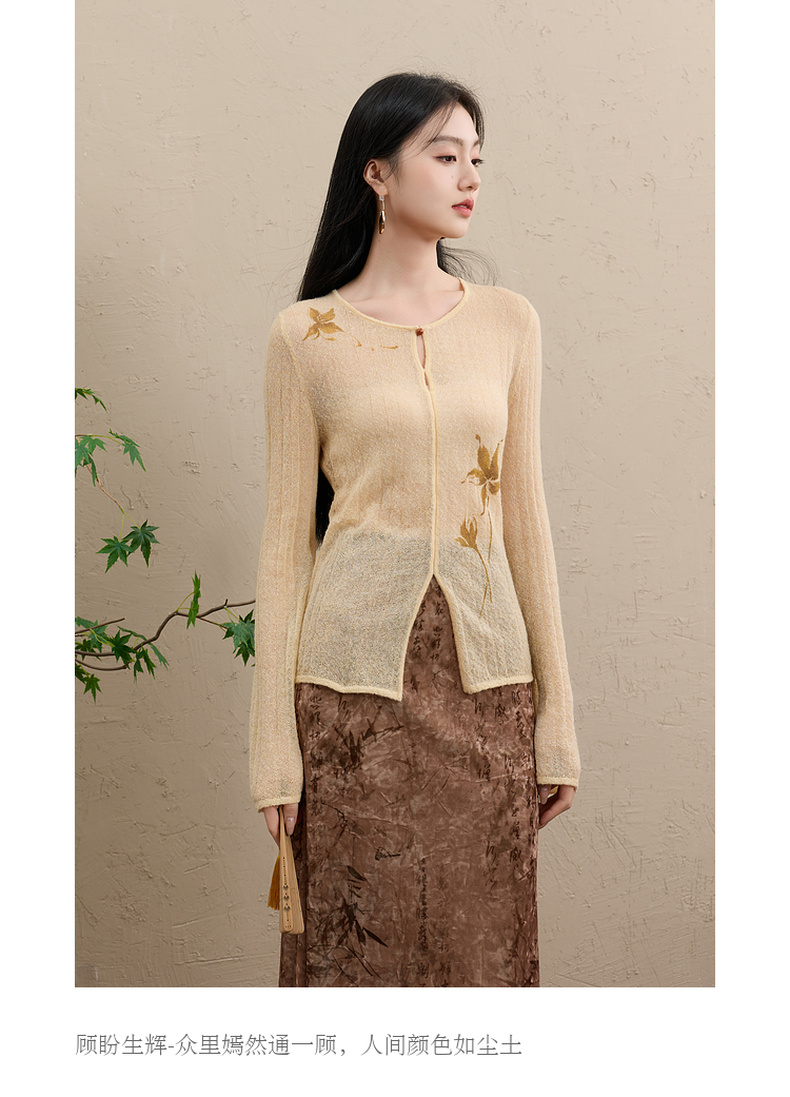 三彩【顾盼生辉】2025冬季新款修身针织衫镂空开叉毛衫C