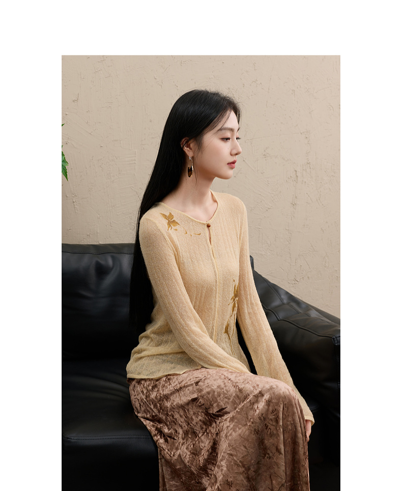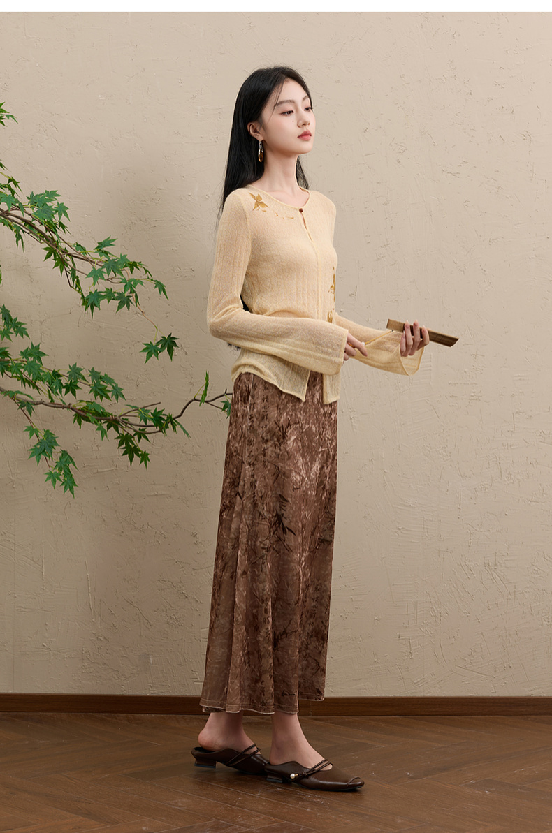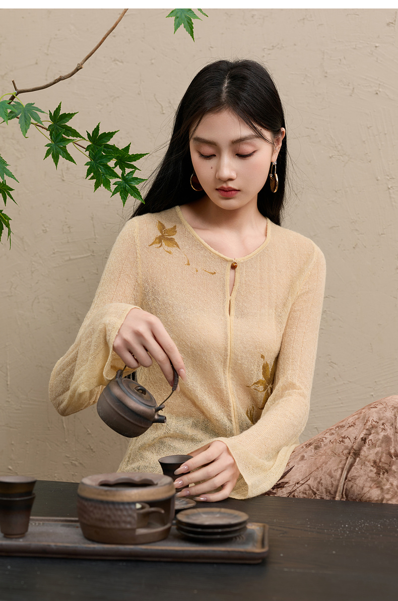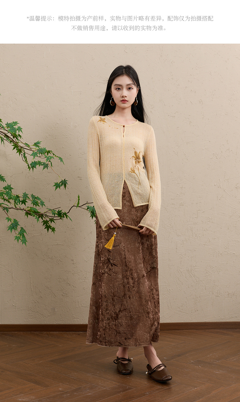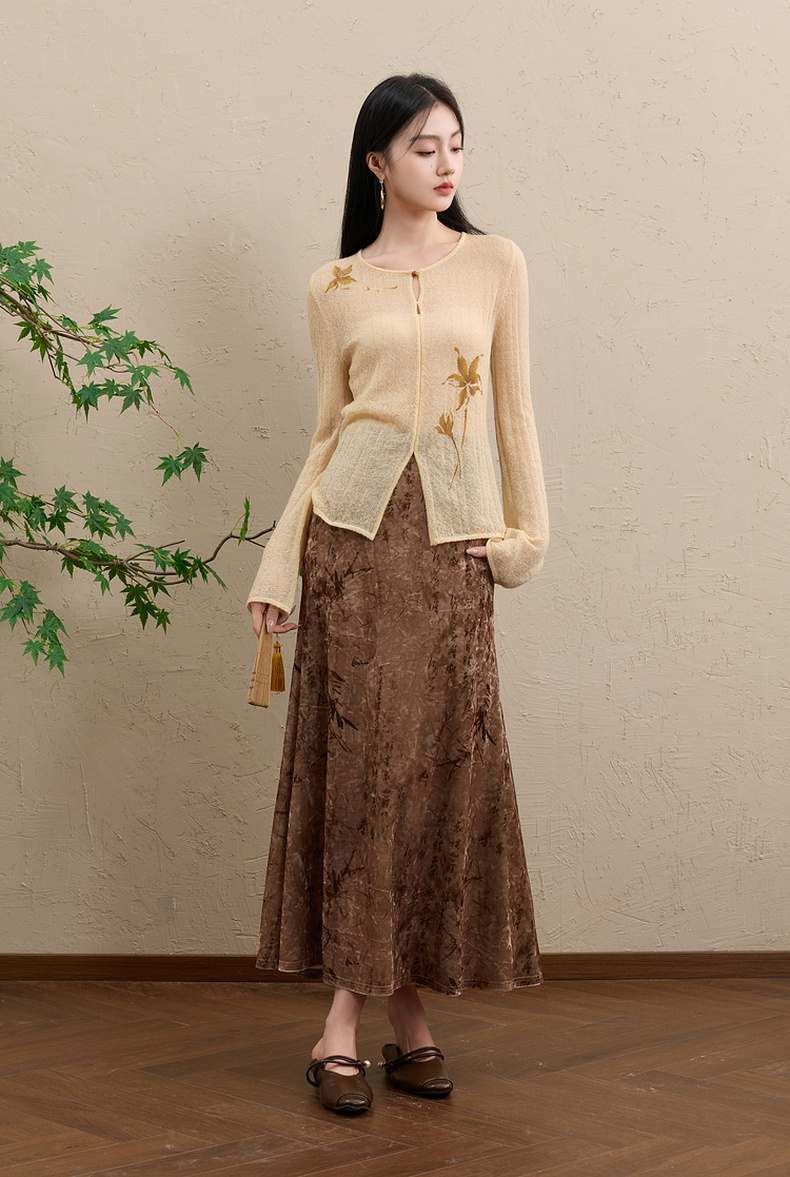 三彩【顾盼生辉】2025冬季新款修身针织衫镂空开叉毛衫C