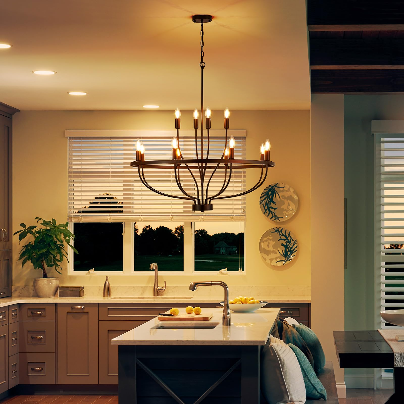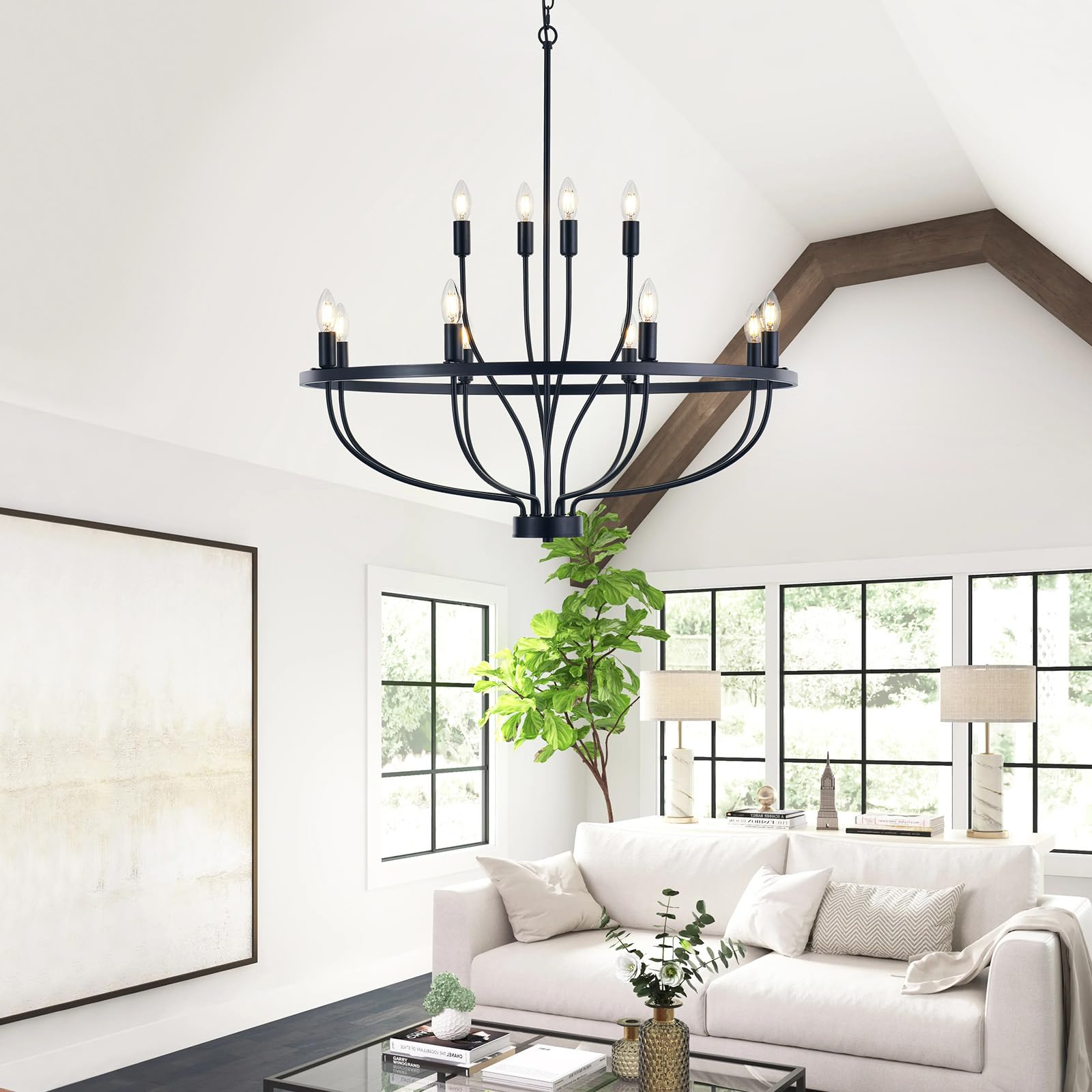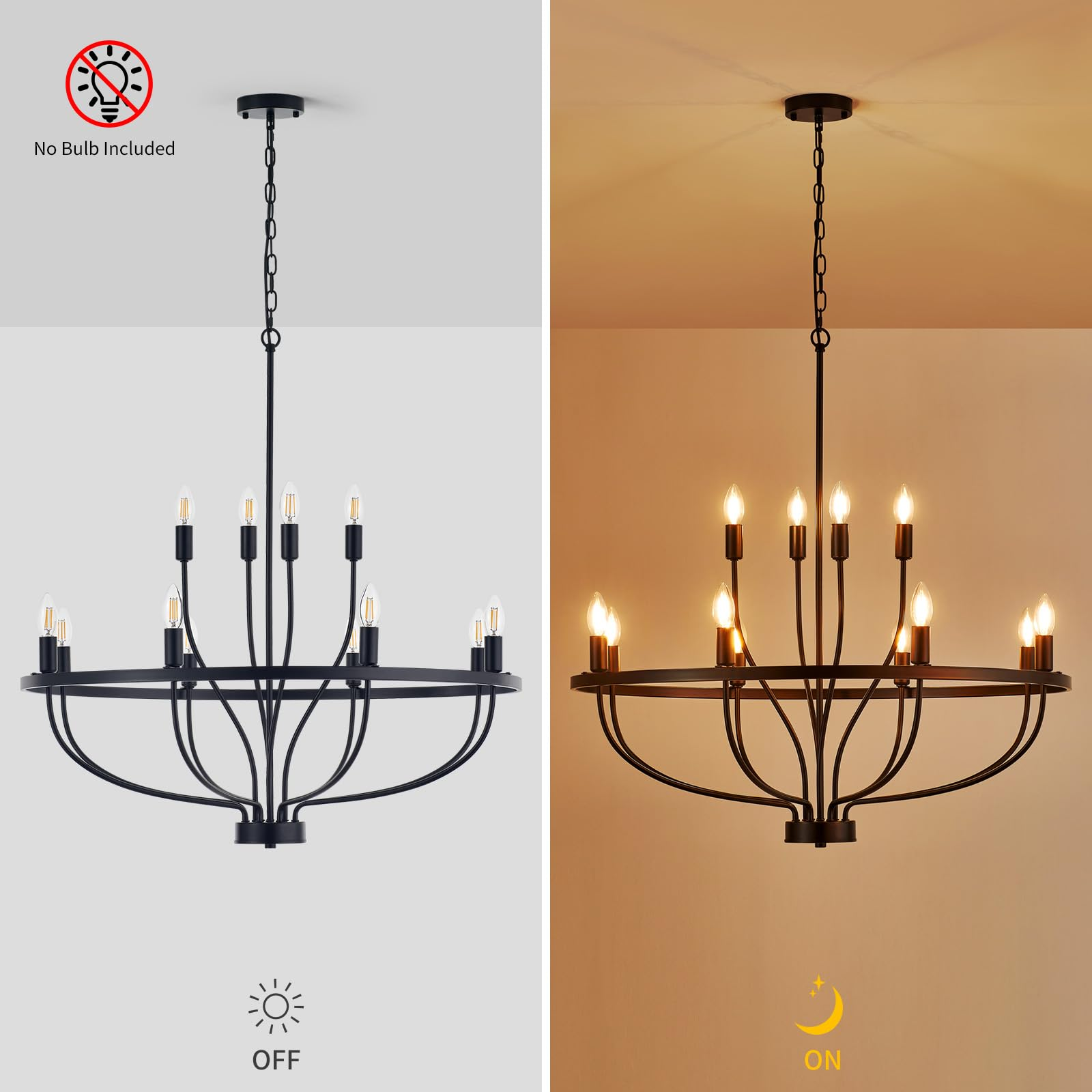 这款大型黑色吊灯采用永恒经典设计,能完美融入任何装饰风格。12盏均匀分布的烛台风格灯头营造出温暖宜人的氛围,这款复古工业风吊灯堪称您家居空间的点睛之笔。