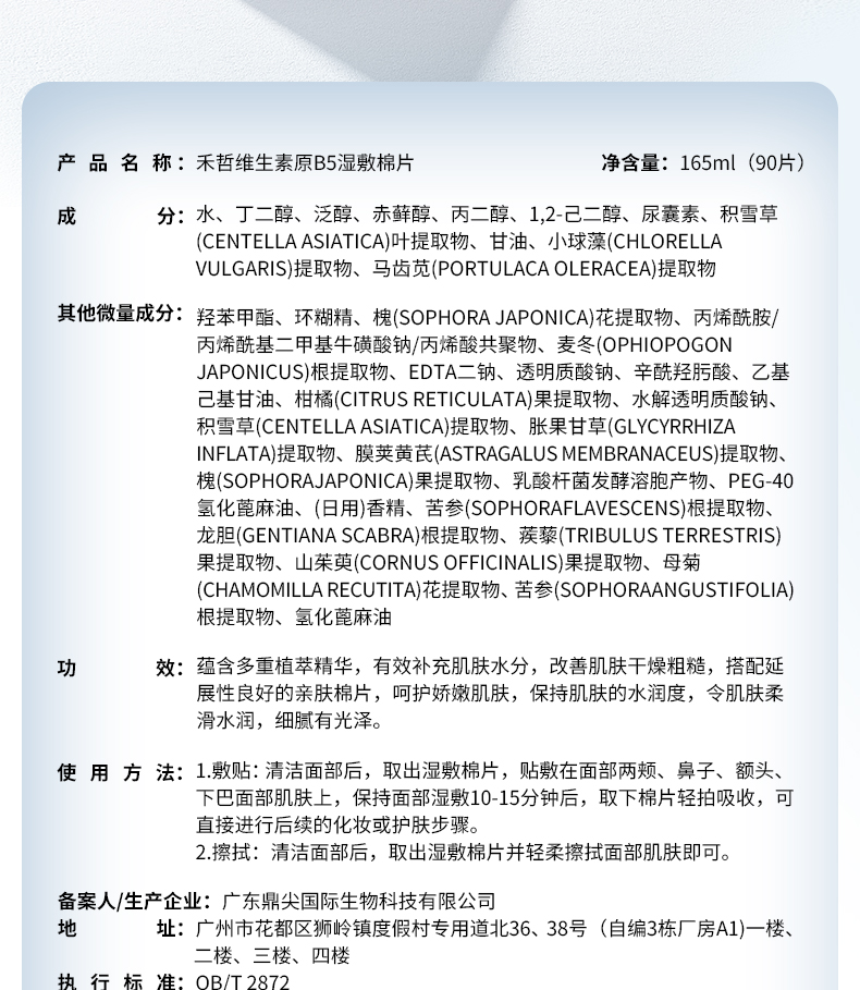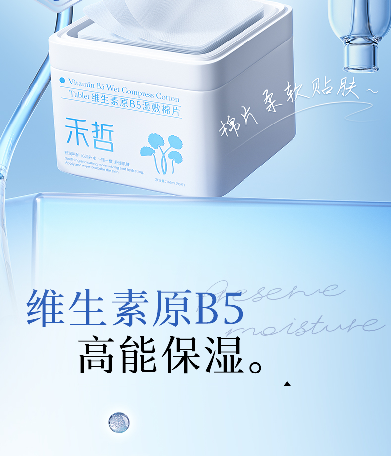 【禾哲Heezel】 维生素原B5湿敷棉片90片装(165ml)