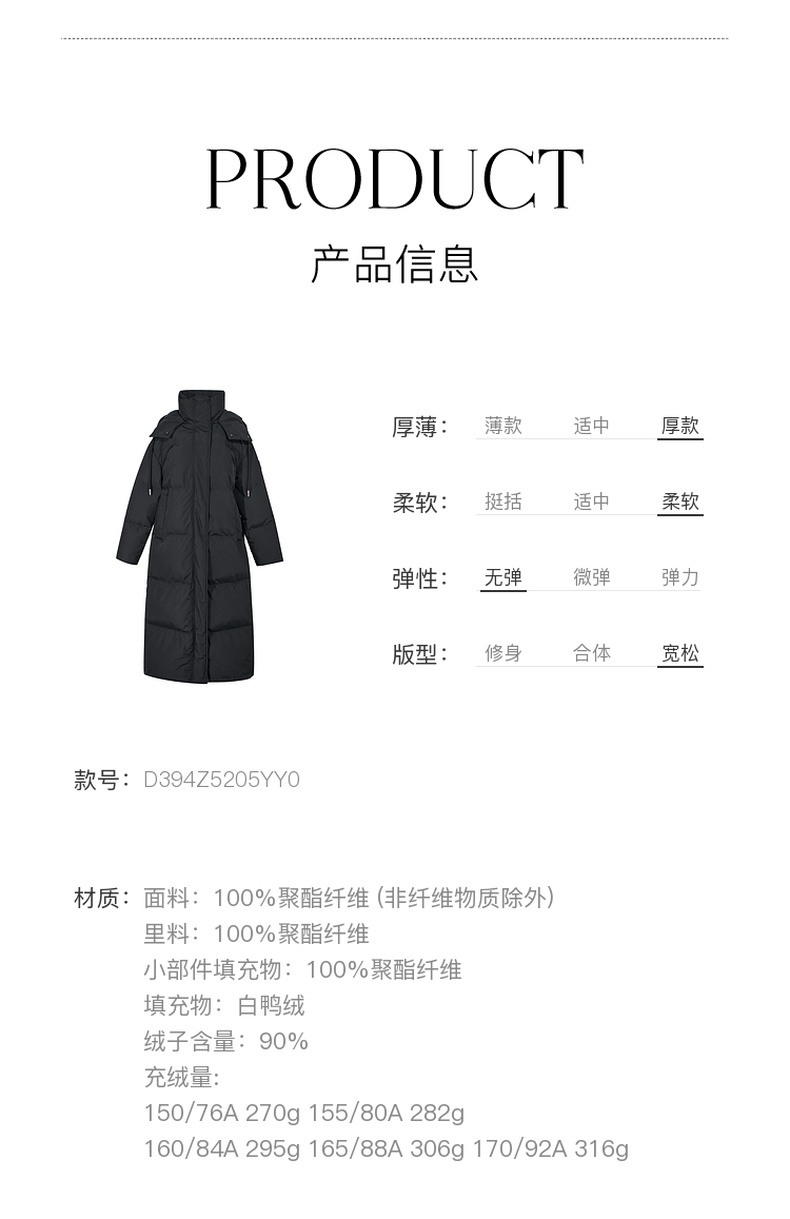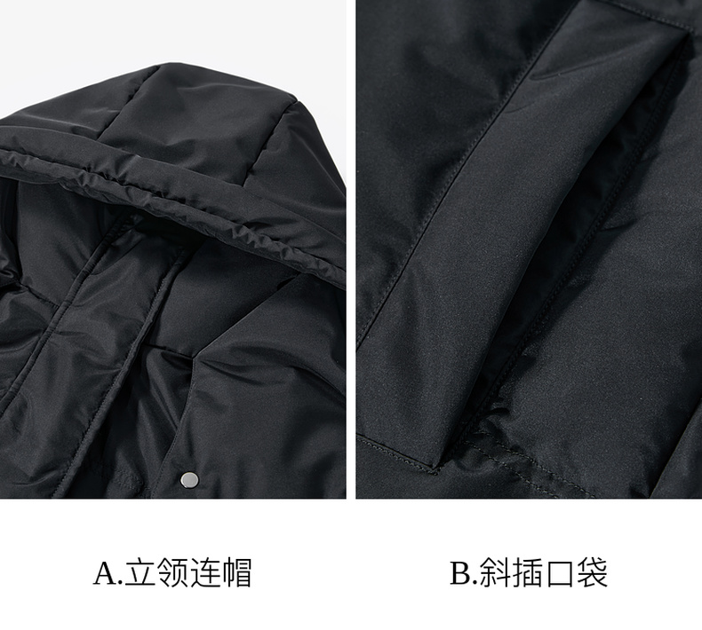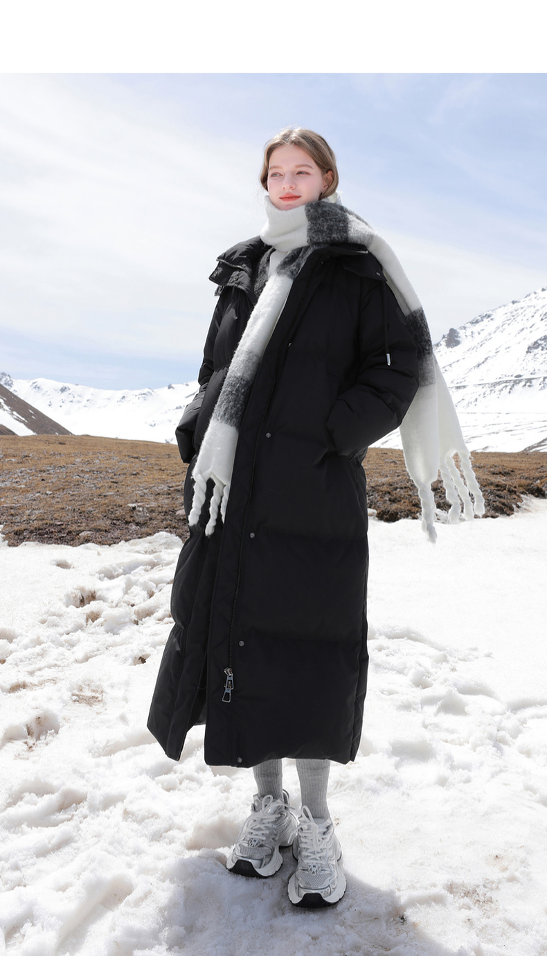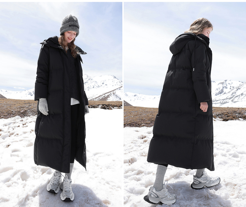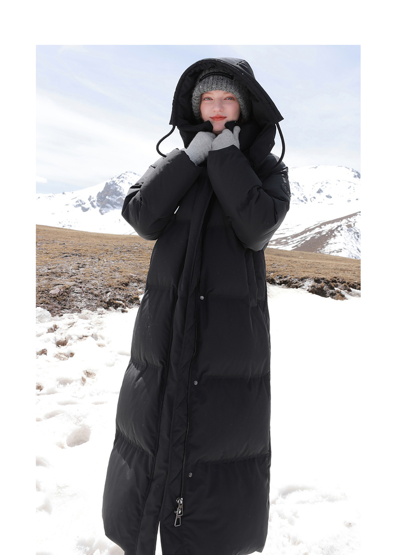 三彩2024冬季新款黑色长款羽绒服连帽三防白鸭绒被子服保暖外套女M