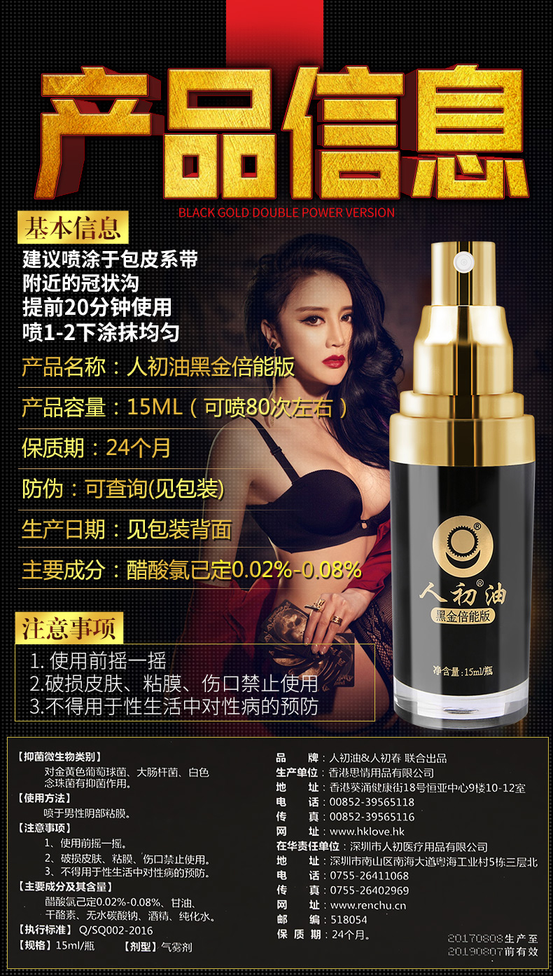 【情趣用品】人初油 黑金15ml人初倍能版 男用喷剂