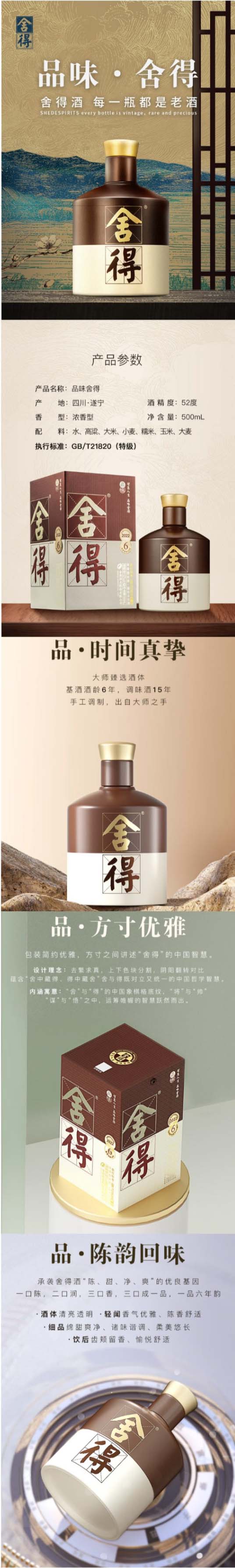 【整箱立减60】舍得(第五代)品味舍得 浓香型白酒 52度 500ml*1单瓶 500ml*6整箱