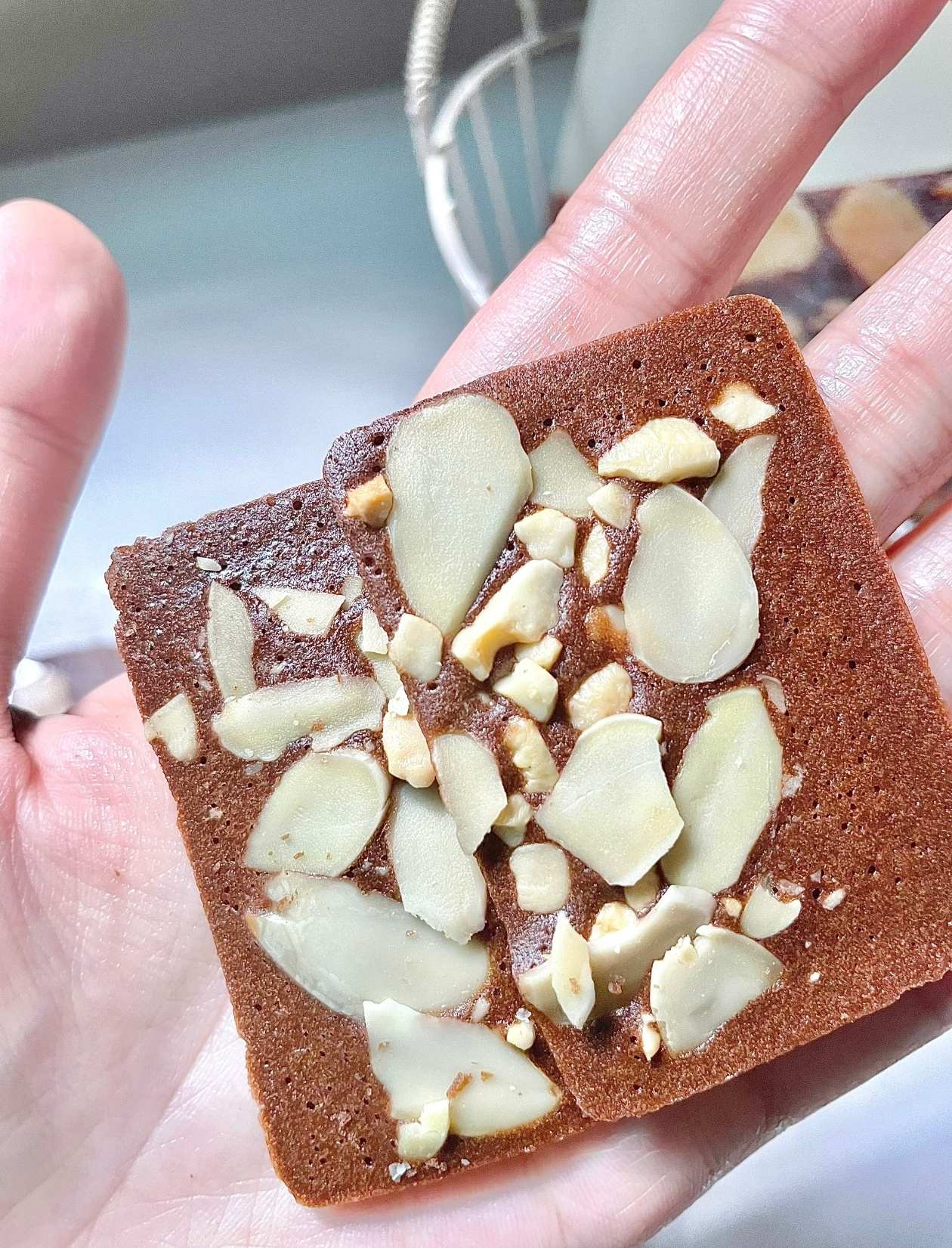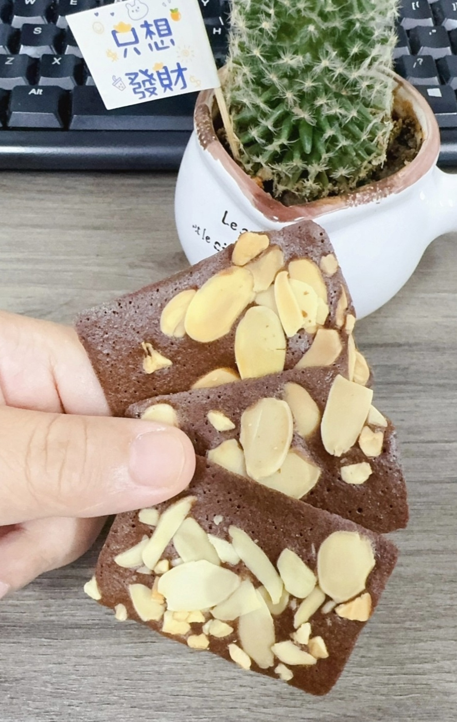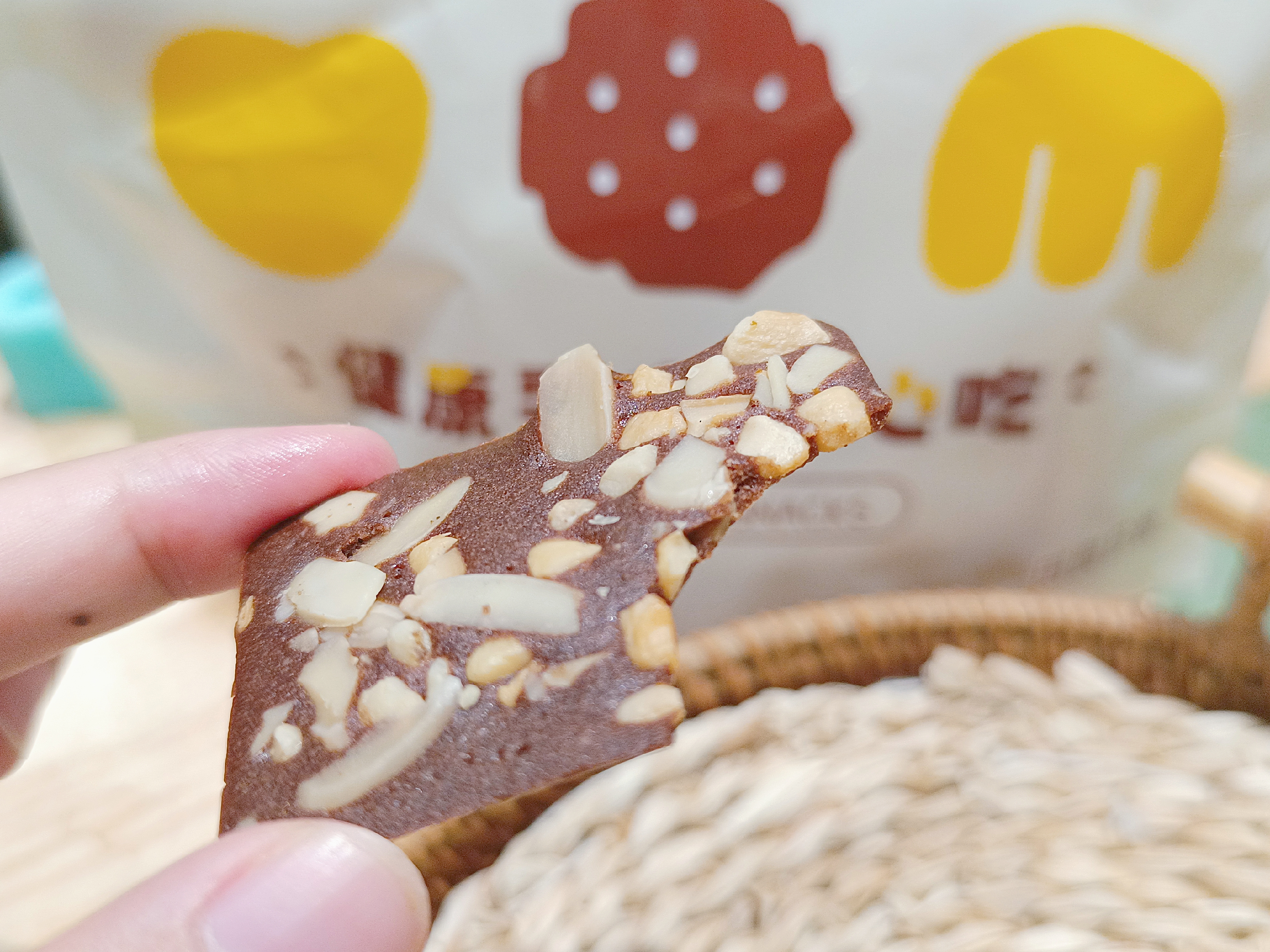 【甜原柿吉布朗尼脆片】 🍫黑巧微苦+🥥椰子清香!! 10% 扁桃仁和5%腰果仁❗️ 料多到溢出来 1毫米厚的一片,每一片都洒满了坚果