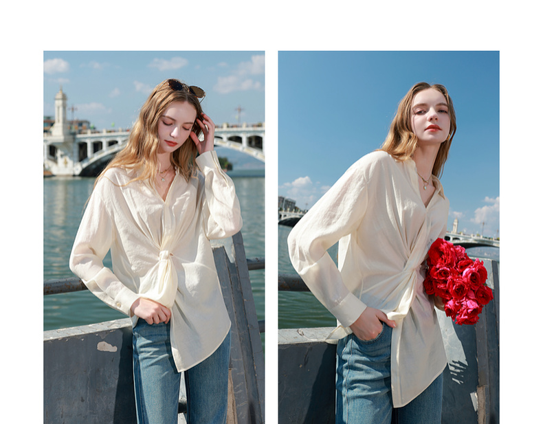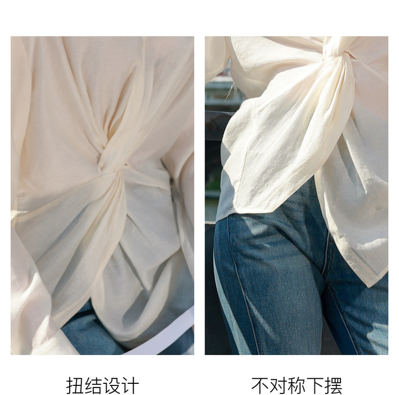 三彩2025秋季新款设计感小衫拼接扭结不对称上衣小众M