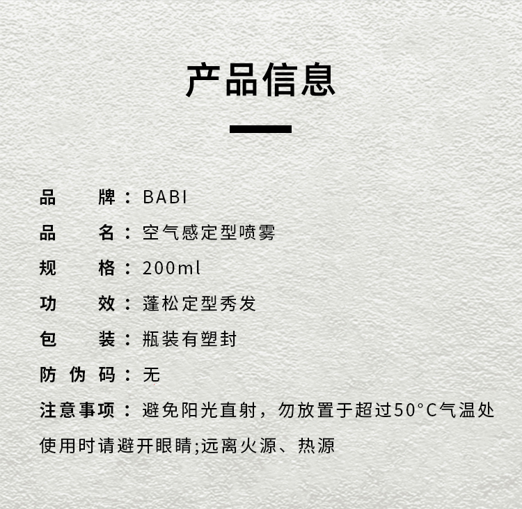 BABI 空气感定型喷雾【压力罐多收运费会退款】