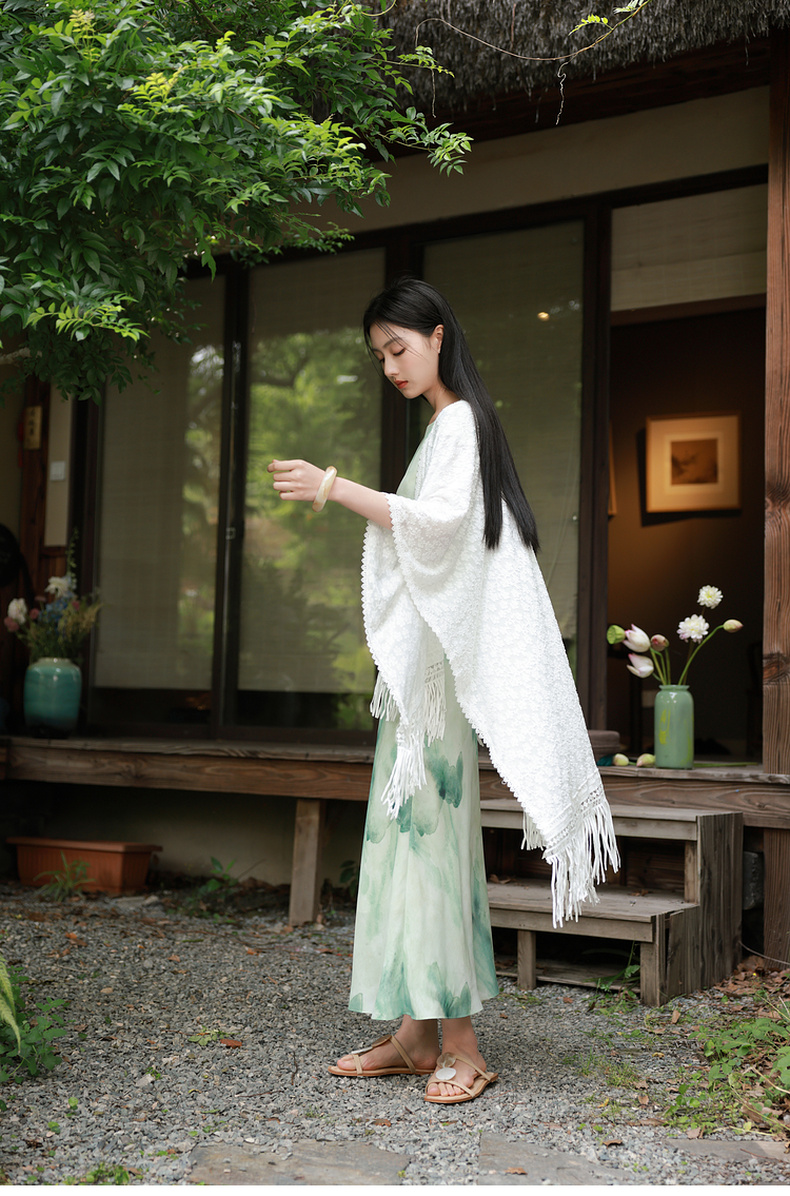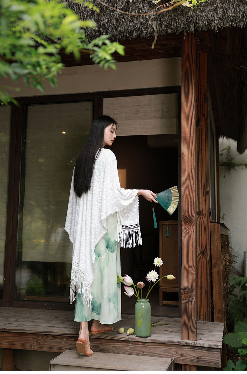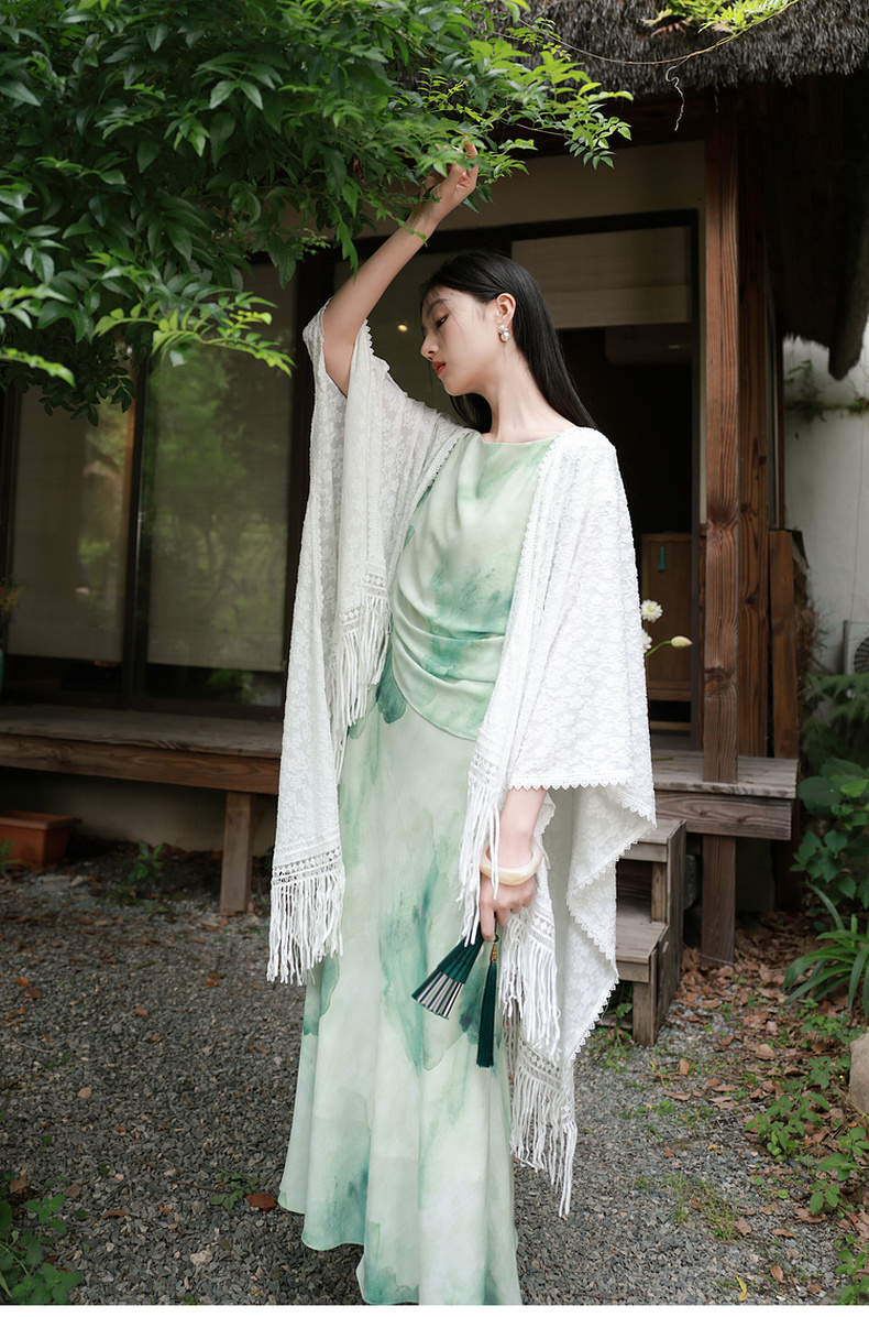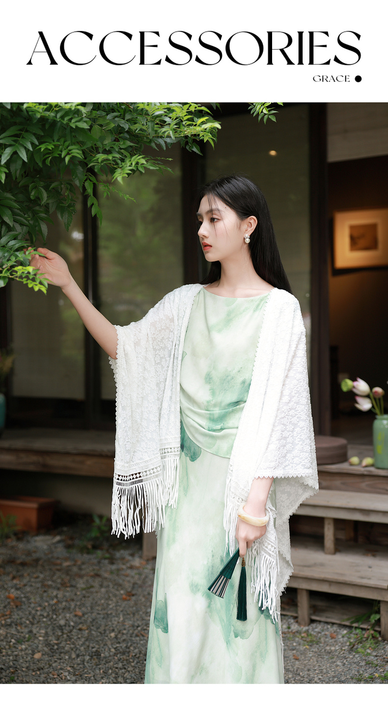 三彩2025新款【国风系列】蕾丝流苏披肩花边外搭温婉气质女优雅