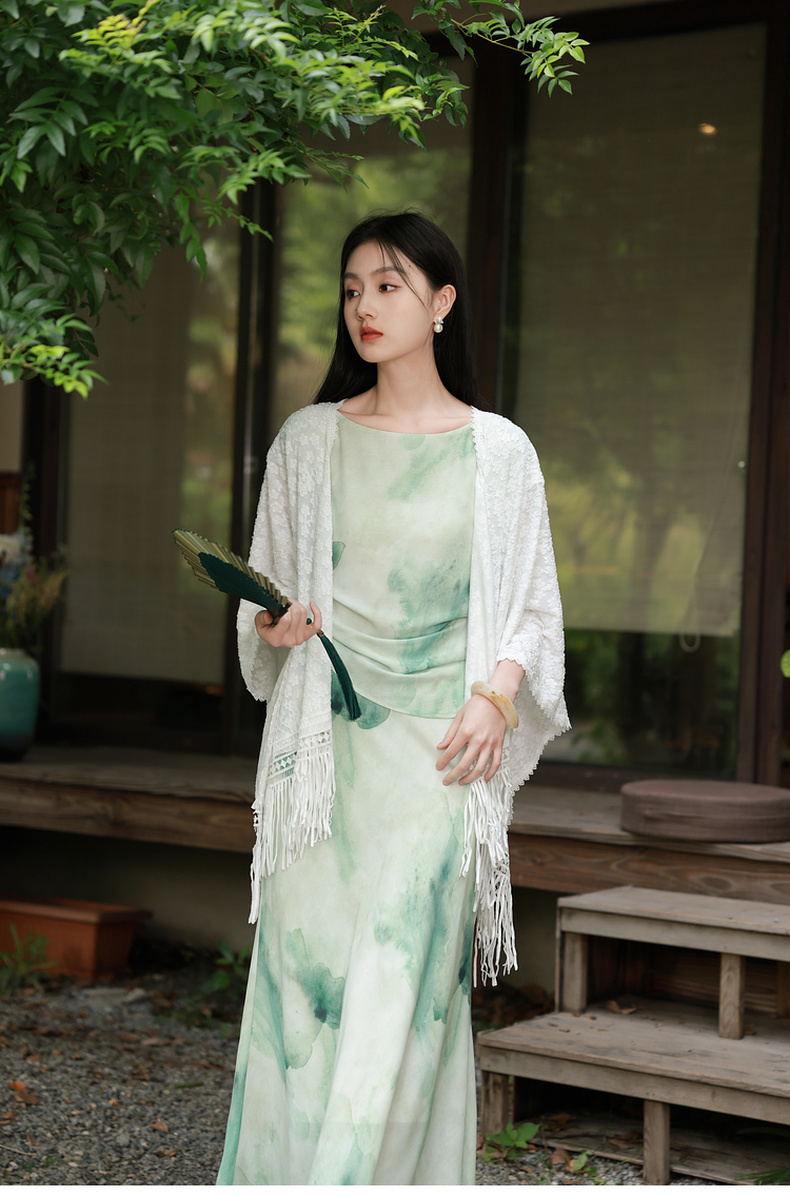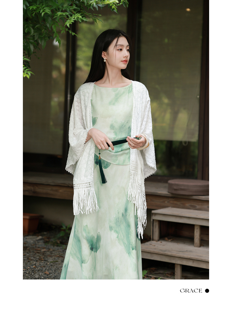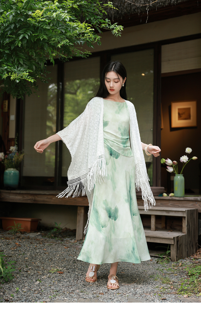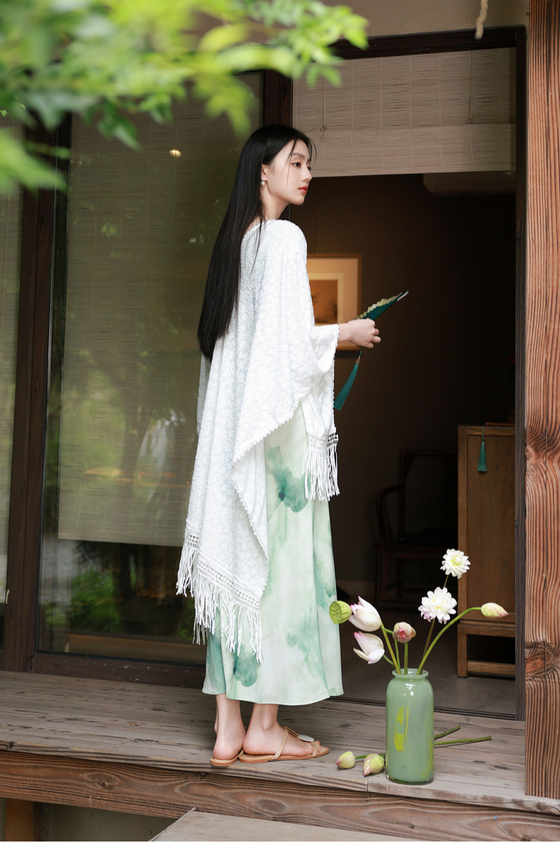 三彩2025新款【国风系列】蕾丝流苏披肩花边外搭温婉气质女优雅