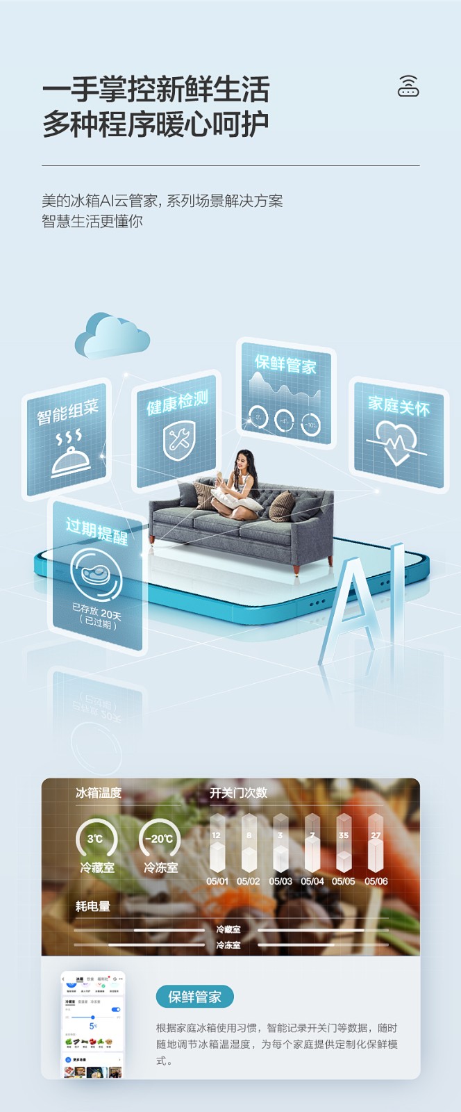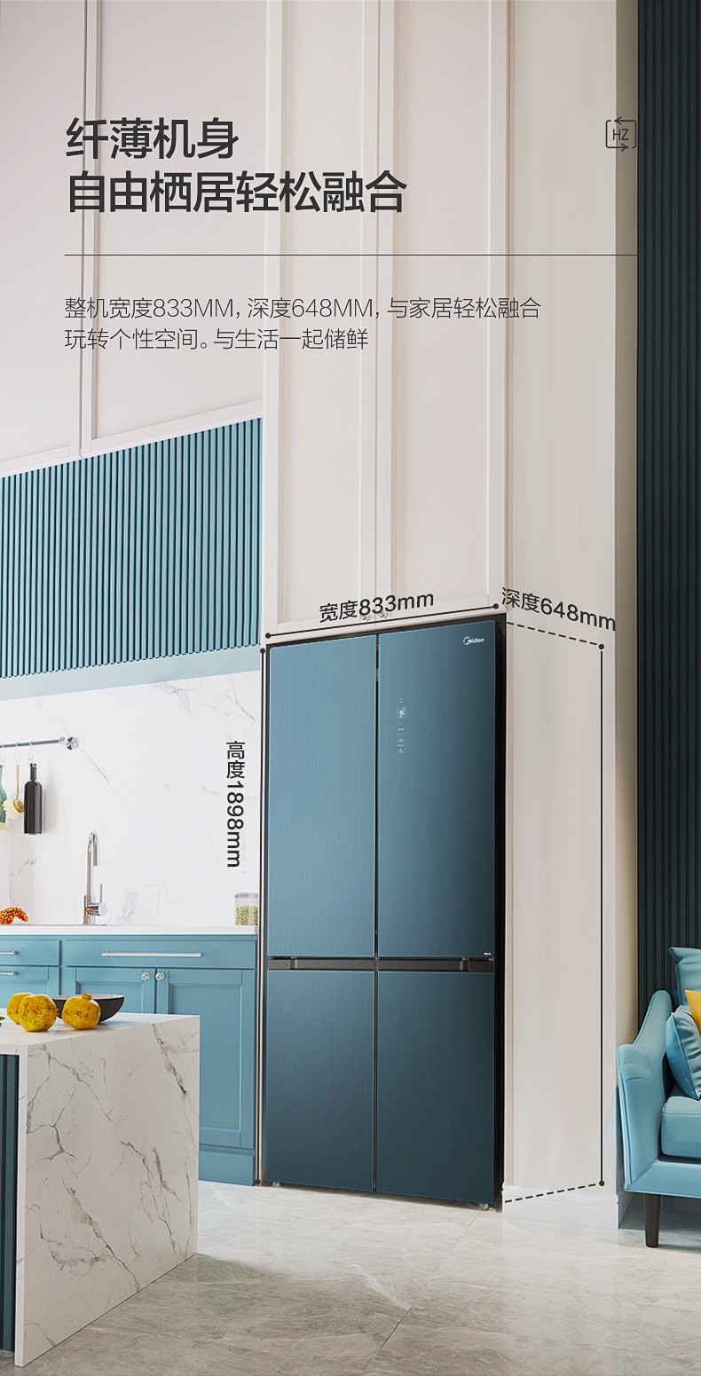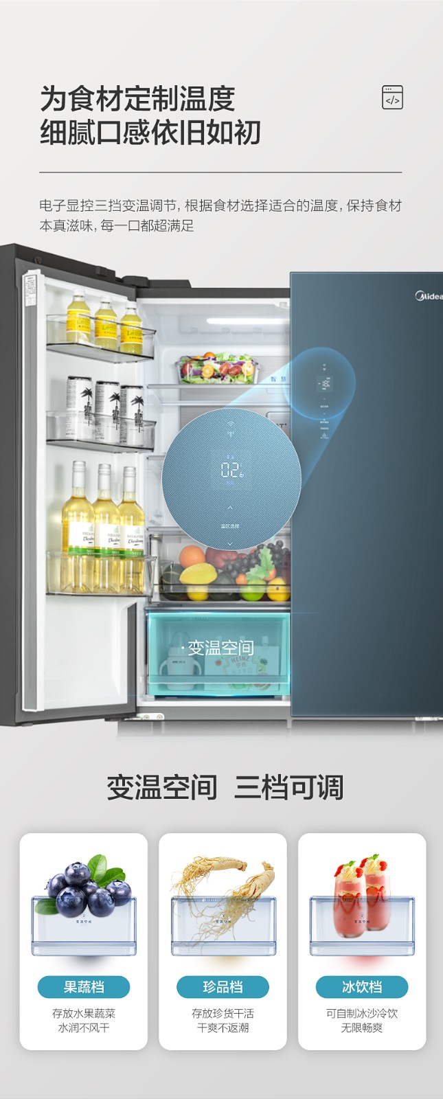 美的(Midea)509升十字对开门冰箱 19分钟急速净味除菌 一级变频双循环 智能家电 BCD-509WSGPZM(E)
