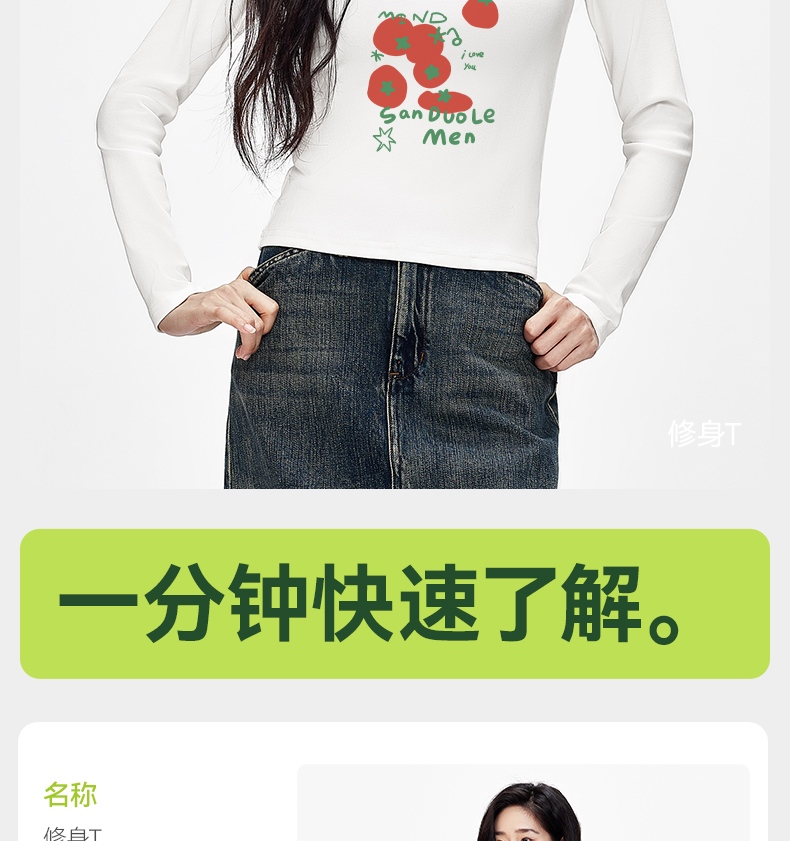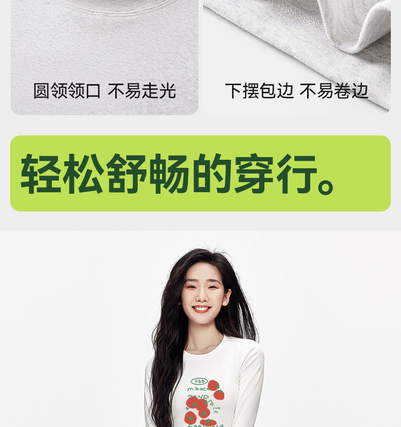 「棉的美学」修身甜辣风长袖T恤女西红柿印花经典显瘦收腹打底衫