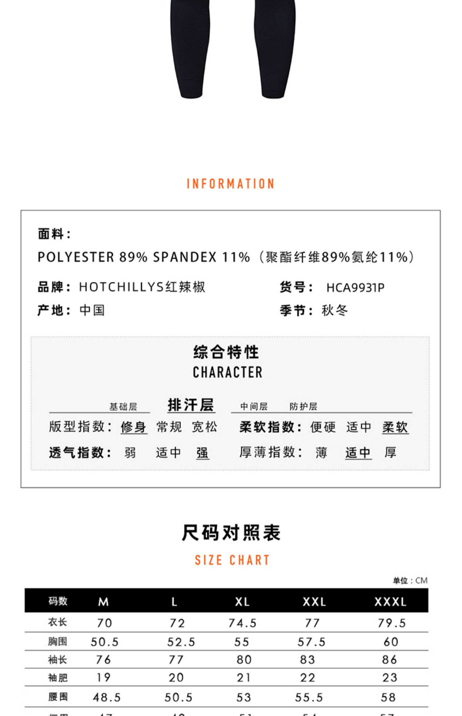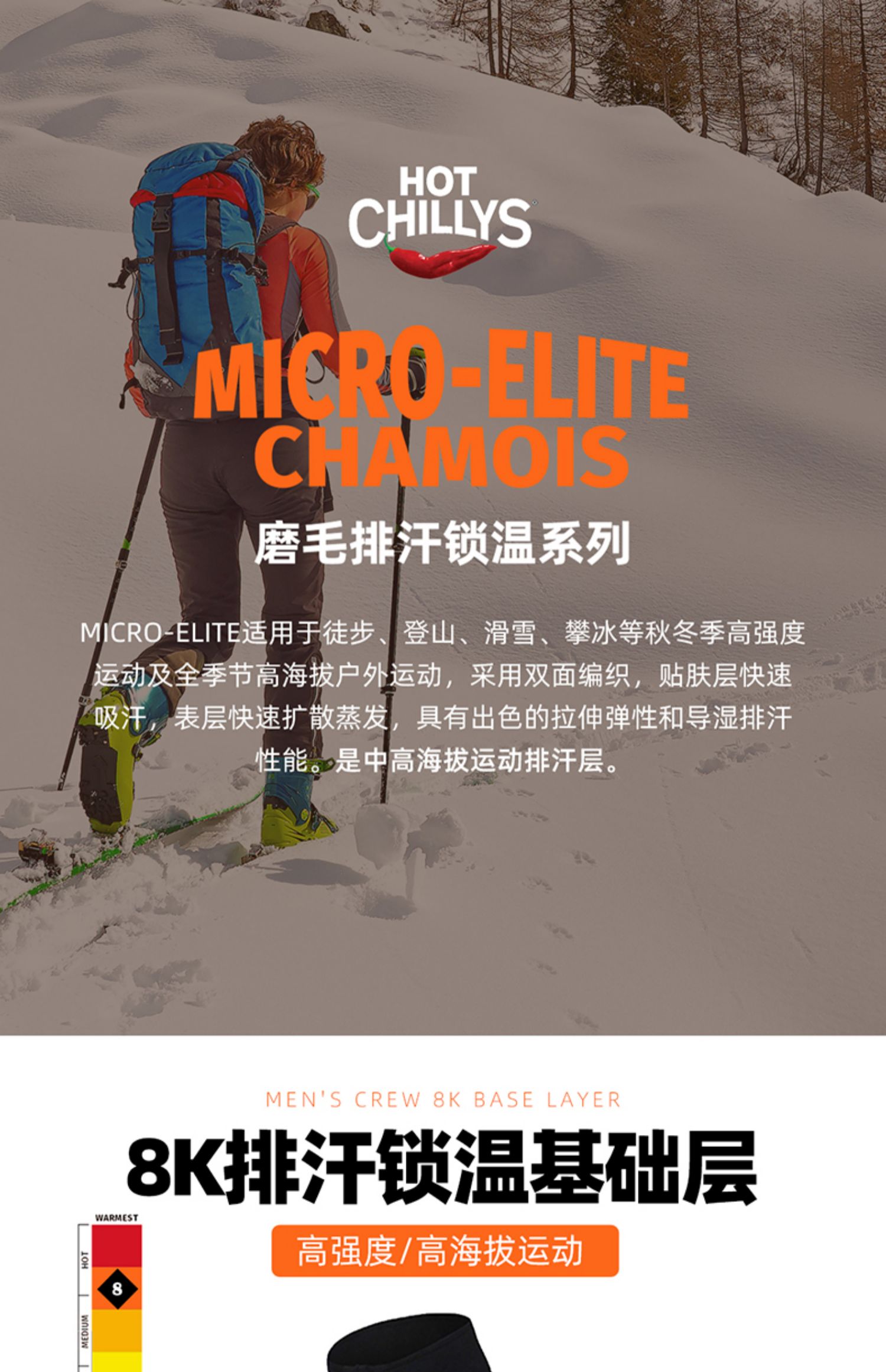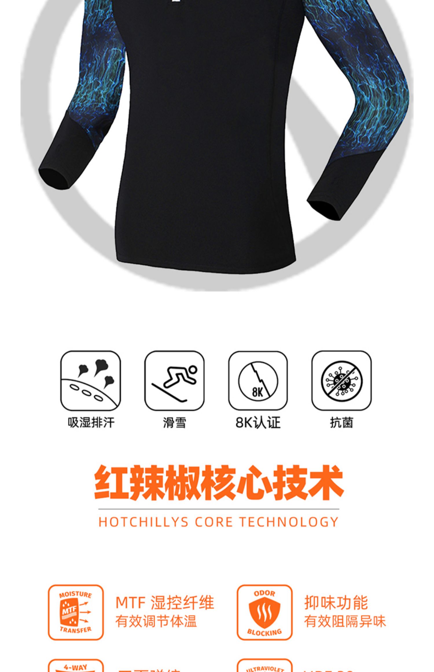 HOTCHILLYS热椒男8K磨毛高领运动内衣抑菌排汗速干上衣HA9931P