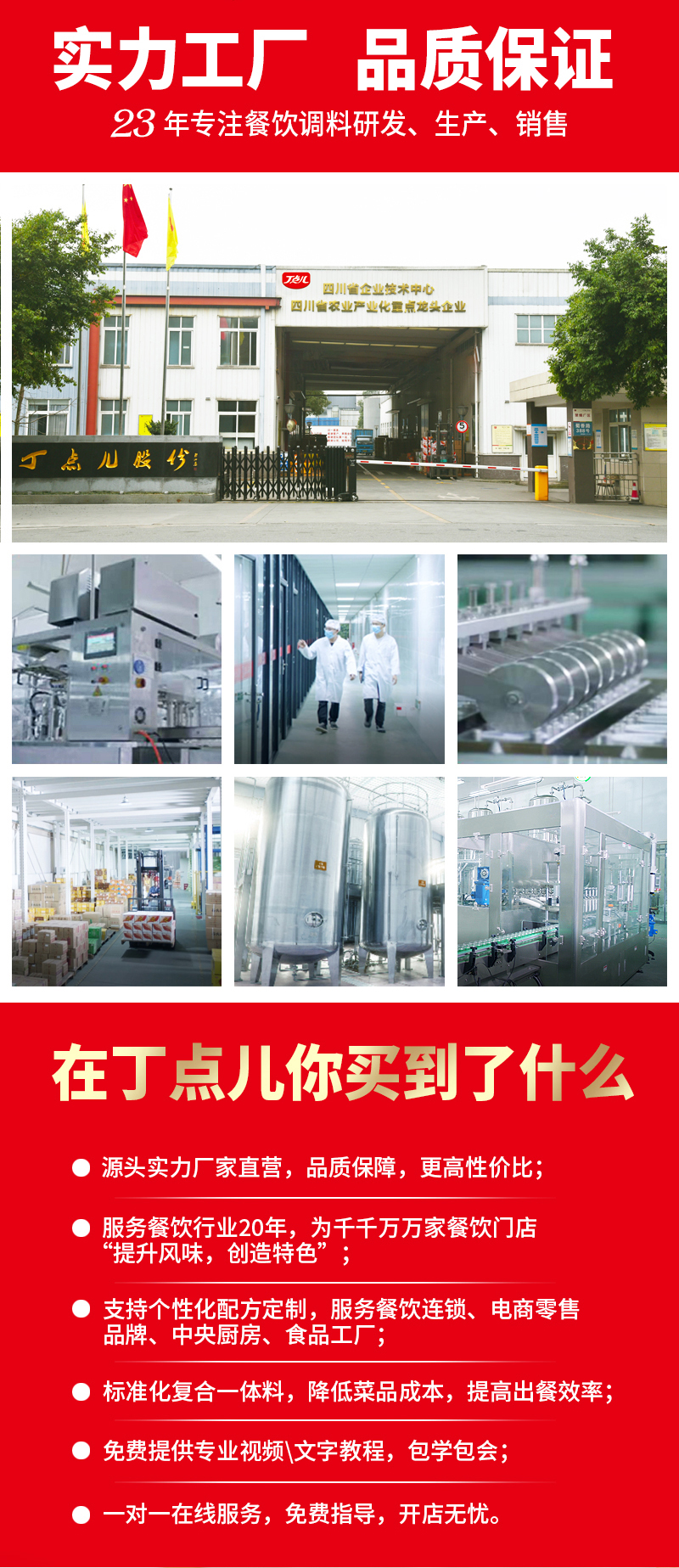 四川丁点儿食品开发股份有限公司,是集川菜调味料研发、生产、销售、服务为一体的现代化企业,专注为餐饮客户提供川菜调味解决方案。公司成立至今,服务了超百万家的餐饮门店以及连锁品牌。