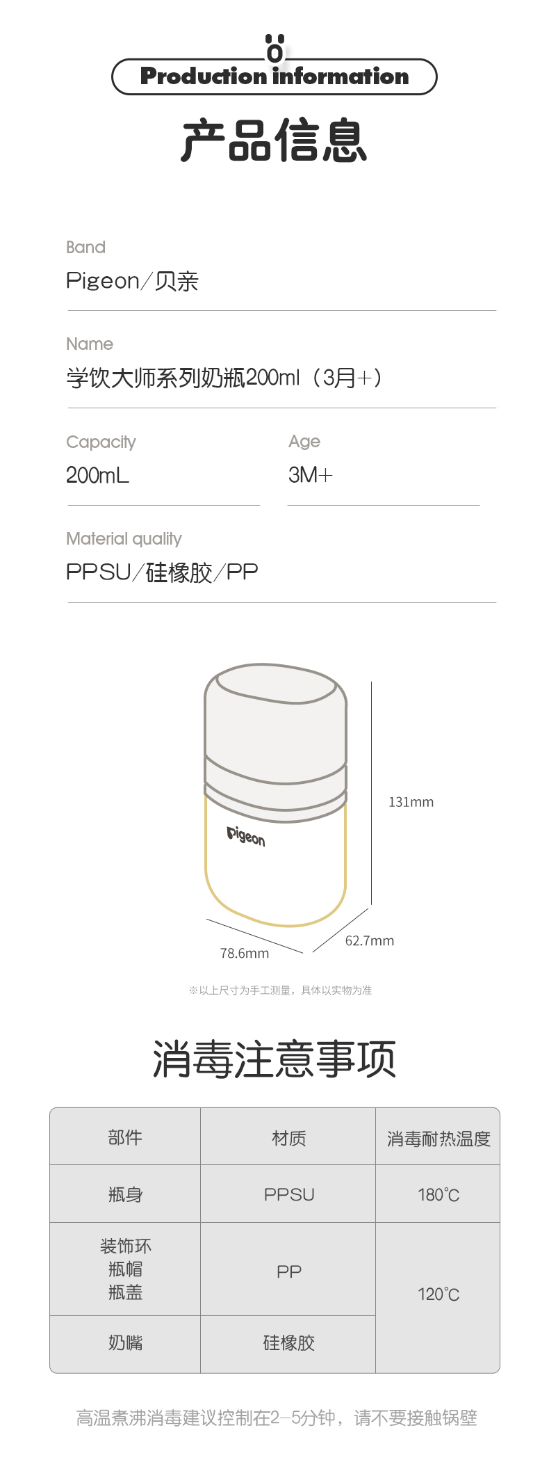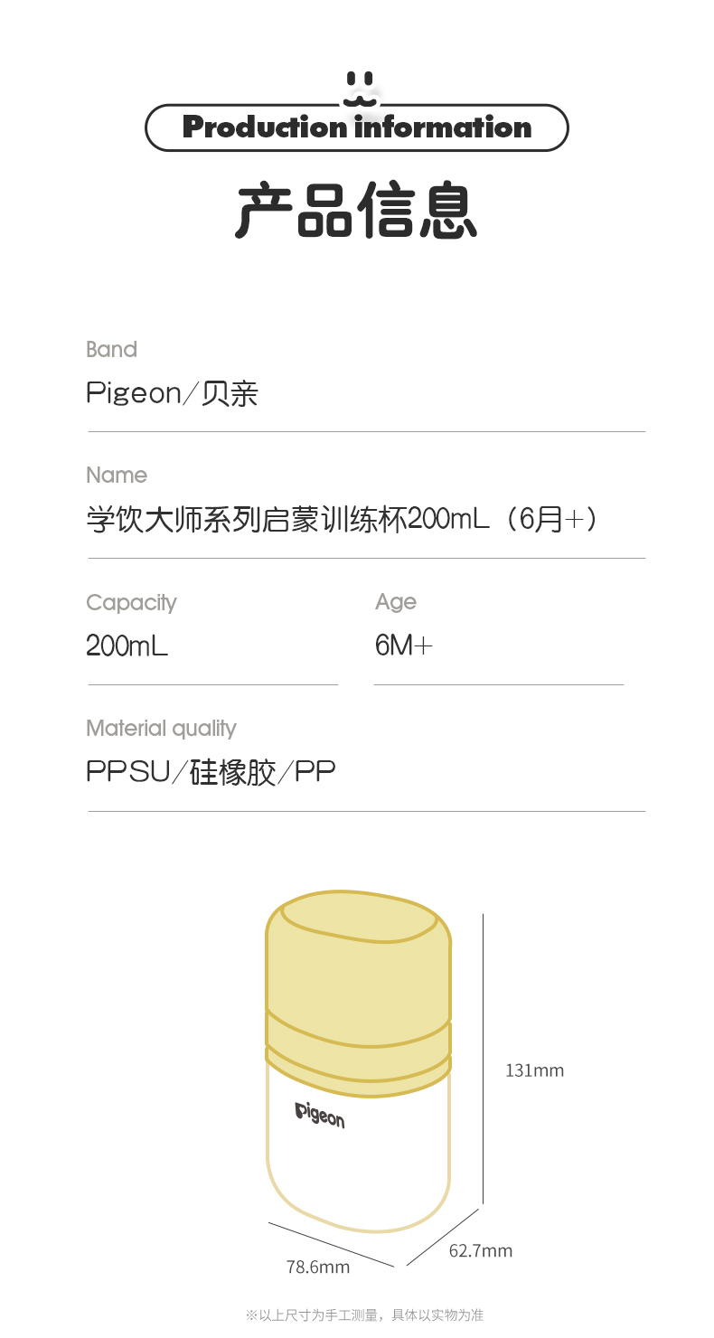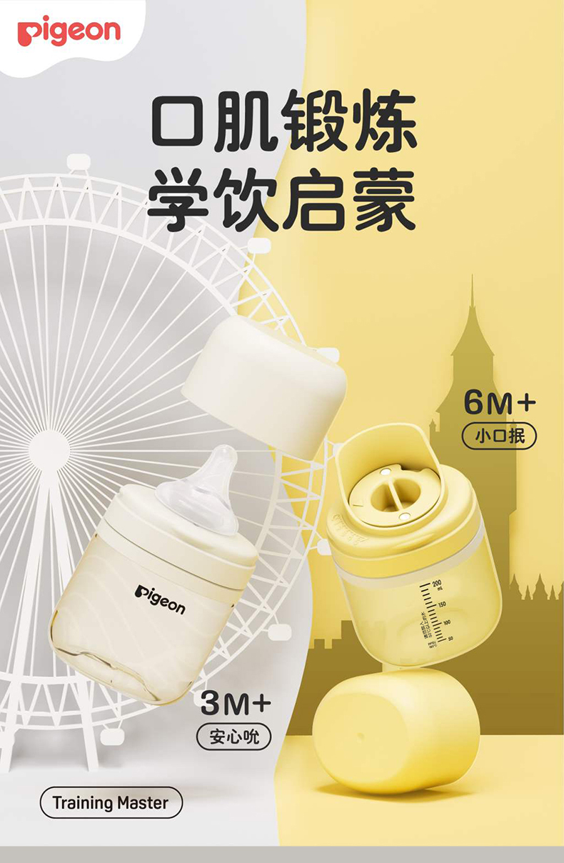【官方自营】PIGEON/贝亲新生儿学饮启蒙套组(奶瓶200mL(3月+)+启蒙训练杯200mL(6月+)+启衔奶嘴S号-1只装)