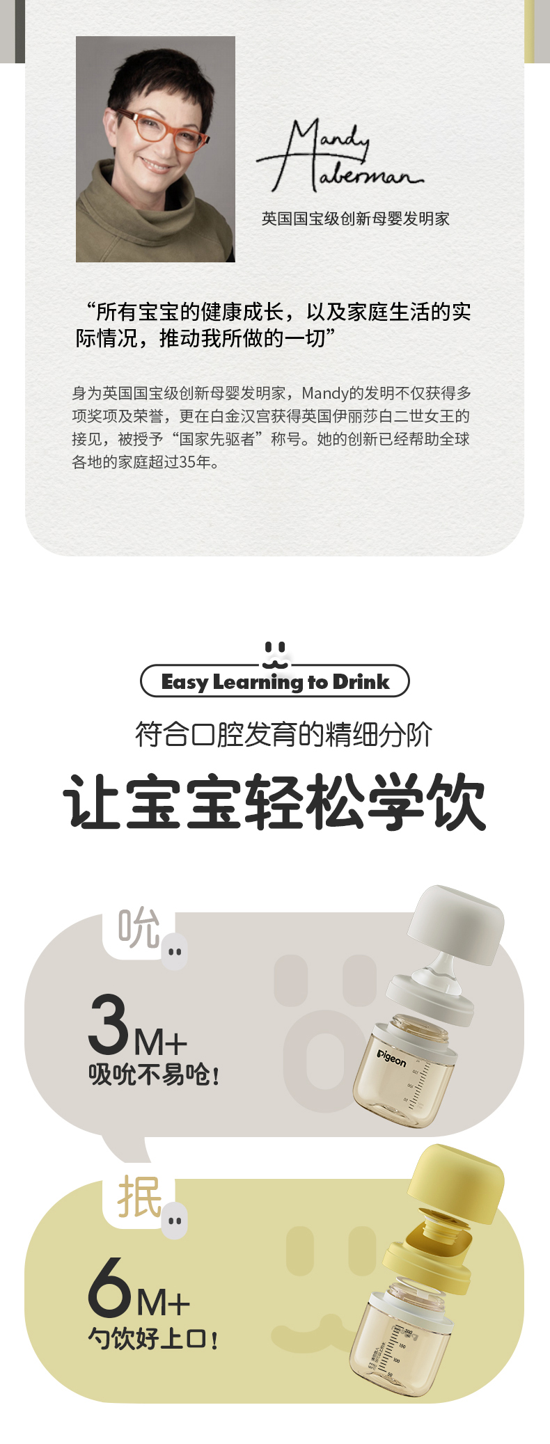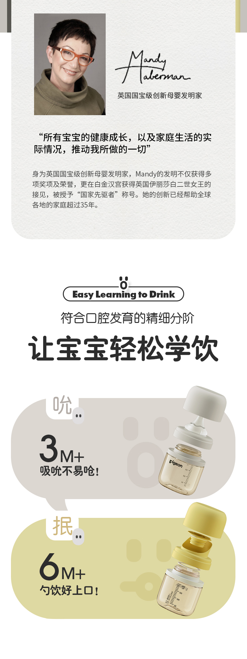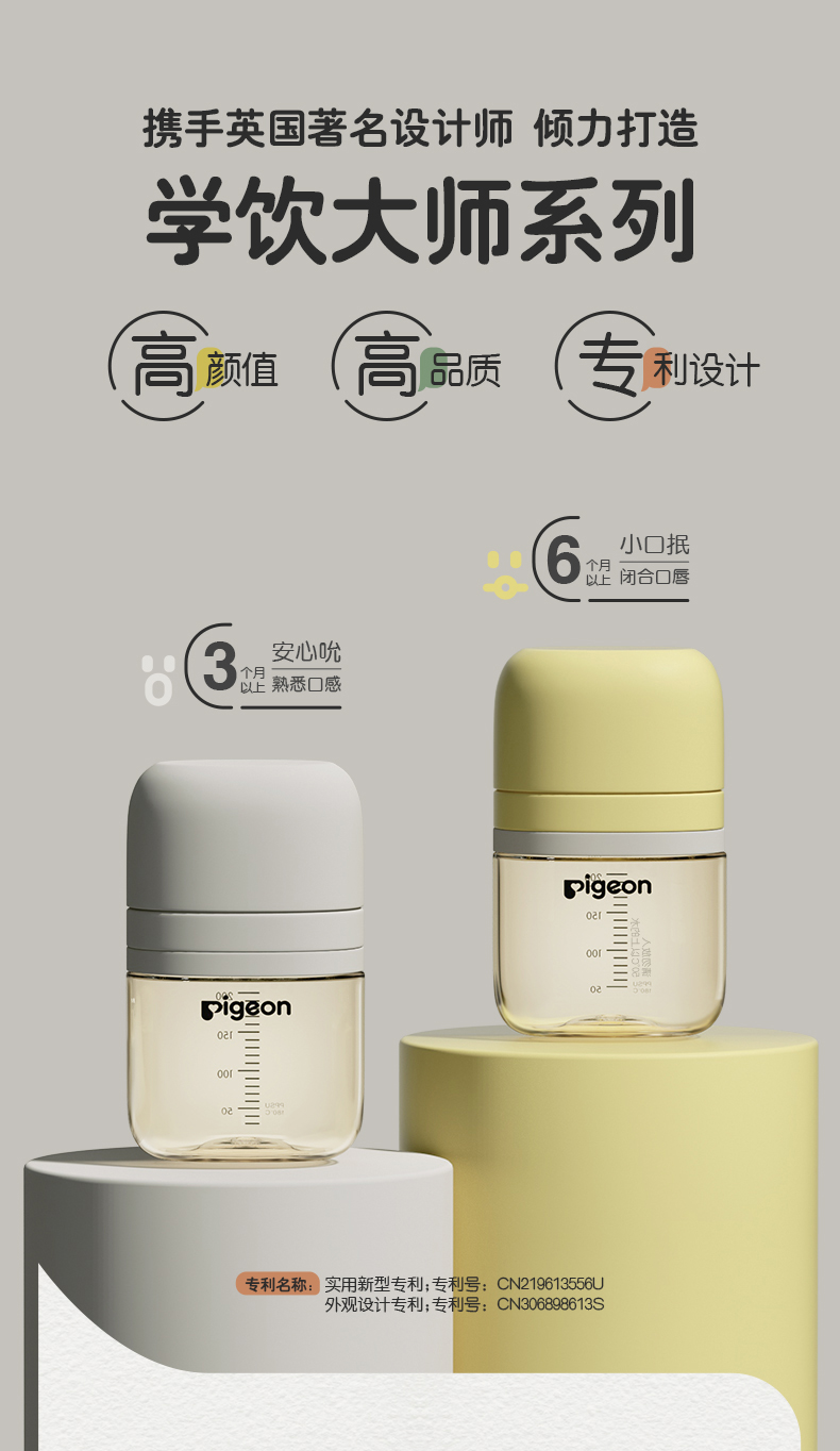 【官方自营】PIGEON/贝亲新生儿学饮启蒙套组(奶瓶200mL(3月+)+启蒙训练杯200mL(6月+)+启衔奶嘴S号-1只装)