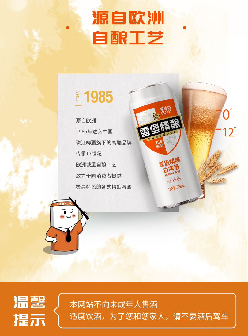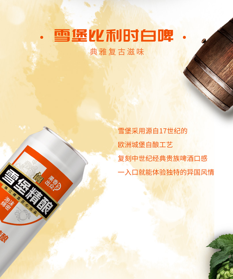 「官方正品」珠江啤酒雪堡精酿白啤酒500ml*12罐