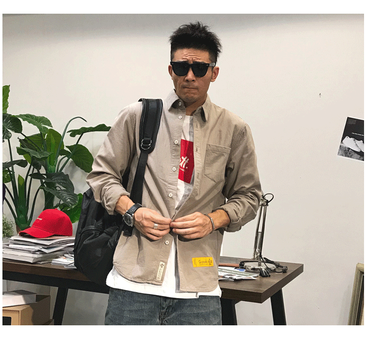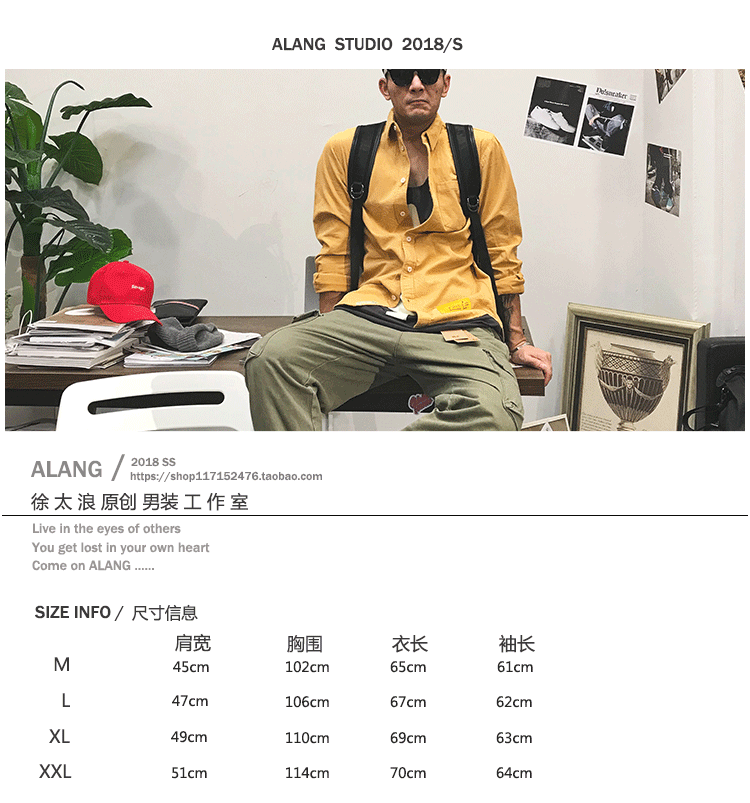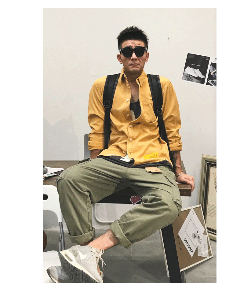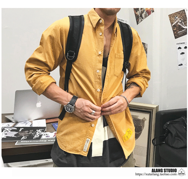 徐太浪余文乐长袖衬衫男春秋潮牌男装复古工装高级感黄色衬衣外套