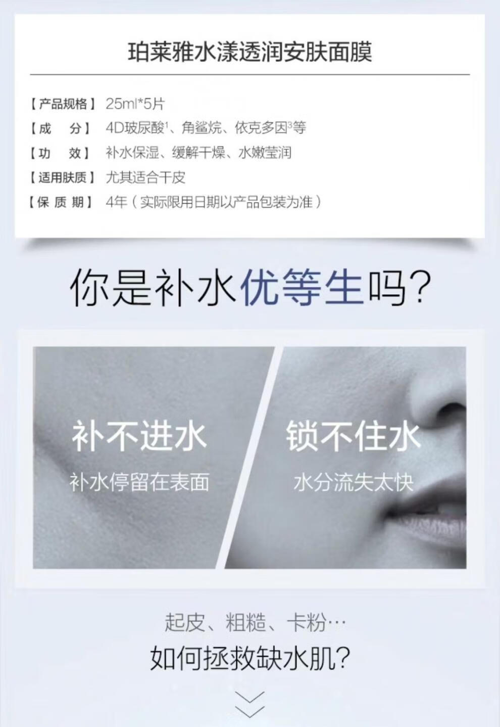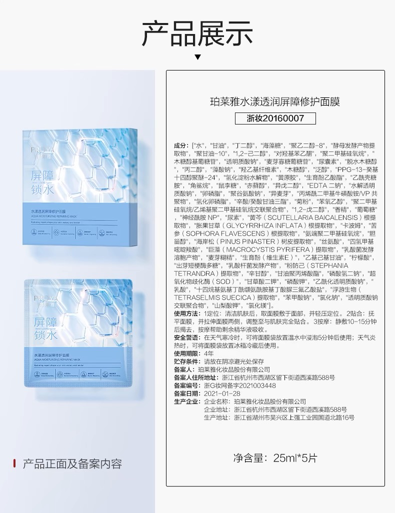 珀莱雅 水漾透润安肤面膜5片/盒(水屏障面膜)【买一送一,到手2盒】