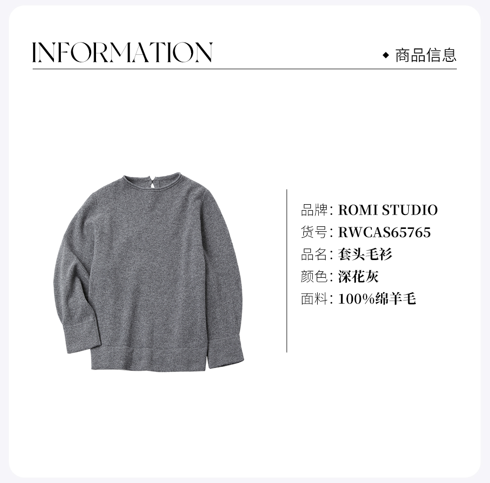 ROMI STUDIO“极简老钱”100%美丽诺绵羊毛轻舒套头毛衣 RWCAS65765