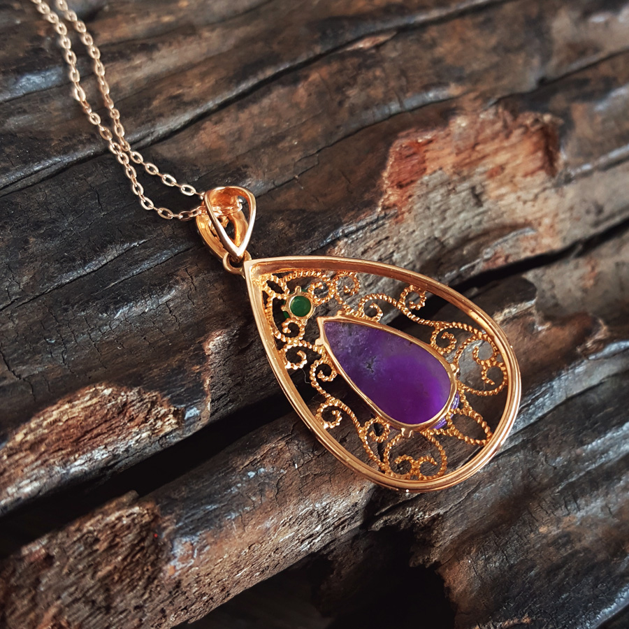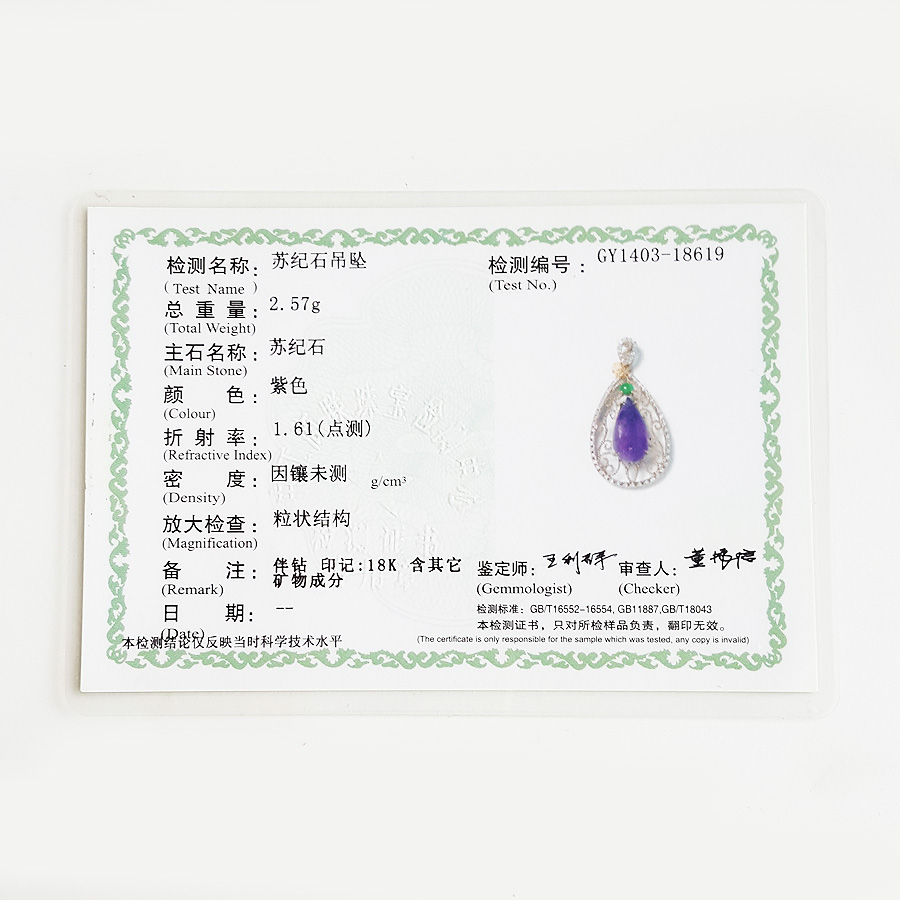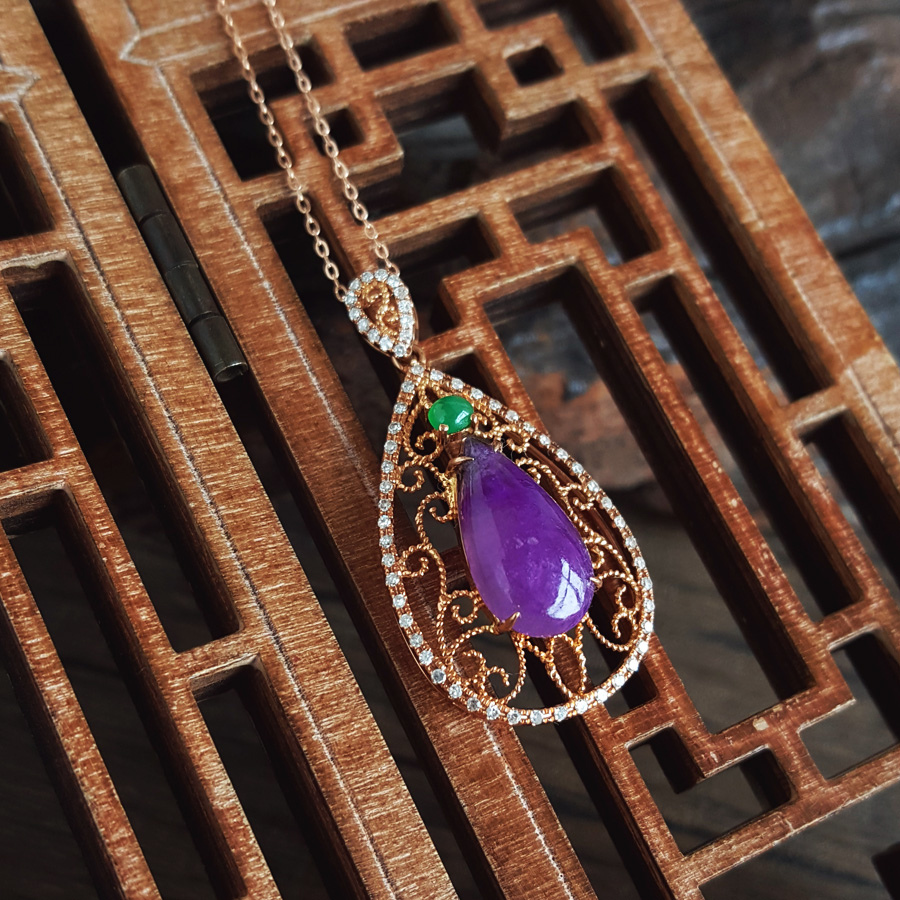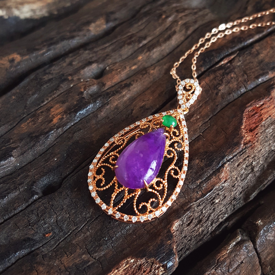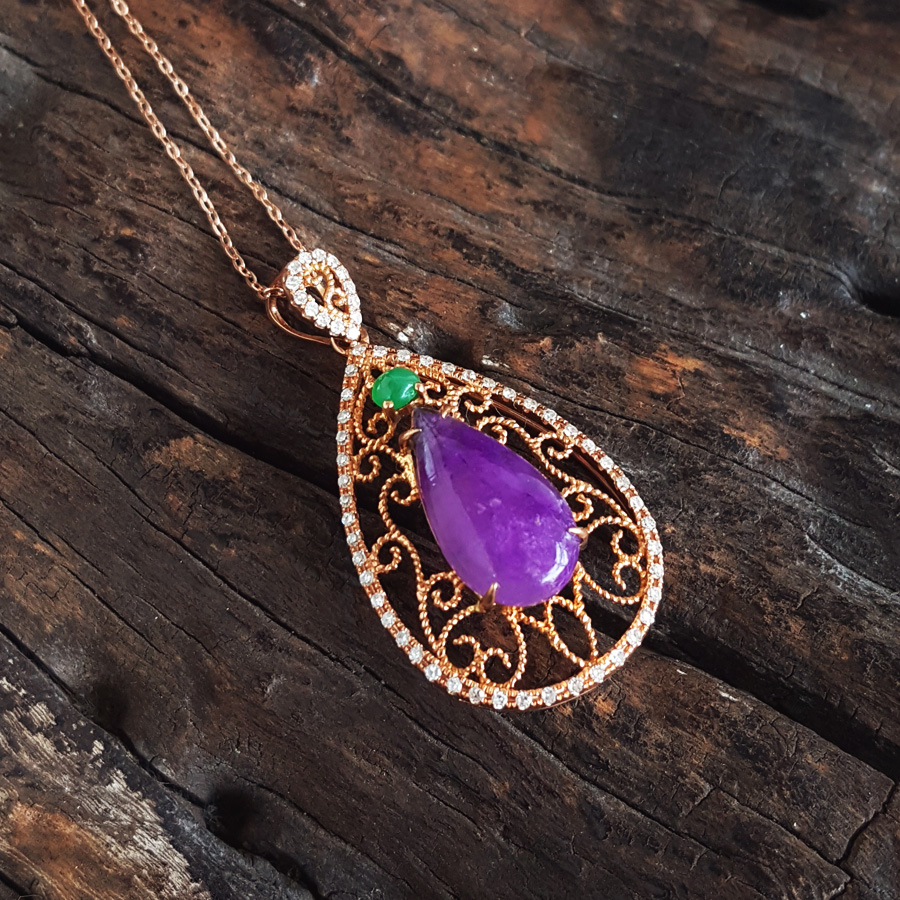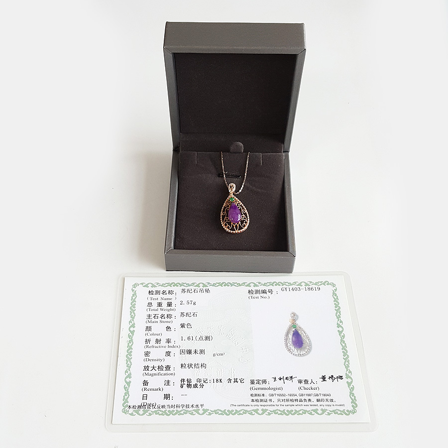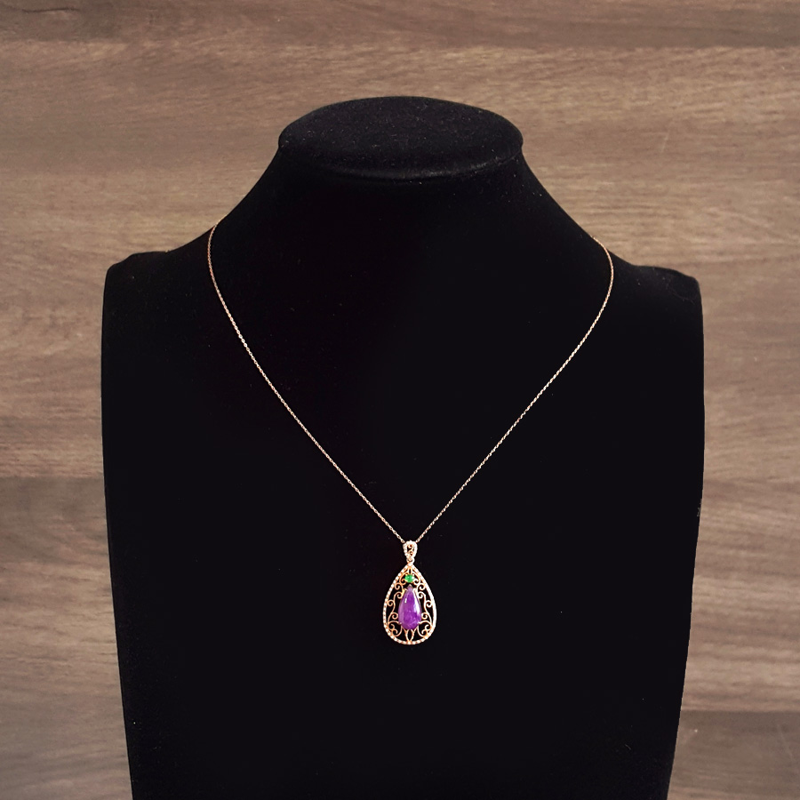 名称 | AU750玫瑰金镶钻镶天然细腻水滴型紫罗兰舒俱来吊坠项链 |