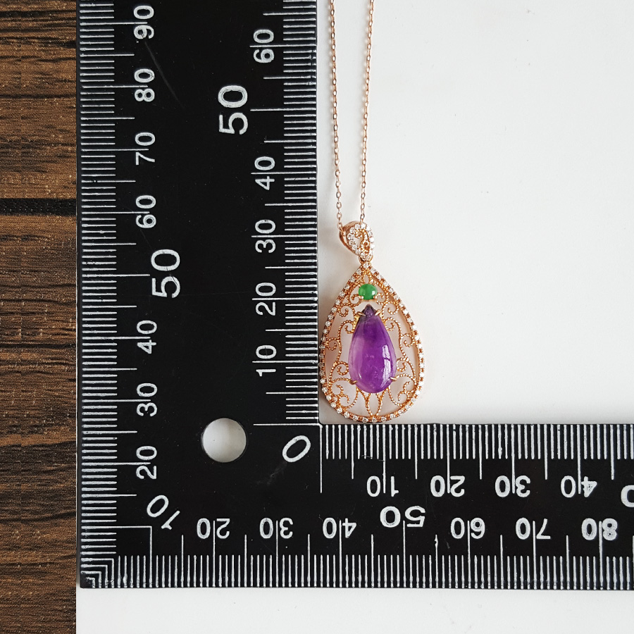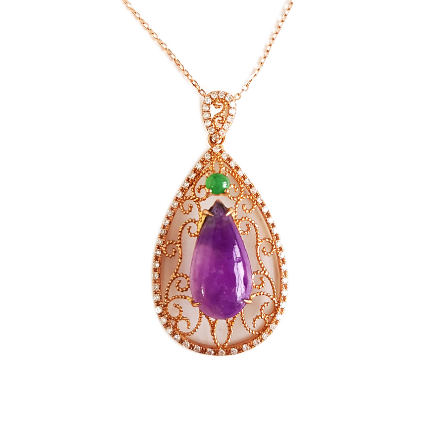 AU750玫瑰金镶钻镶天然细腻水滴型紫罗兰舒俱来吊坠项链32.6*16.7*8.2MM(皆取最大值)链长:45CM(长度可调节)120126XY05