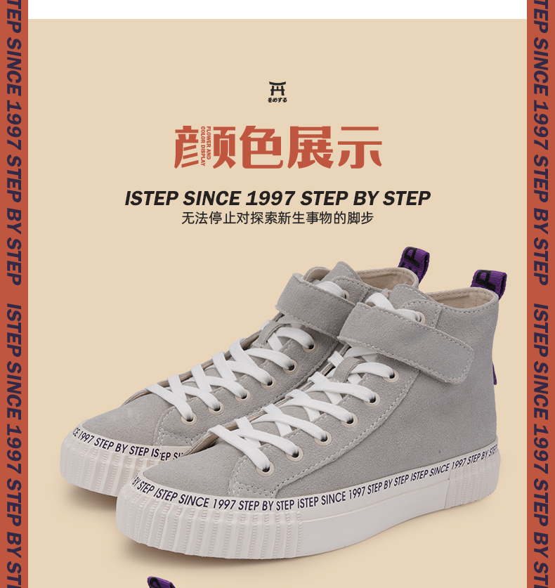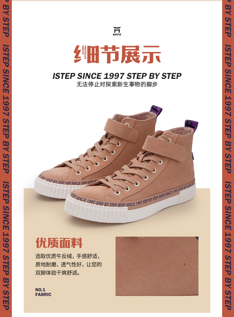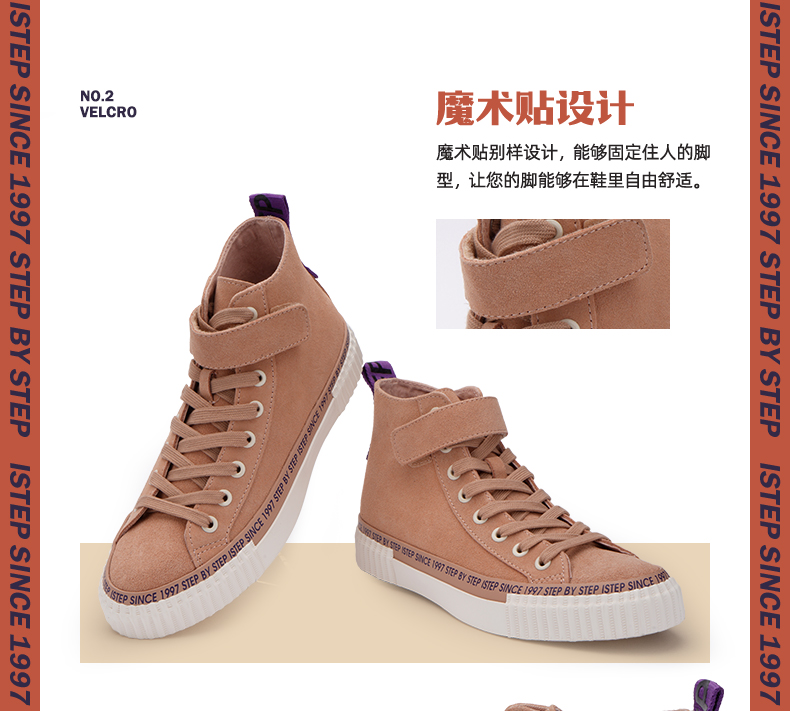 ISTEP高帮反毛皮休闲鞋免系鞋带休闲鞋 商品图11
