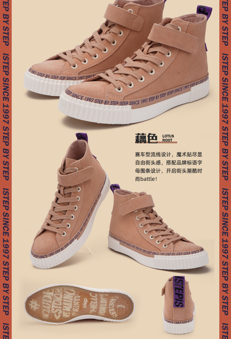 ISTEP高帮反毛皮休闲鞋免系鞋带休闲鞋