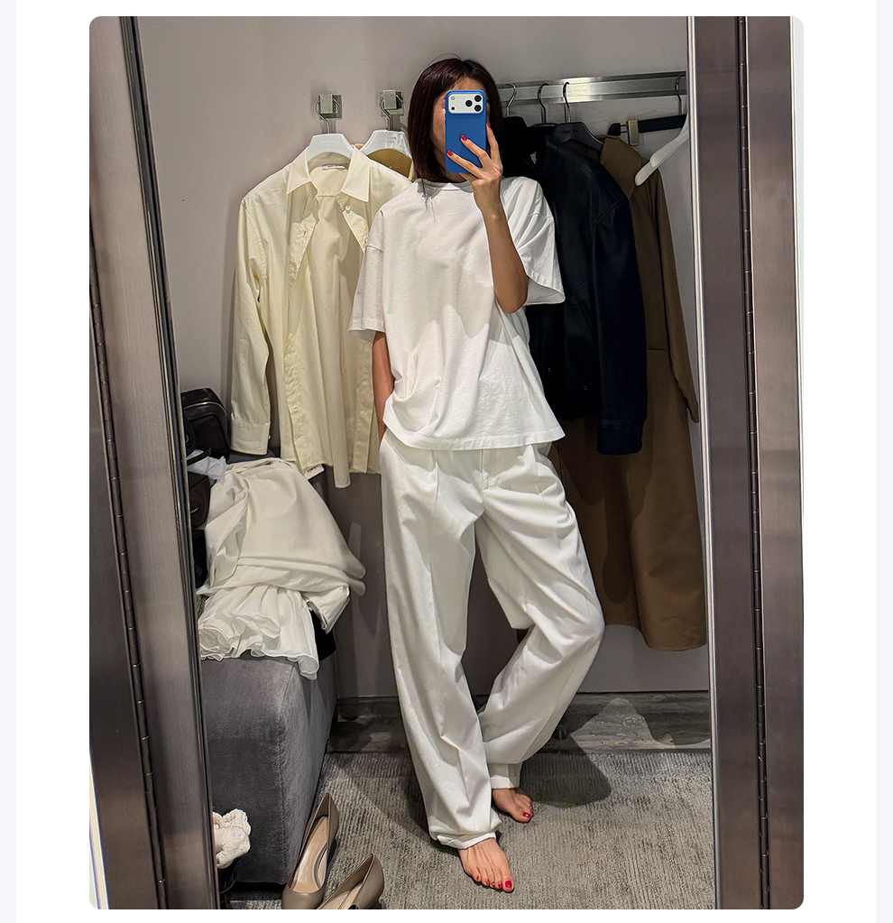ROMI STUDIO100%棉砂洗加软宽松卷边铝丝打底内搭背心&短袖T恤RWCSSG7365