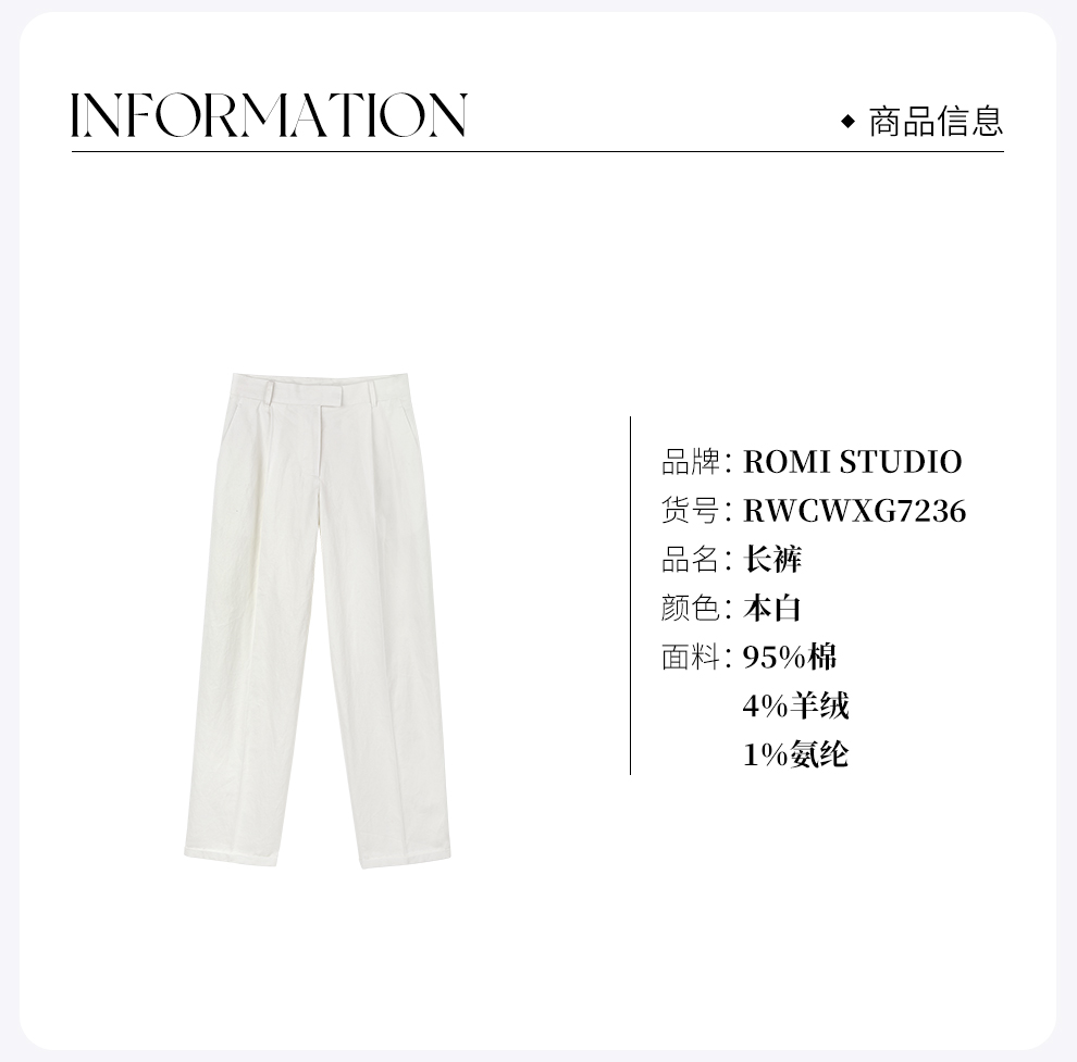ROMI STUDIO“轻盈自在”羊绒棉碳磨斜纹直身西装裤RWCWXG7236