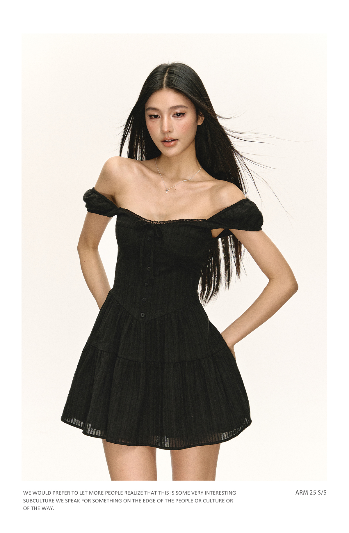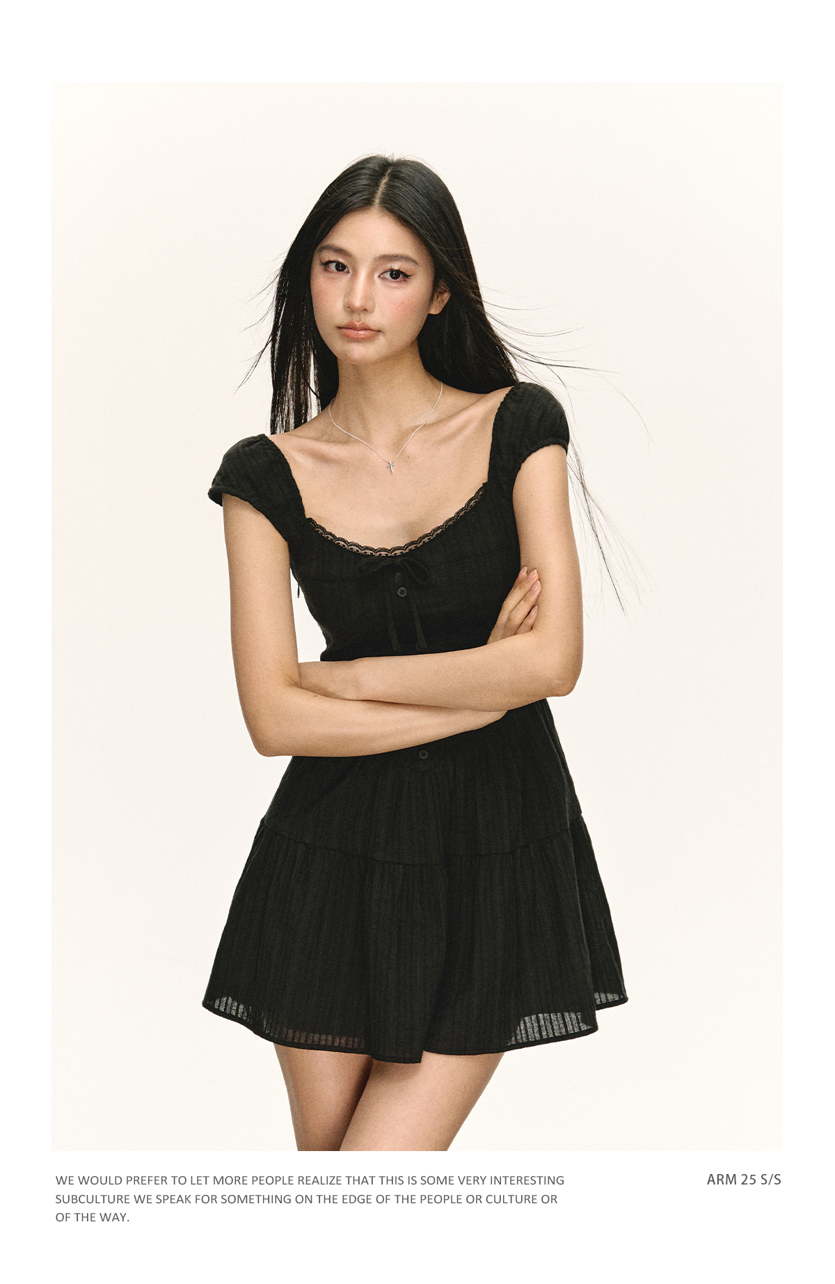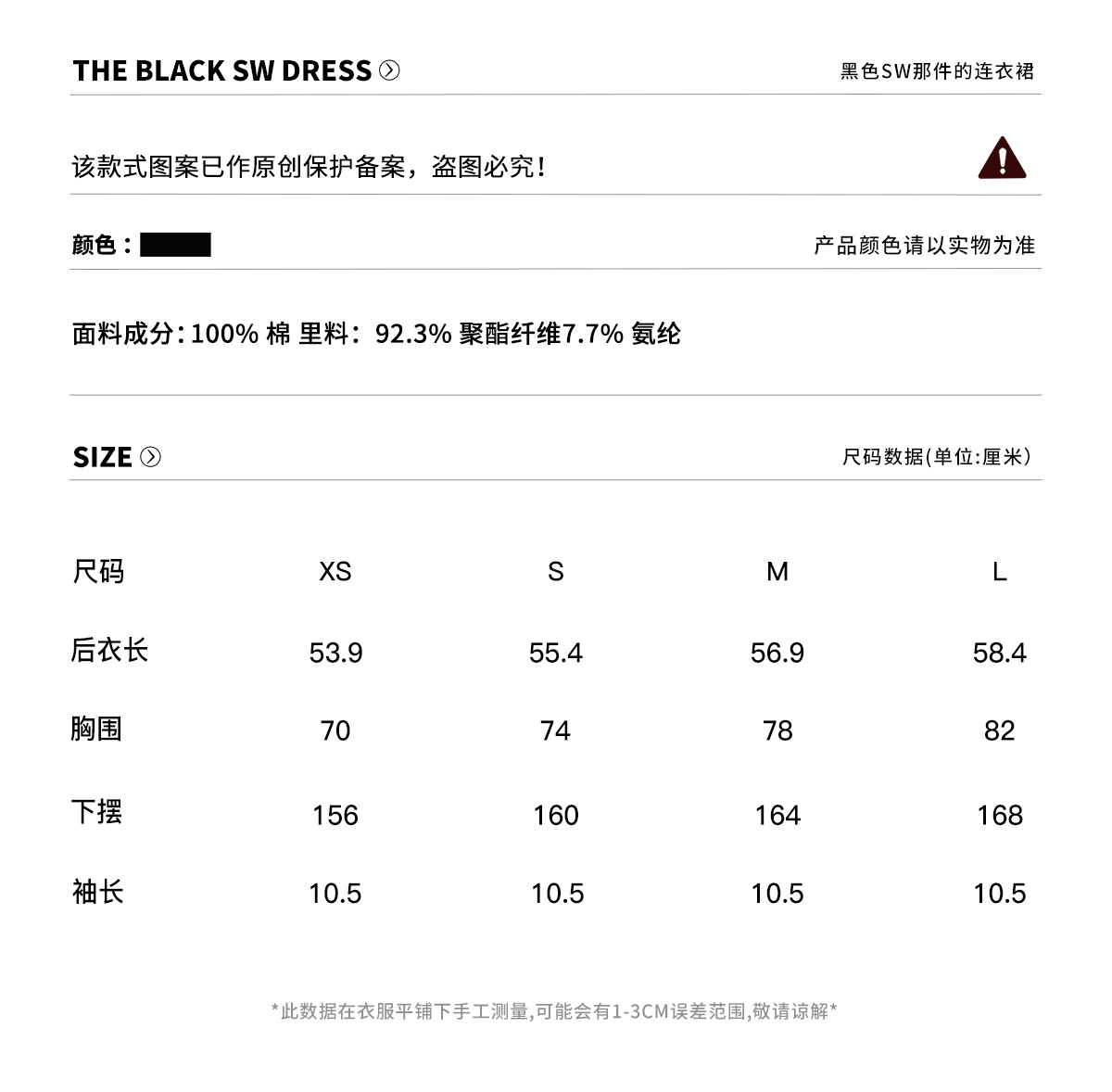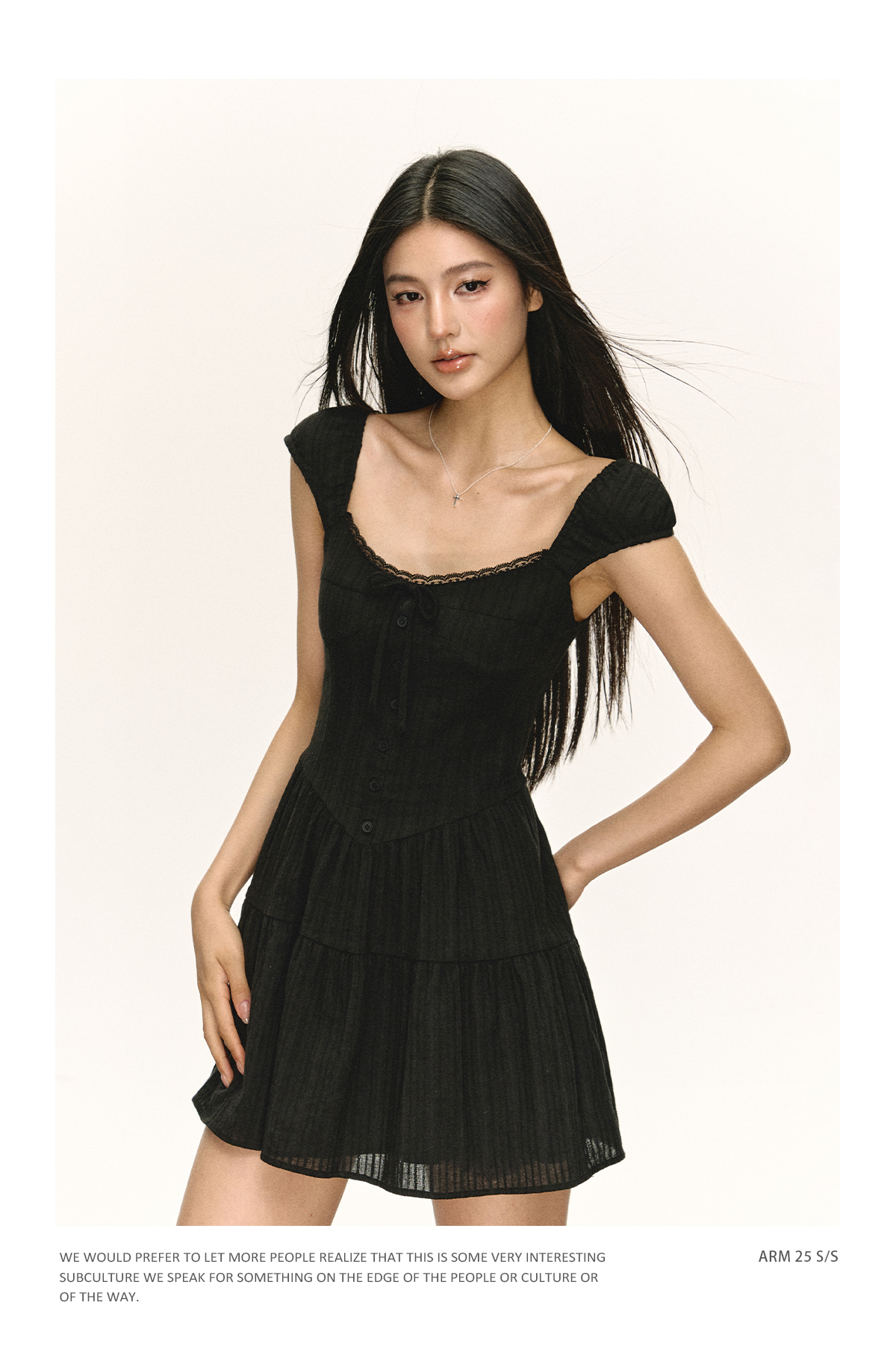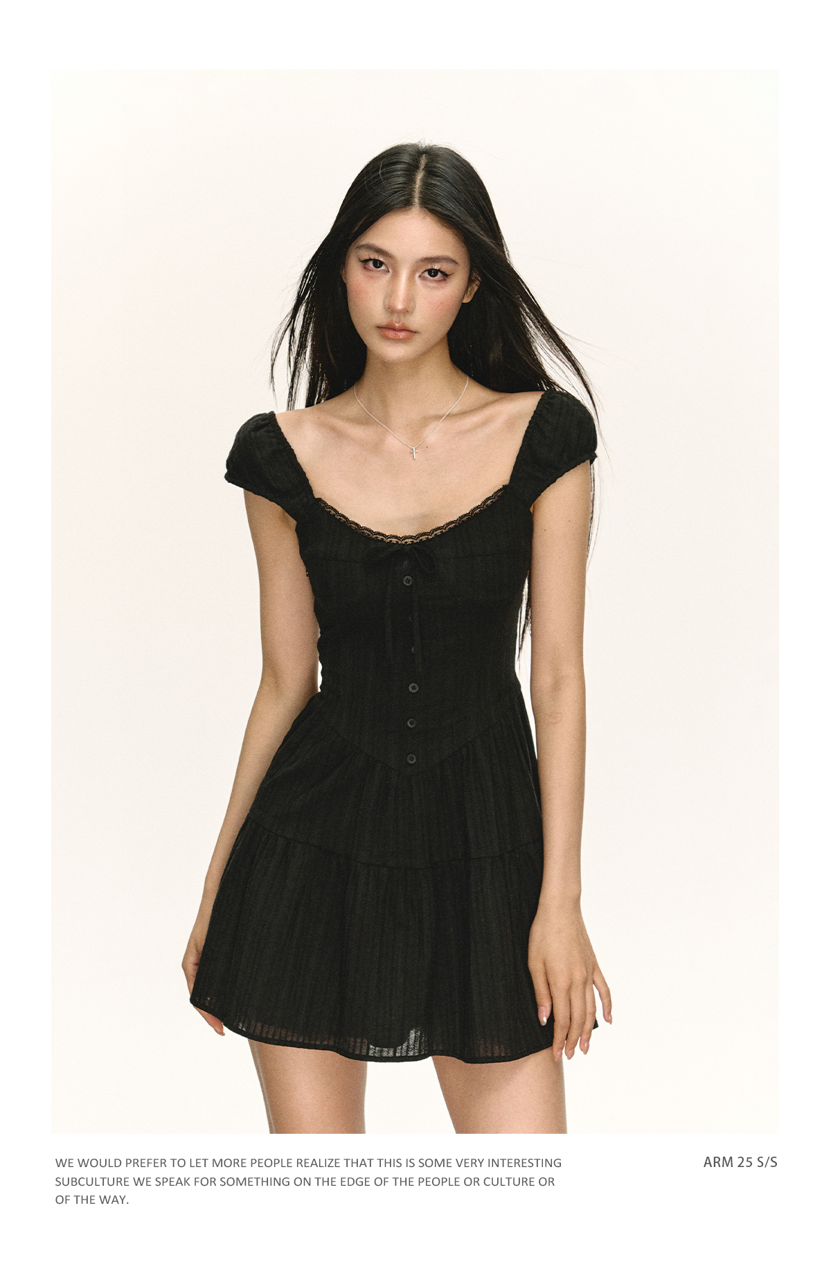 Ariseism 设计感法式方领短袖连衣裙女夏季新款收腰小黑裙蛋糕裙子