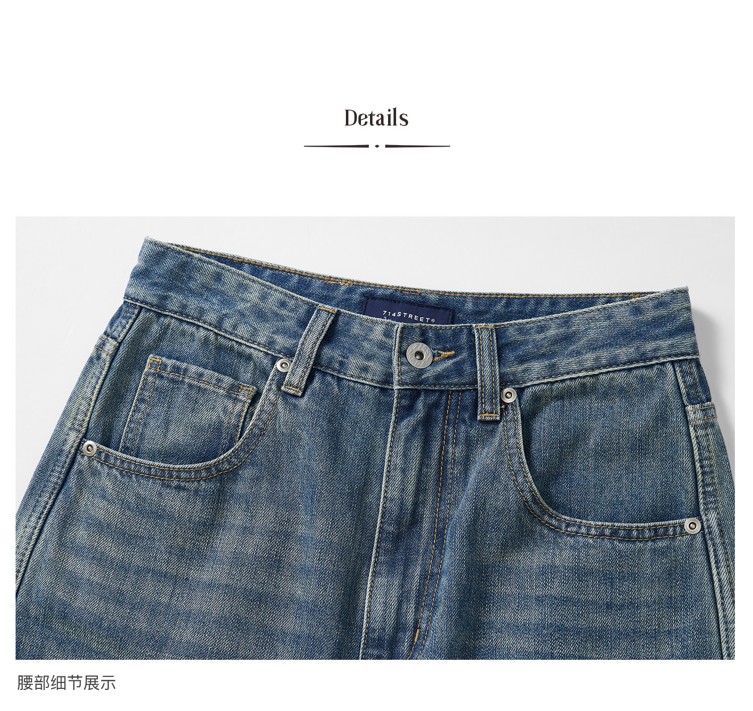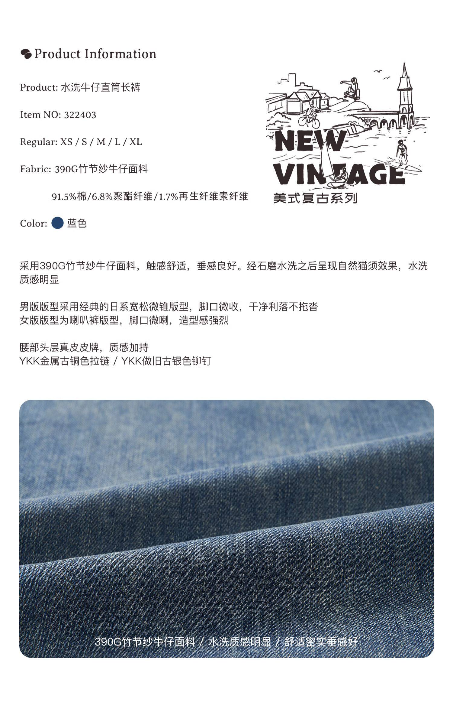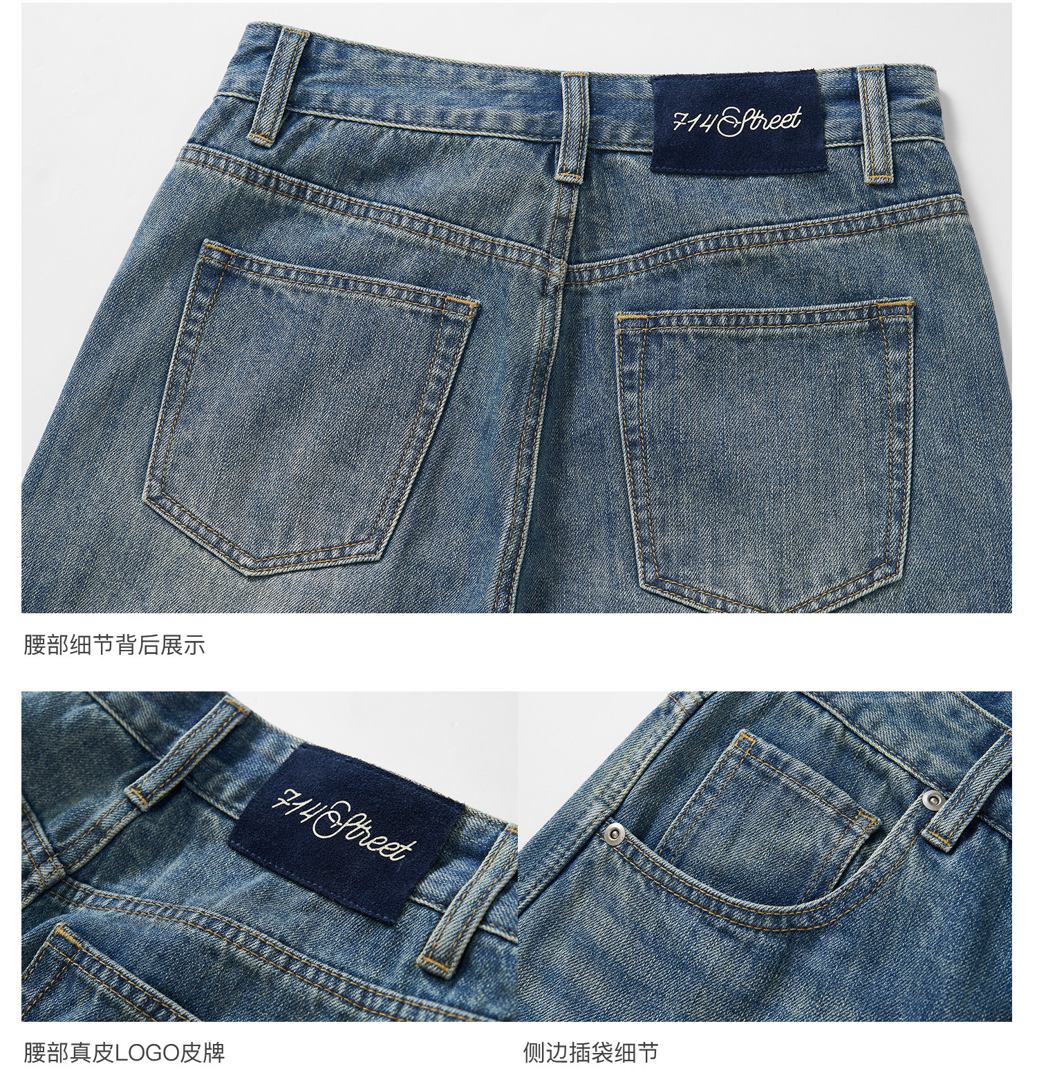 714street直筒牛仔裤男女秋冬宽松阔腿裤水洗休闲长裤大码裤子潮
