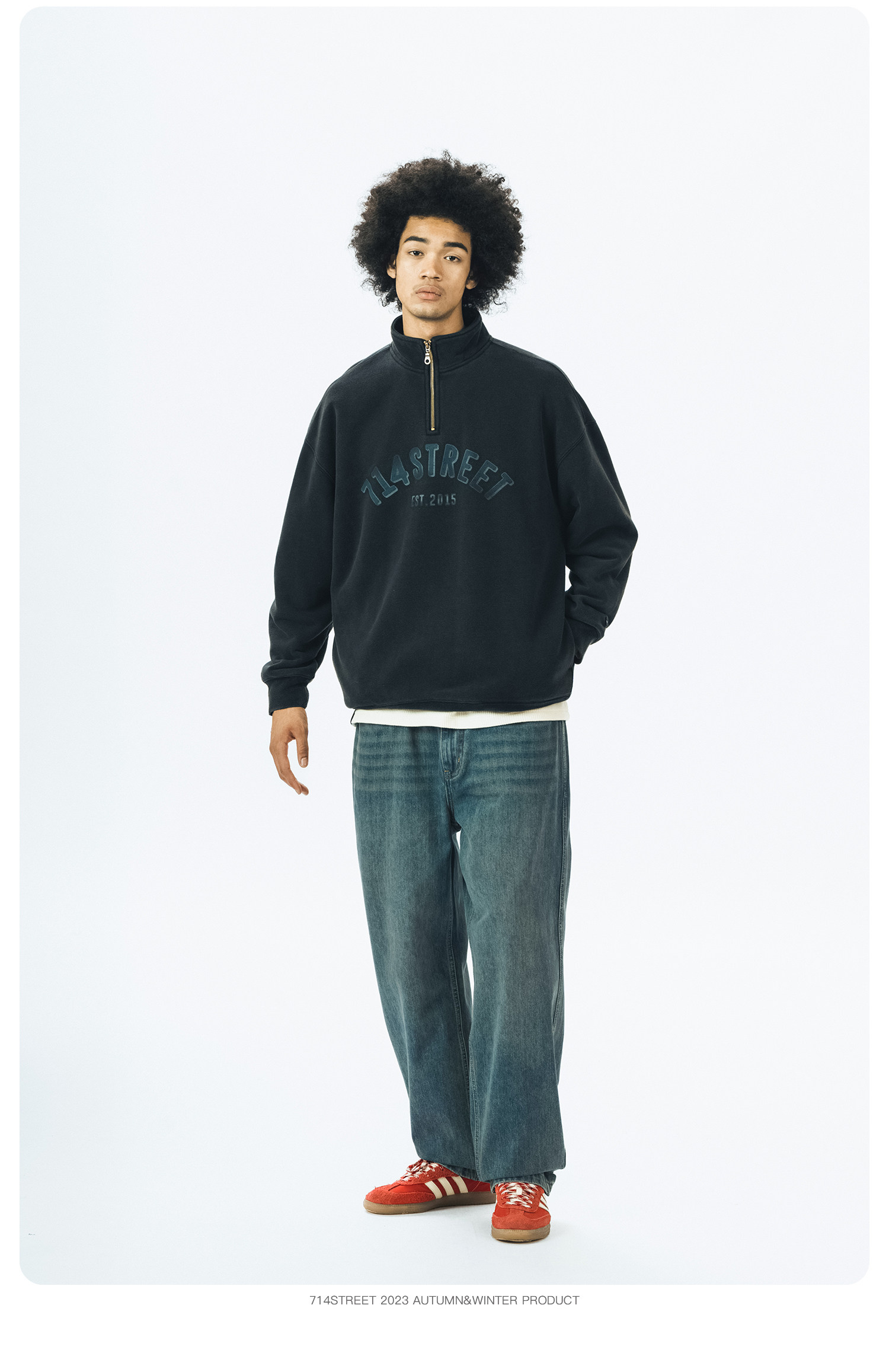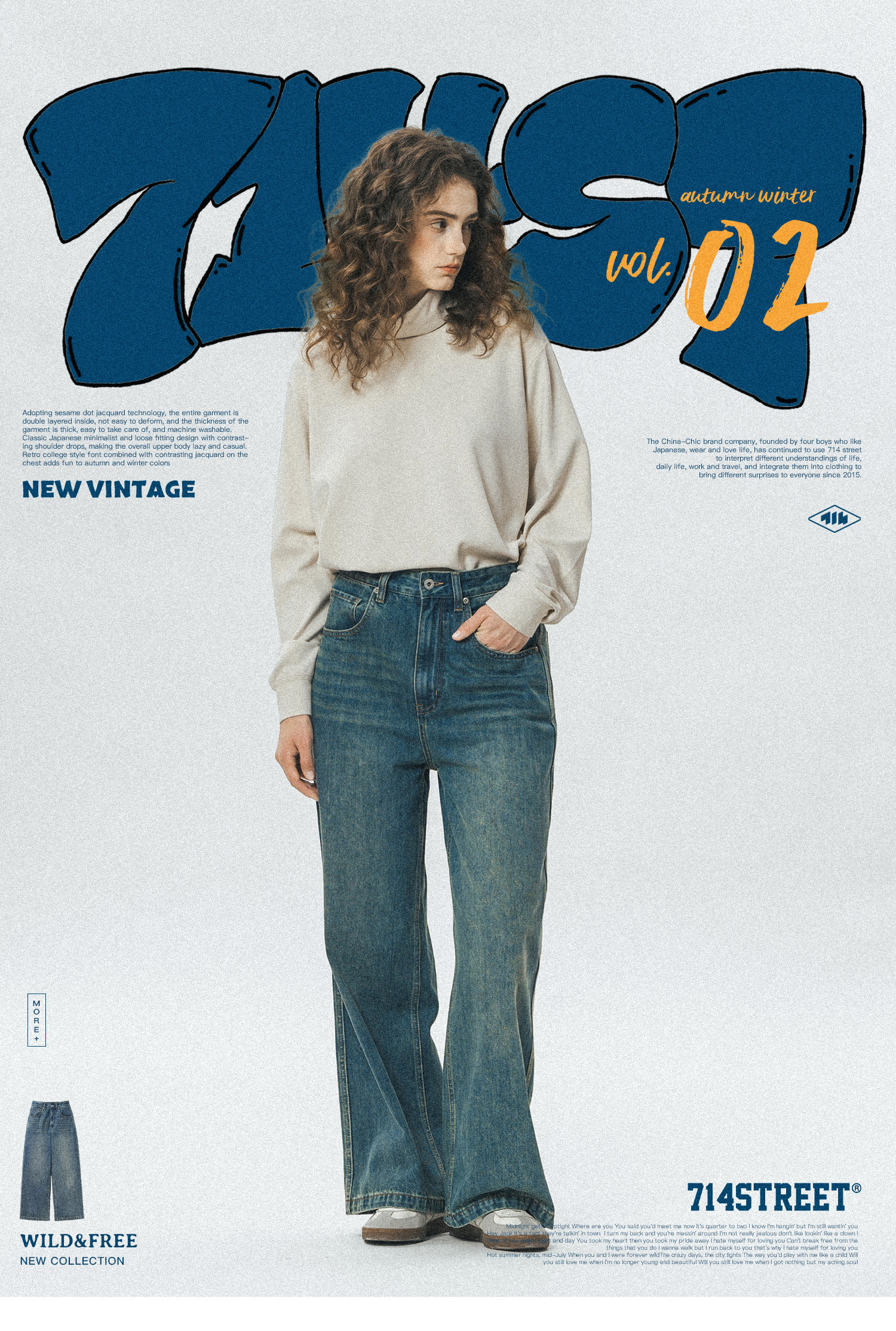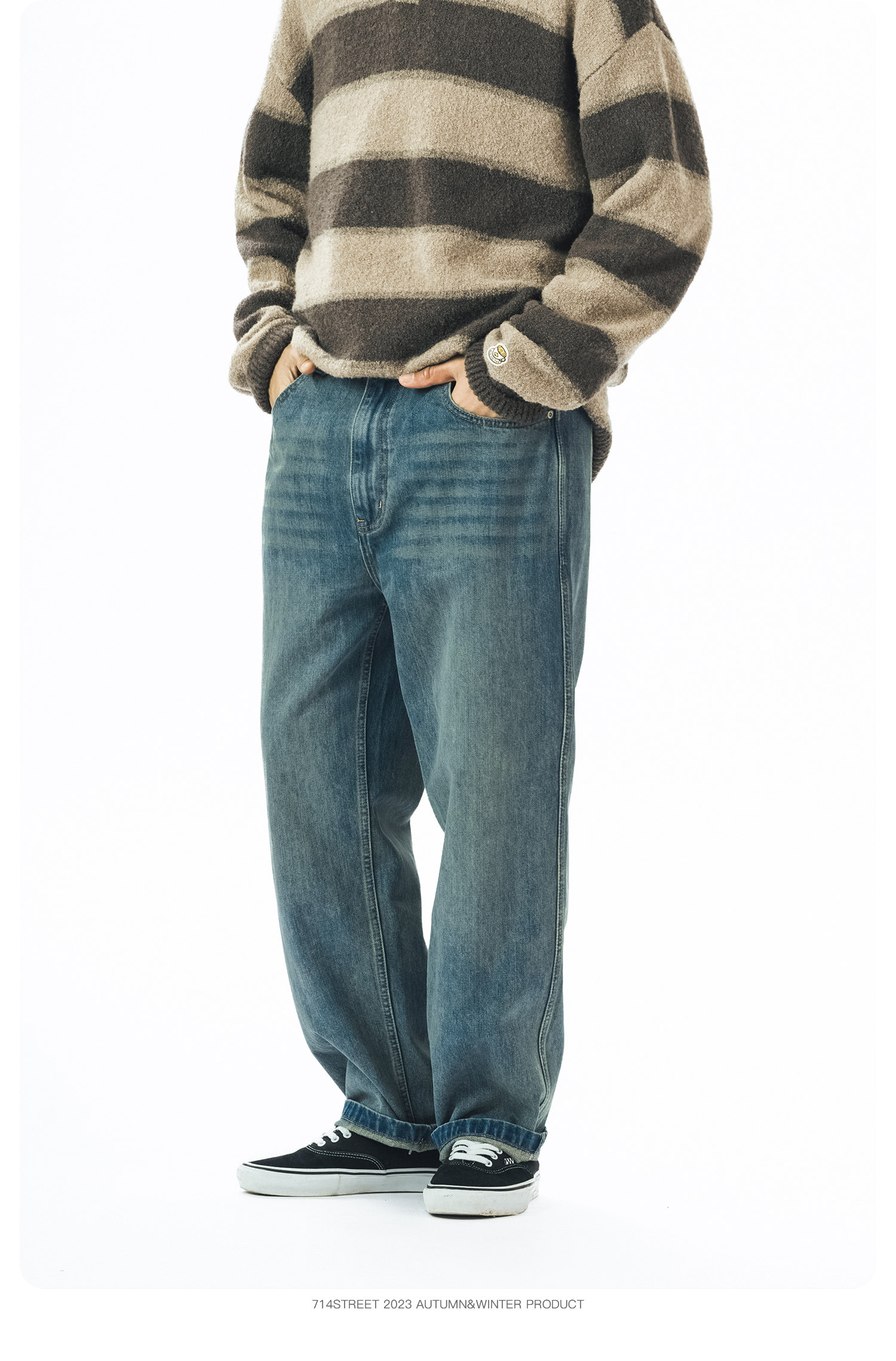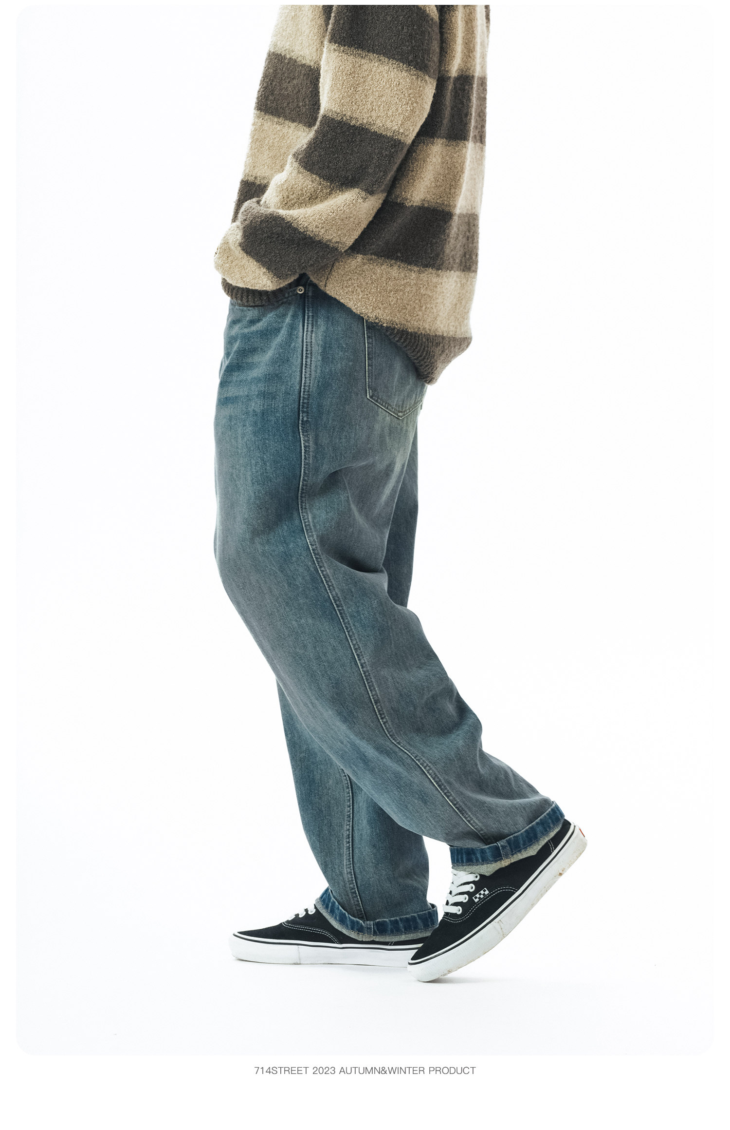 714street直筒牛仔裤男女秋冬宽松阔腿裤水洗休闲长裤大码裤子潮