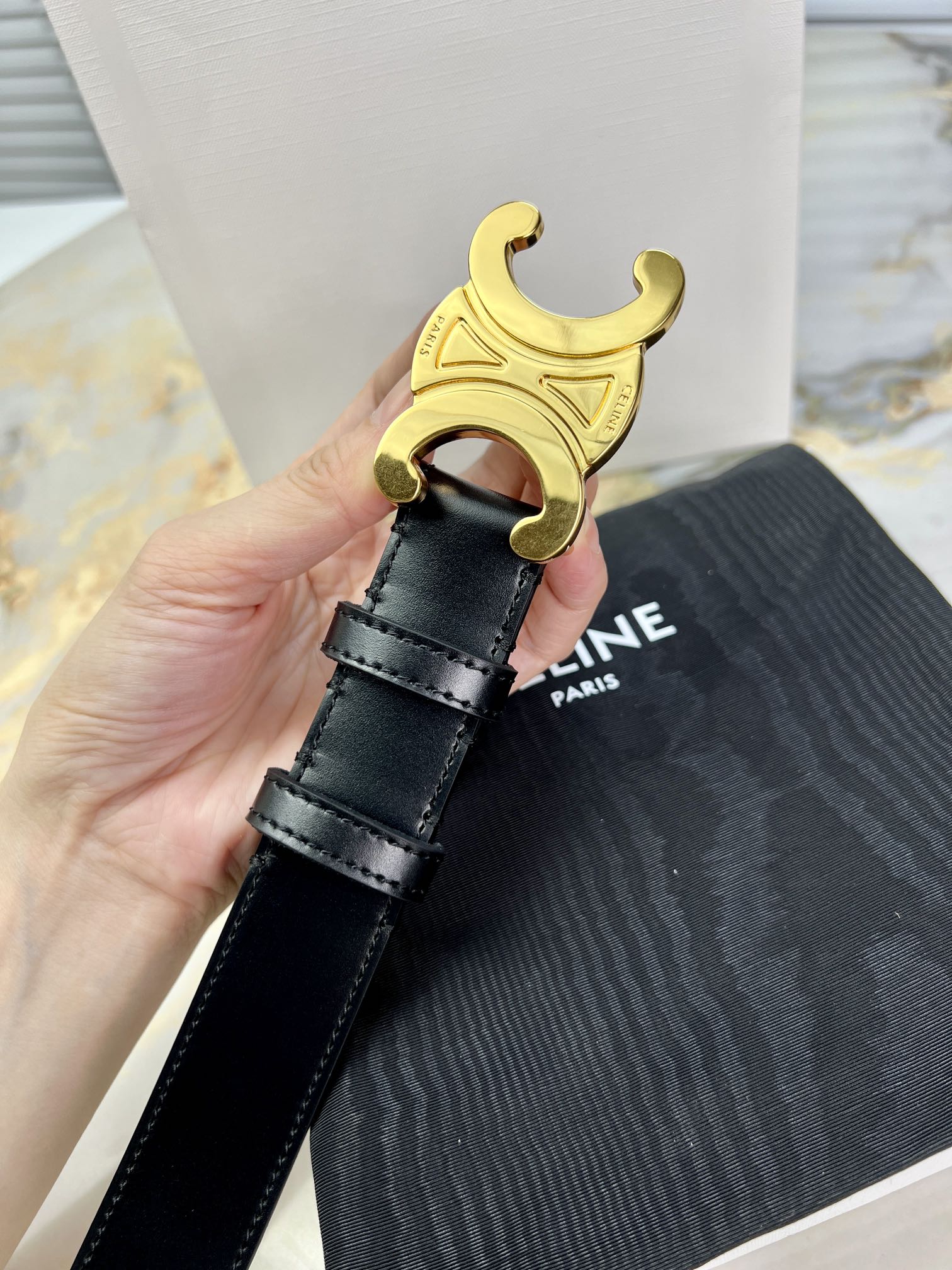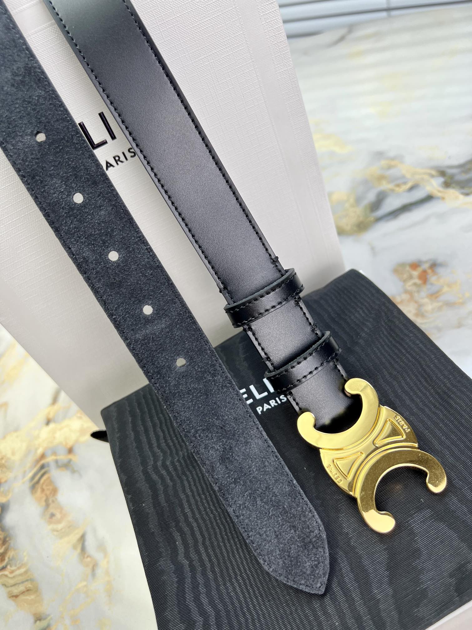 赛家 新款女士腰带,又名“凯旋门”👍,简单时尚低调,经典扣配搭小牛皮🐂背面麂皮,时尚好看,🎁配专柜全套包装,宽:3cm,