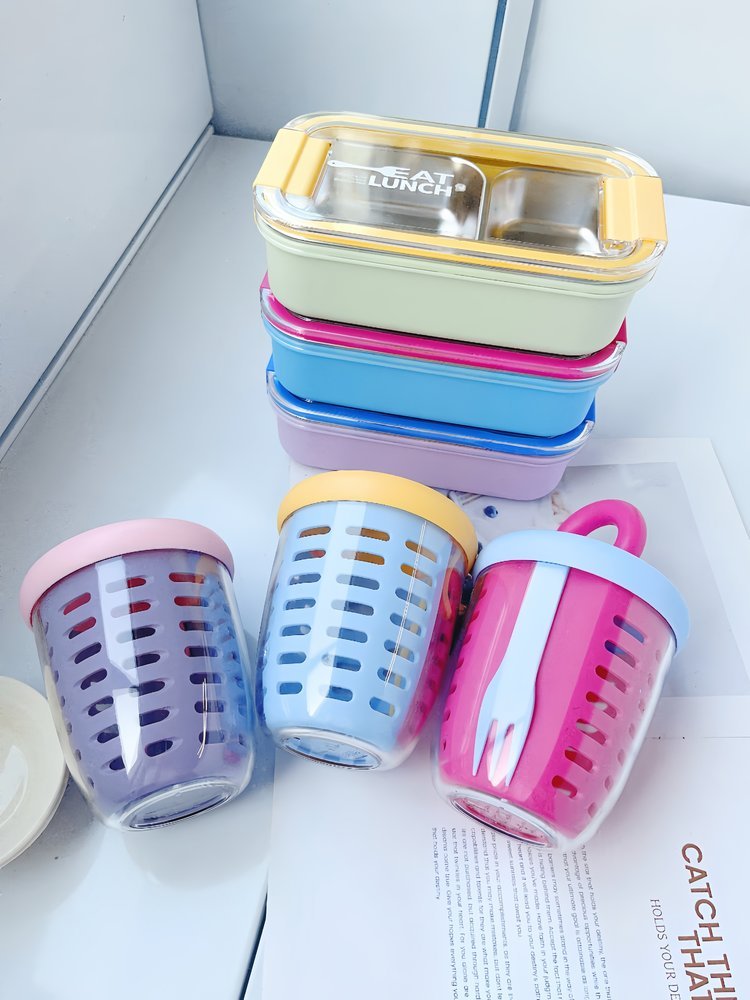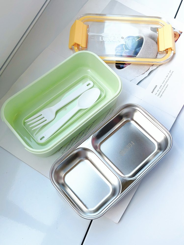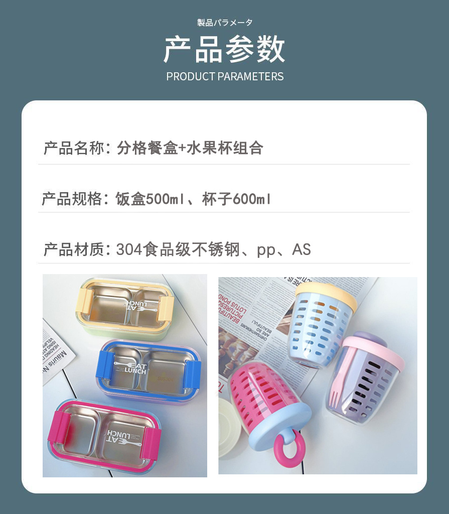 【品名】易铂yispot304不锈钢分格餐盒+水果杯组合