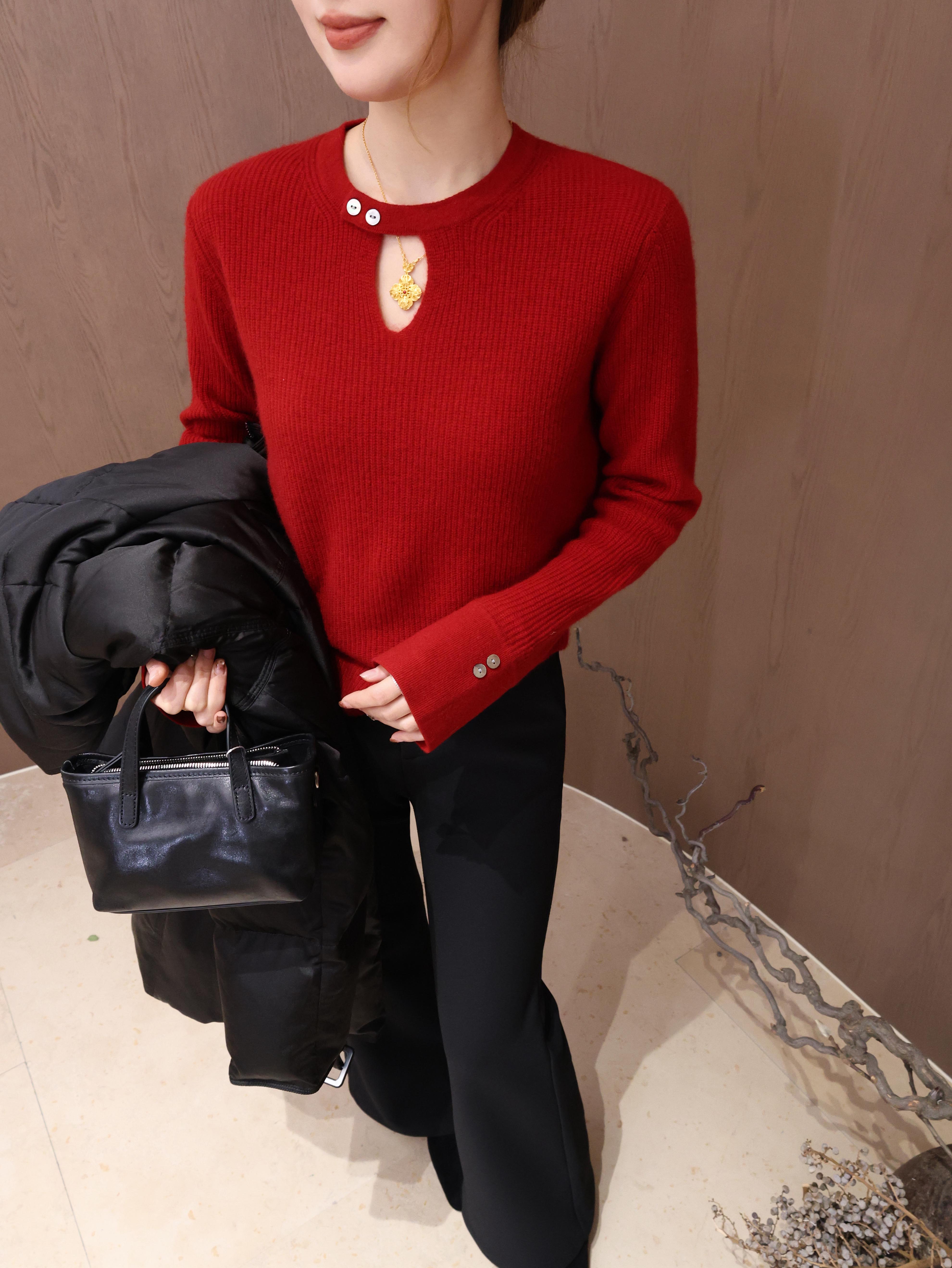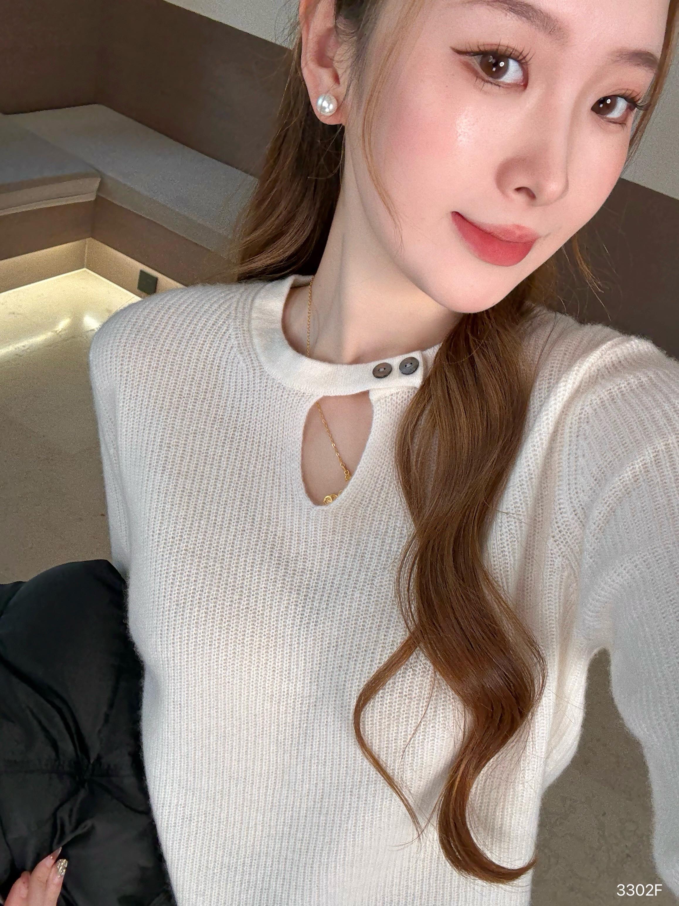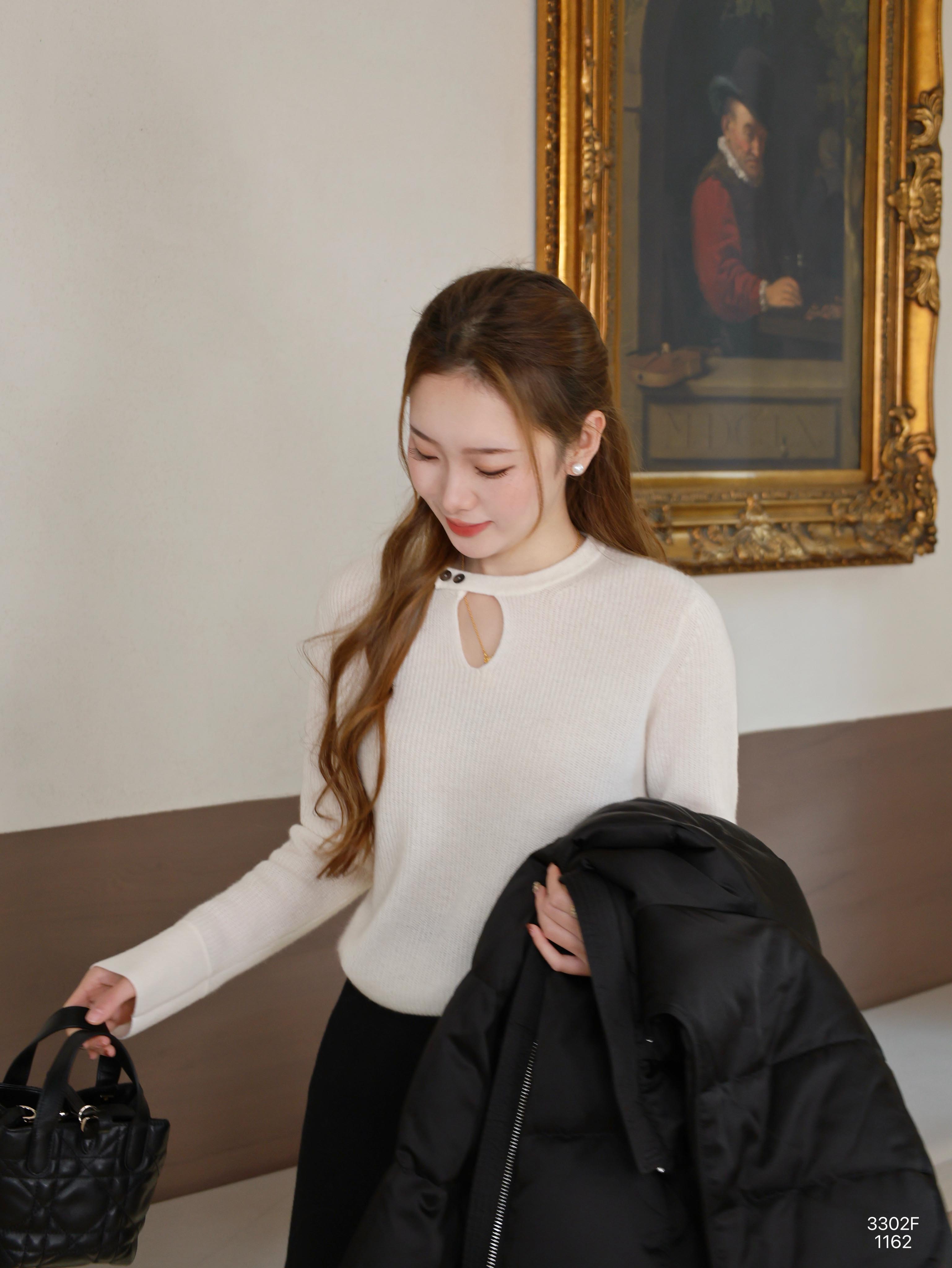 【特价不退换】【预售7天】良木礼镂空山羊绒上衣(3302F)