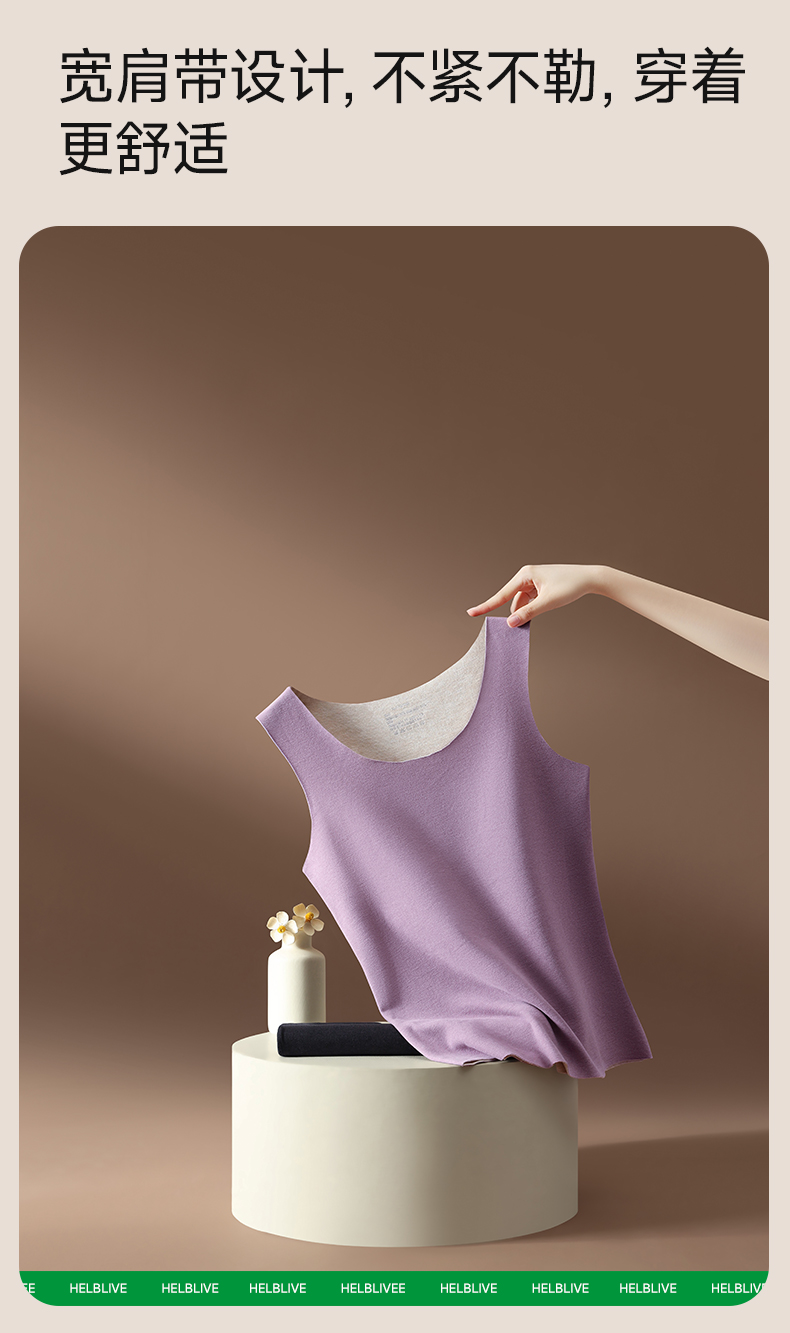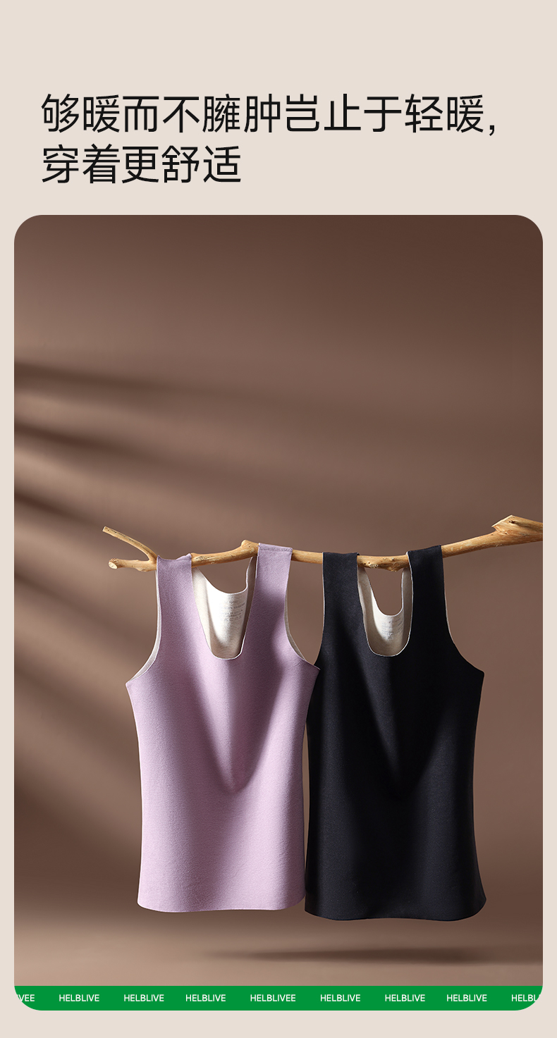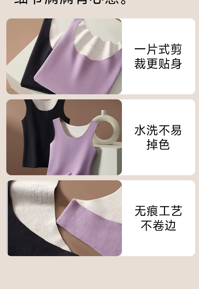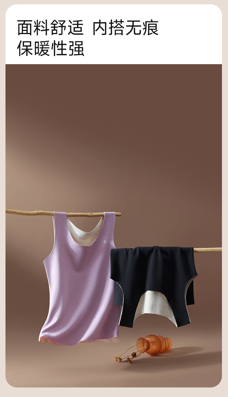 草本初色【到手2件】双面绒蚕丝女士背心 保暖无痕圆领宽吊带内搭9613