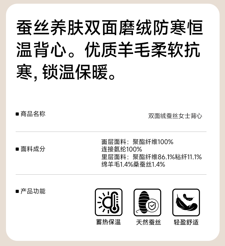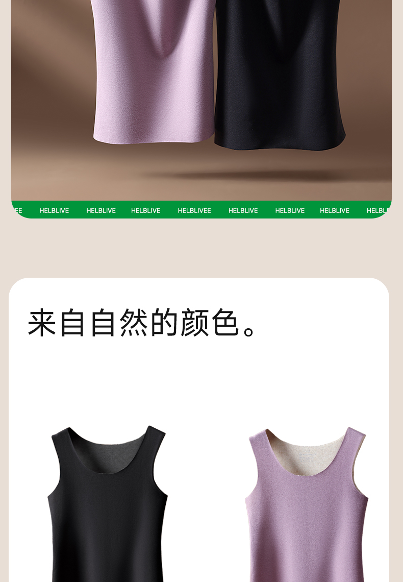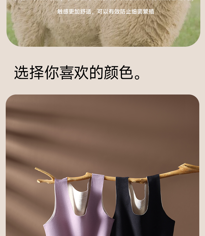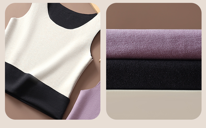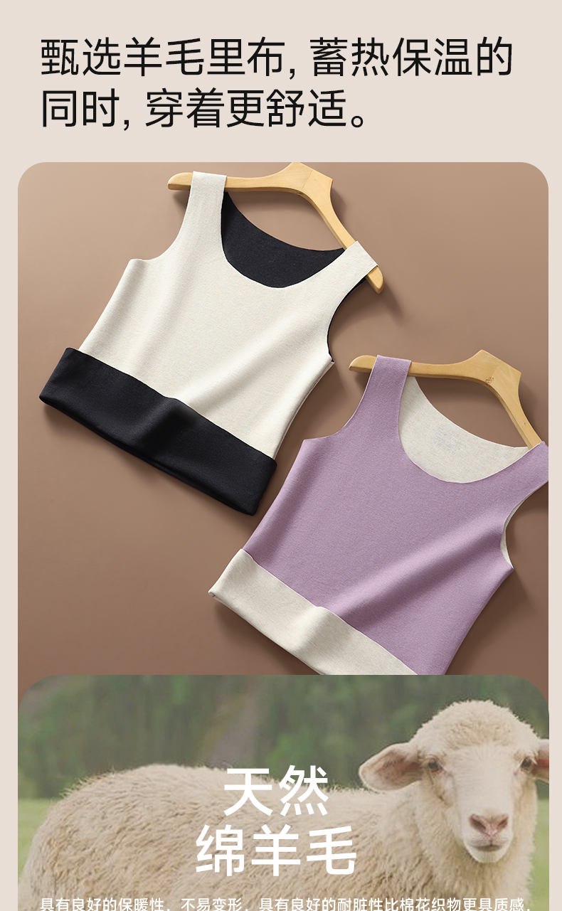 草本初色【到手2件】双面绒蚕丝女士背心 保暖无痕圆领宽吊带内搭9613