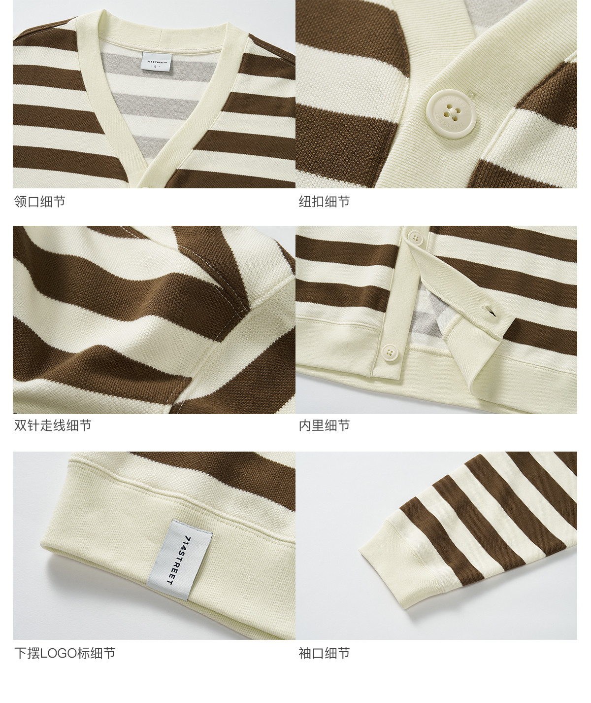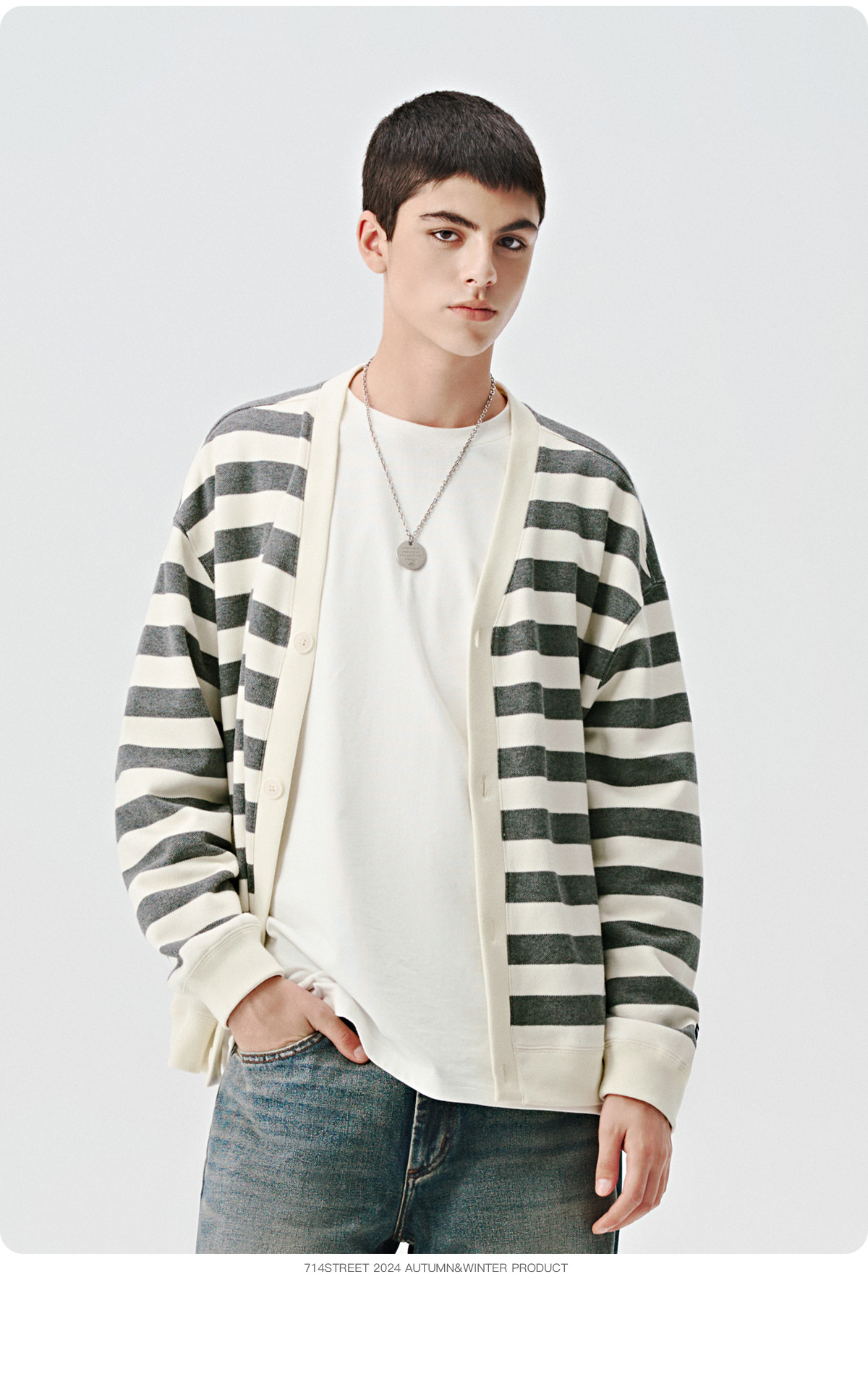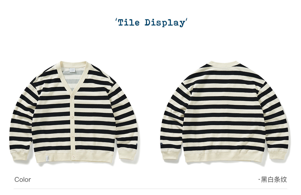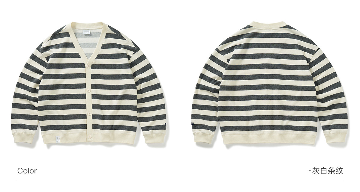 714street条纹V领针织开衫男2024秋冬季新款宽松外套休闲长袖上衣